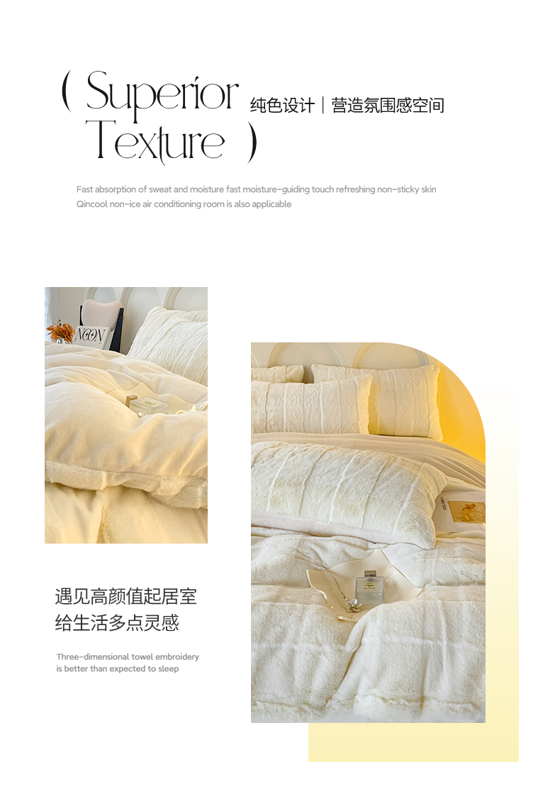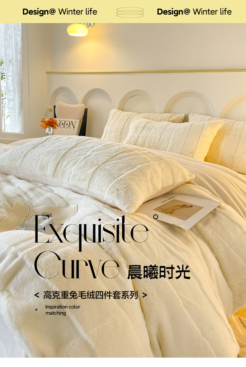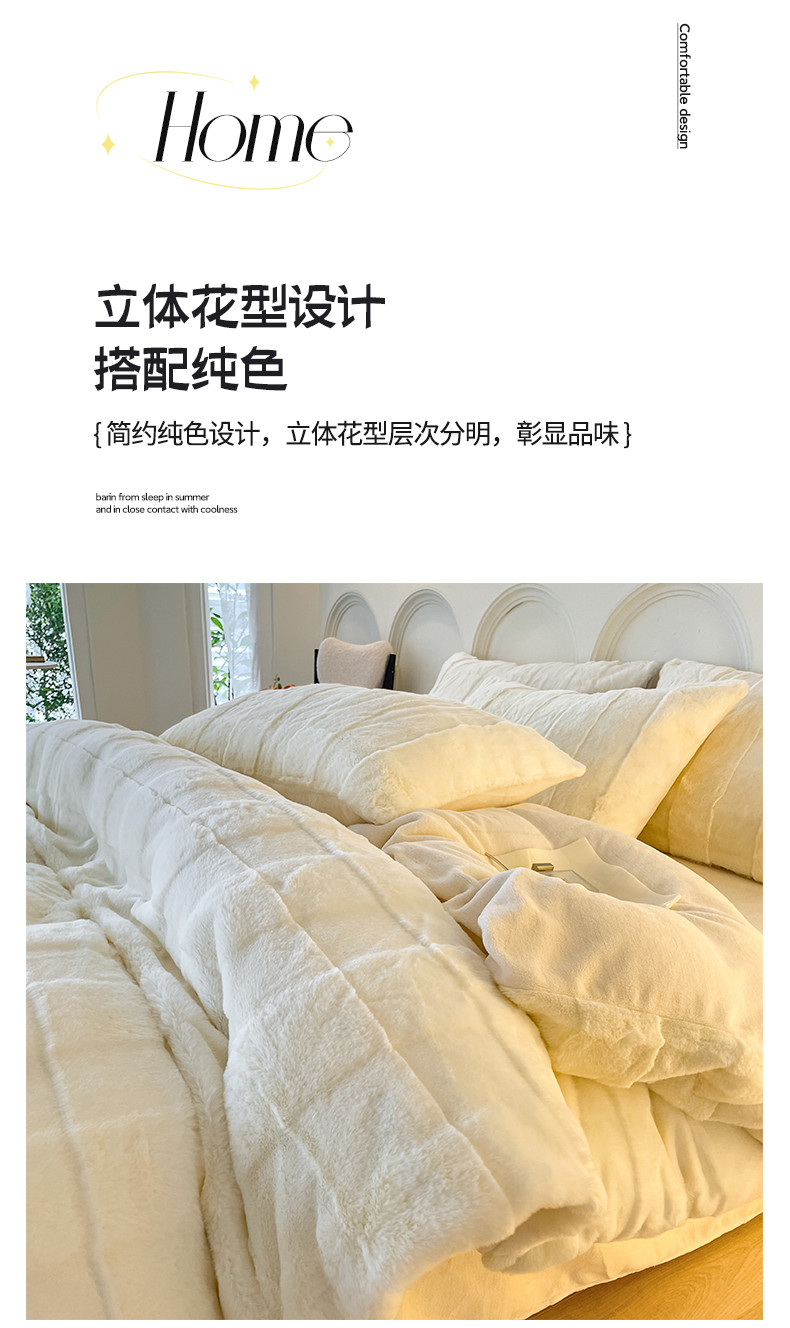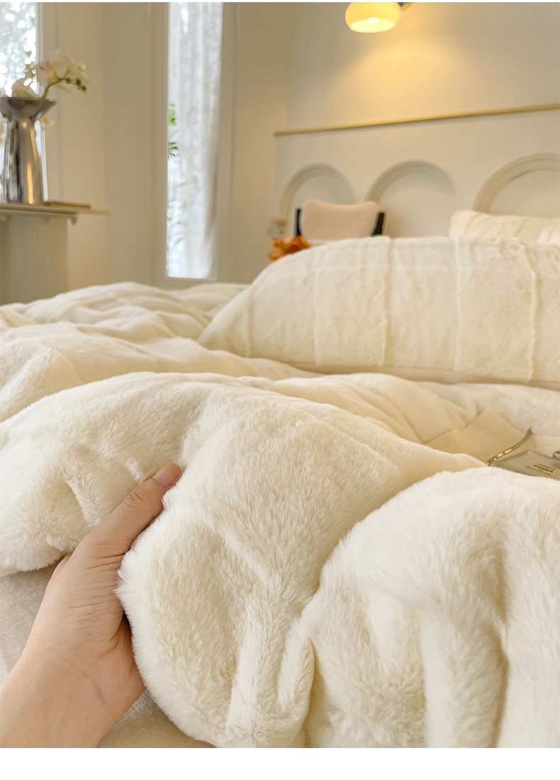 商品名称:金麦 2023新款舒适高克重兔毛绒四件套 格子奶昔白