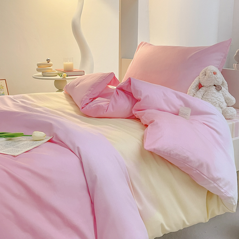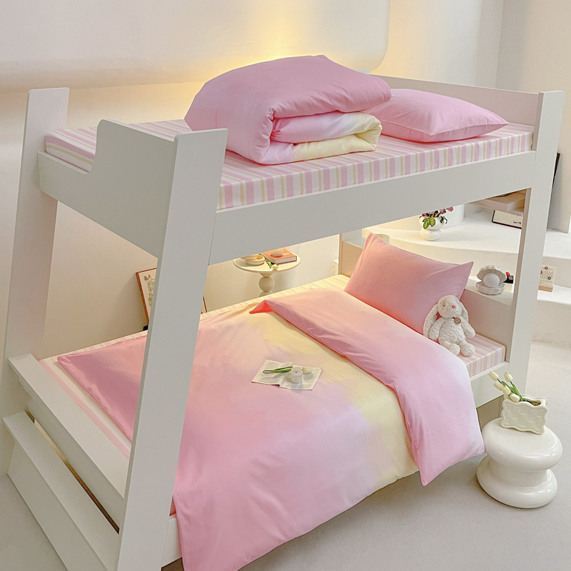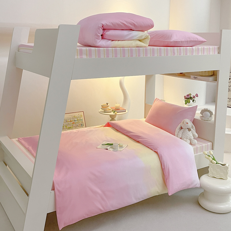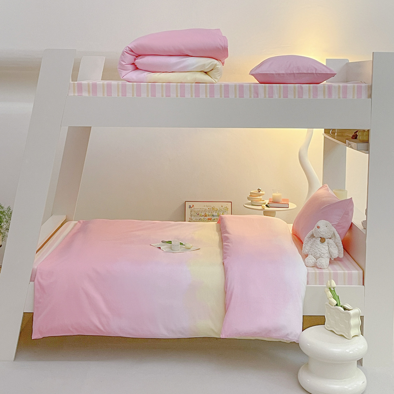 昔可家纺 2023新款少女粉渐变色上下铺全棉四件套 粉雾少女
