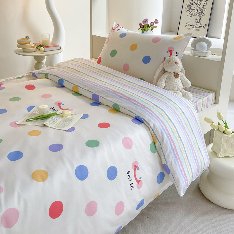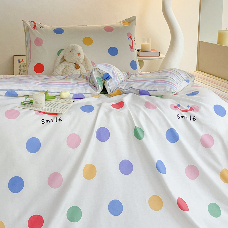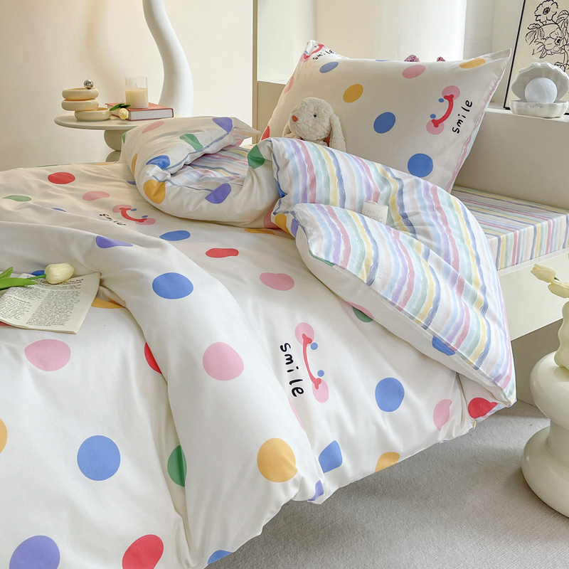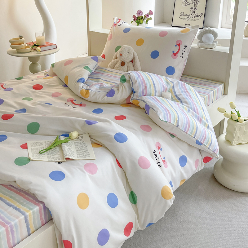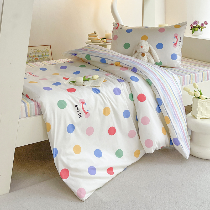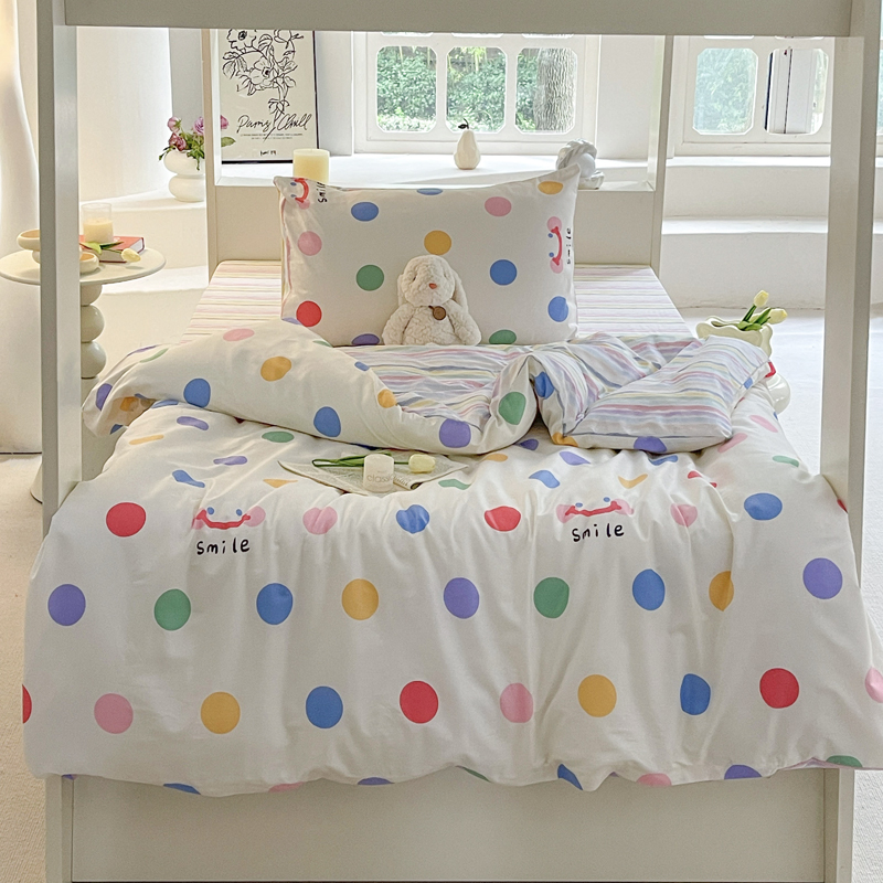 商品名称:昔可家纺 2023新款少女粉渐变色上下铺全棉四件套 微笑彩波点