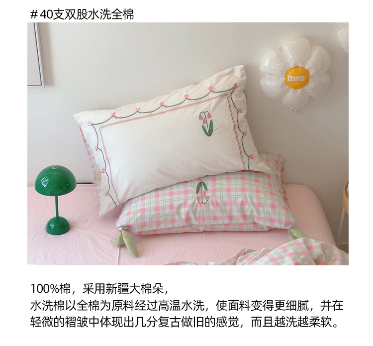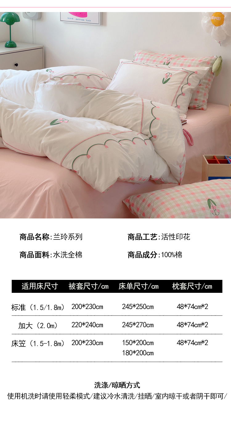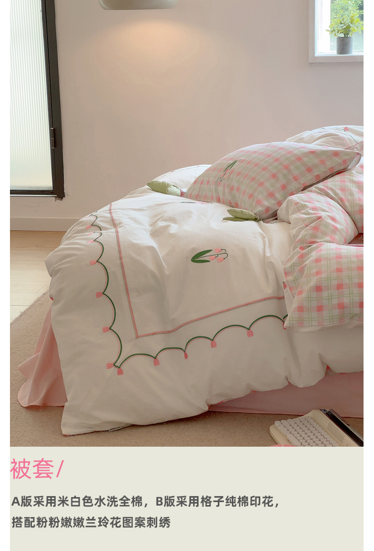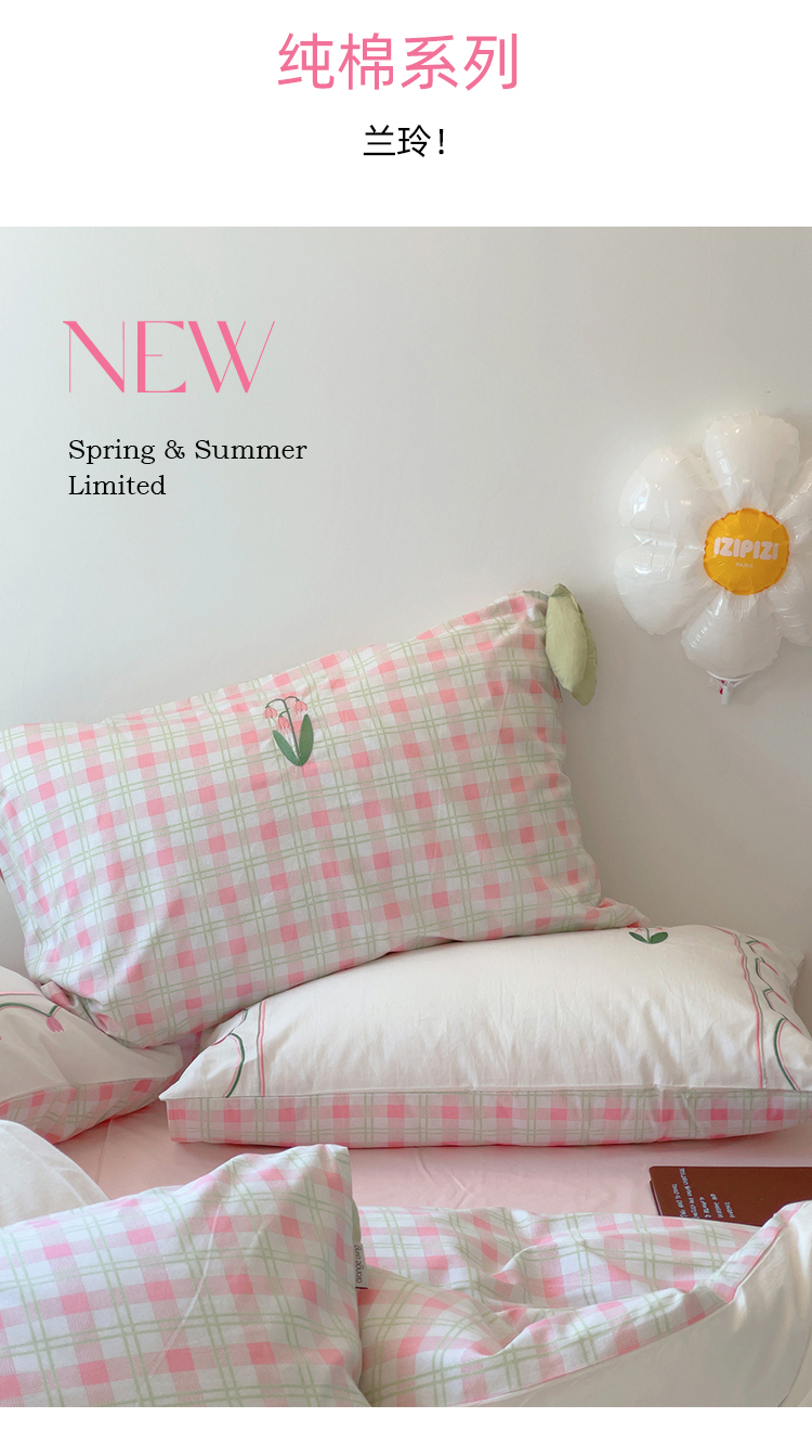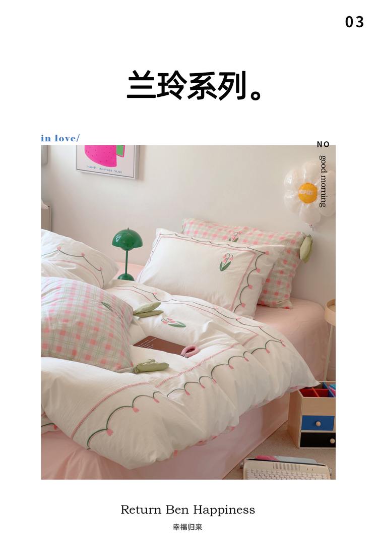 桔子家纺 2023新款40支纯棉水洗棉四件套-兰玲系列 兰玲-粉白