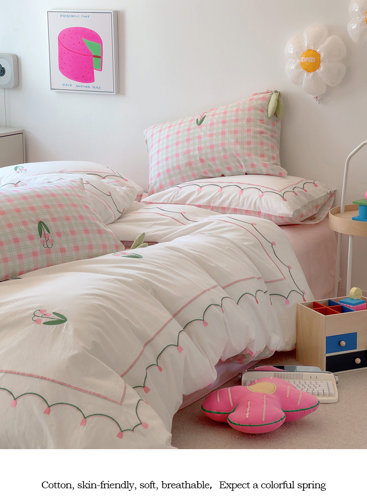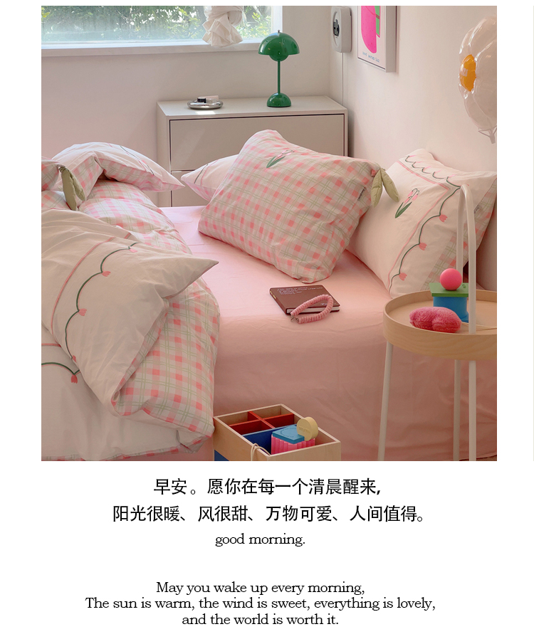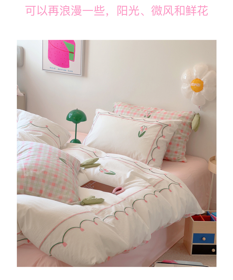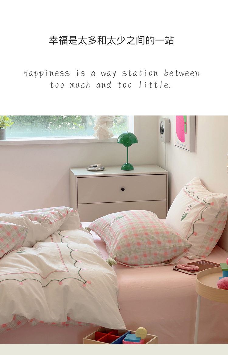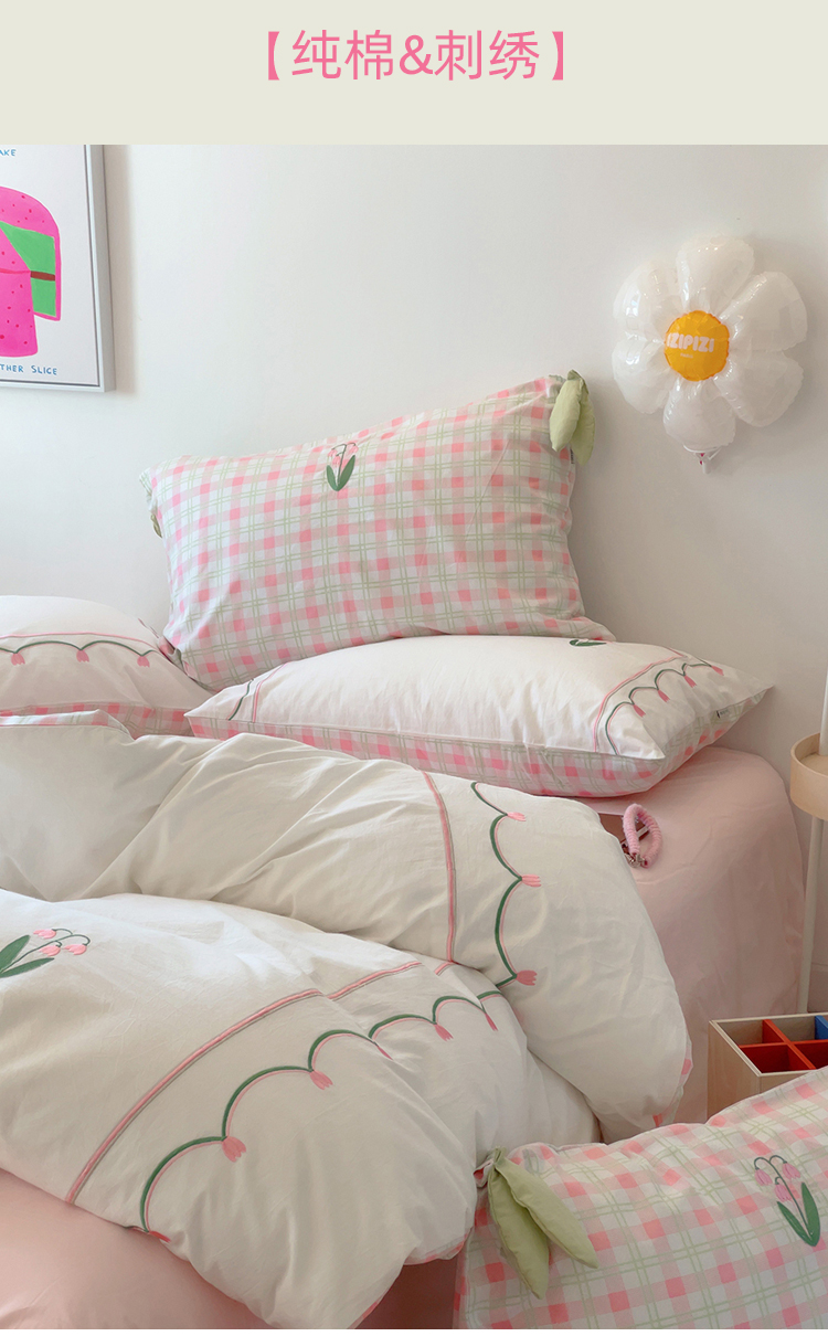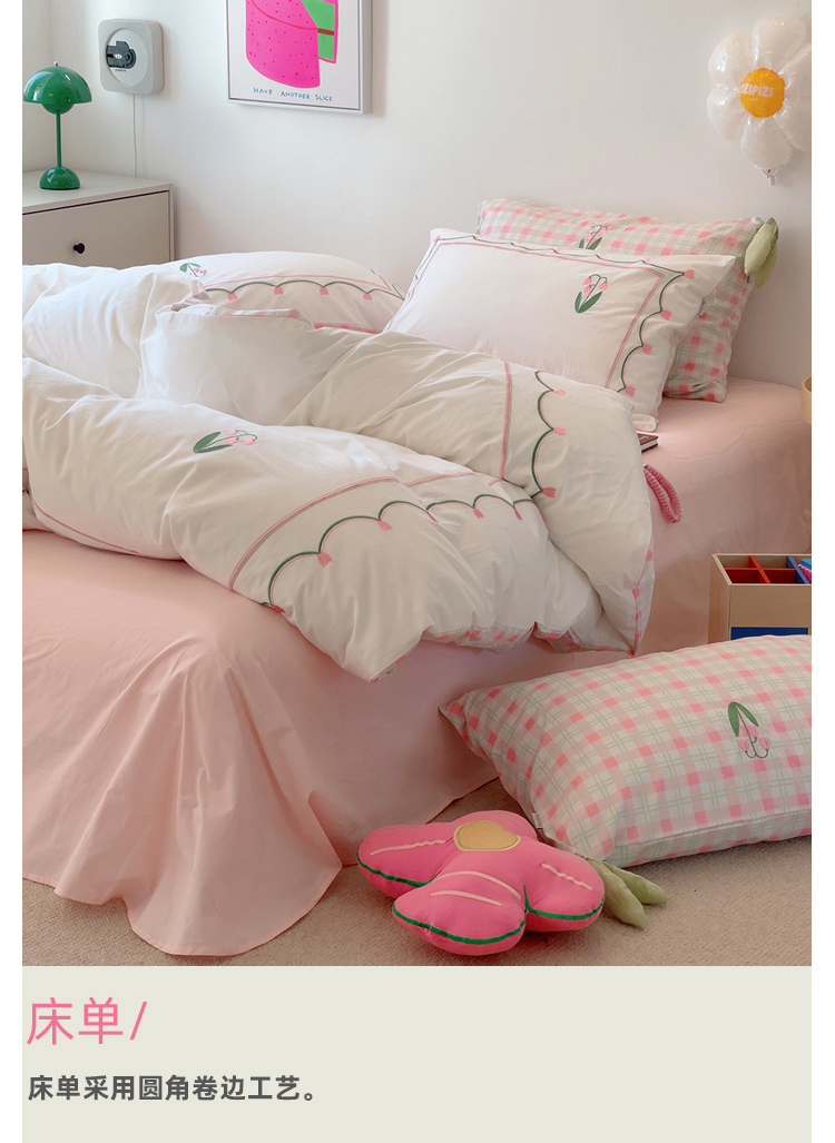 桔子家纺 2023新款40支纯棉水洗棉四件套-兰玲系列 兰玲-粉白