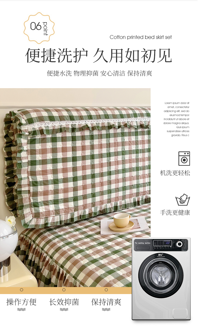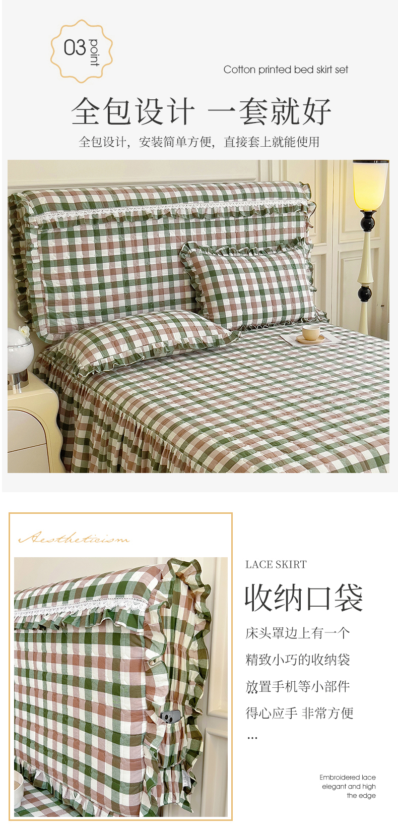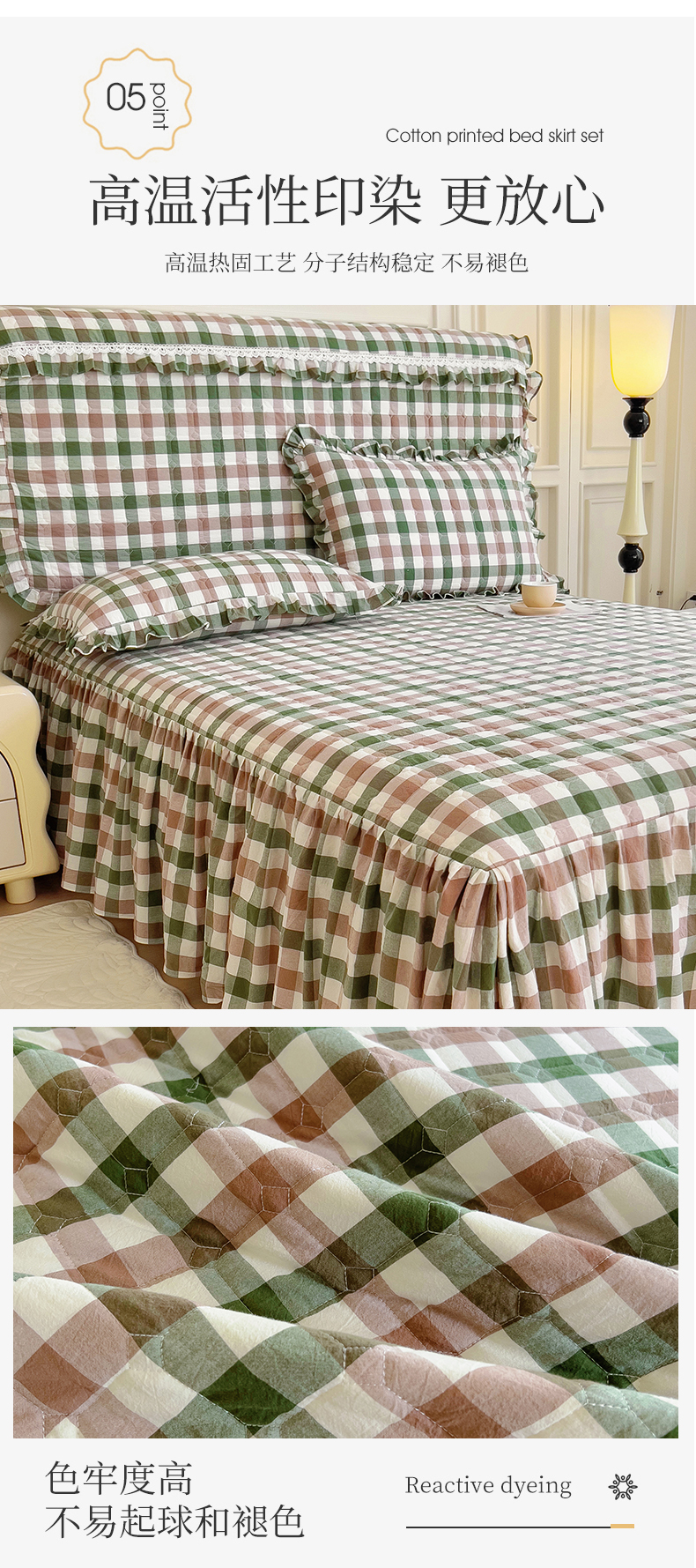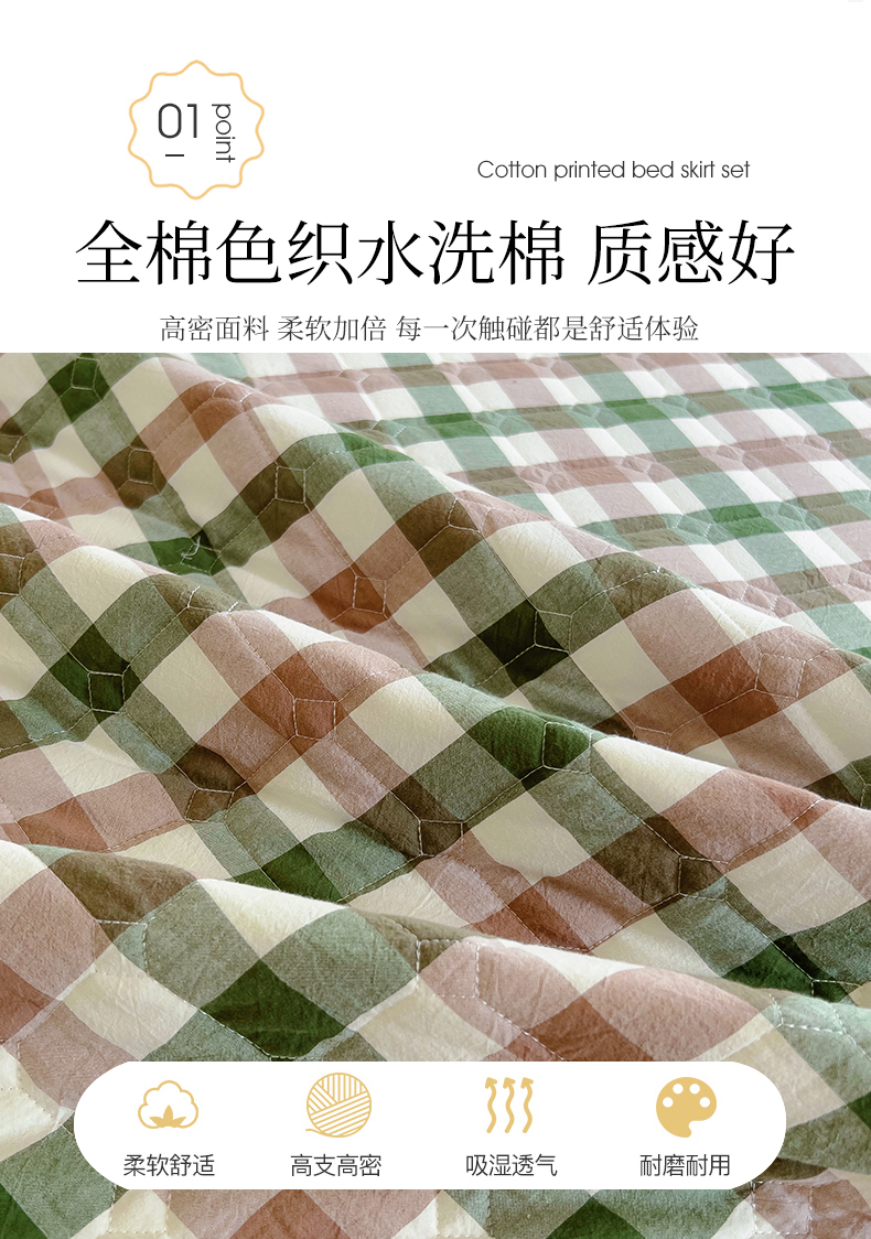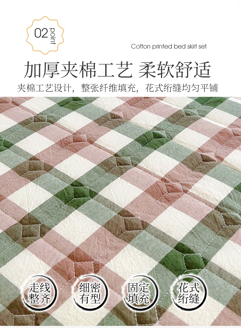 (总)十个点家纺 2025新款加厚磨毛木棉床裙三件套-格小格系列,格小格-粉,格小格-金驼,格小格-咖,格小格-兰,格小格-绿,格小格-玉