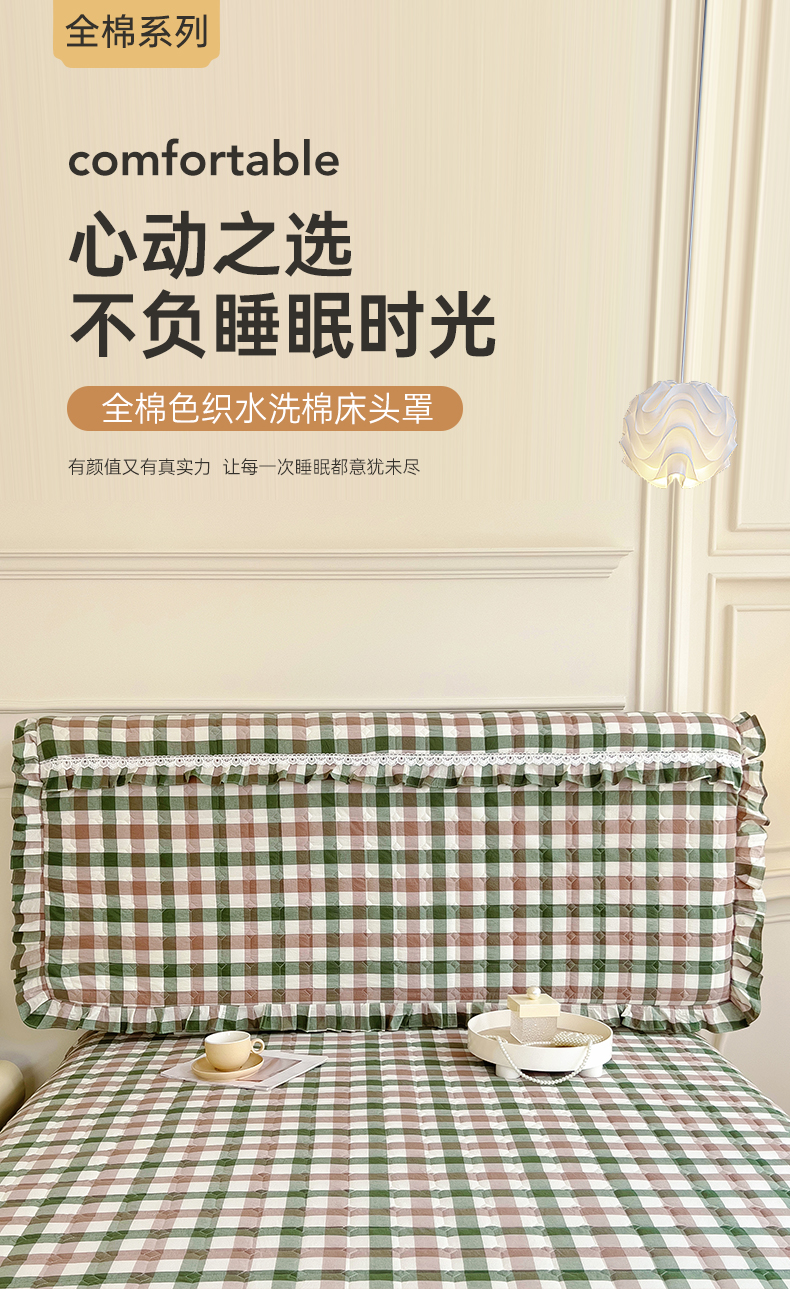 商品名称:十个点 2024新款色织水洗棉-韵格系列-床头罩 七彩格绿