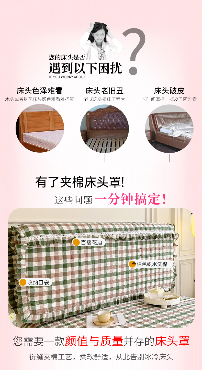 (总)十个点家纺 2025新款公主风夹棉床头罩-格小格系列,格小格-粉,格小格-金驼,格小格-咖,格小格-兰,格小格-绿,格小格-玉