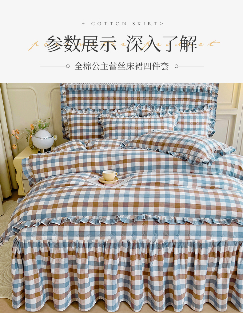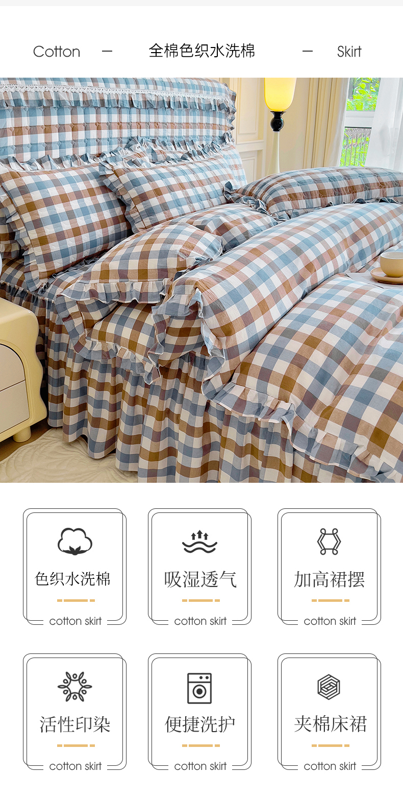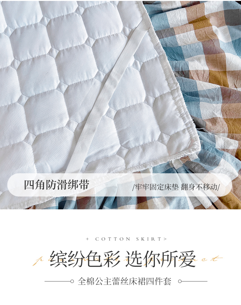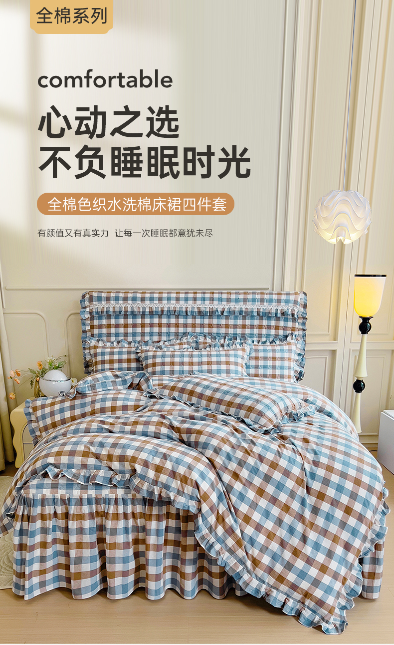 当前位置: 91家纺网 > 商品网购 > 床品套件 > 四件套 > 水洗棉四件套 > 十个点 2024新款色织水洗棉韵格系列床裙款四件套 七彩格兰