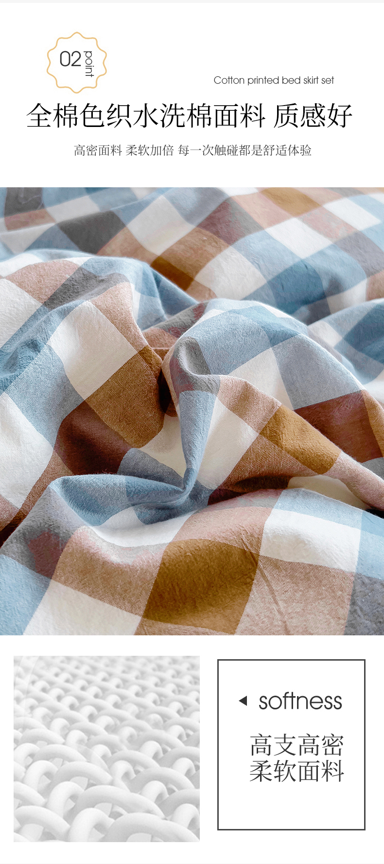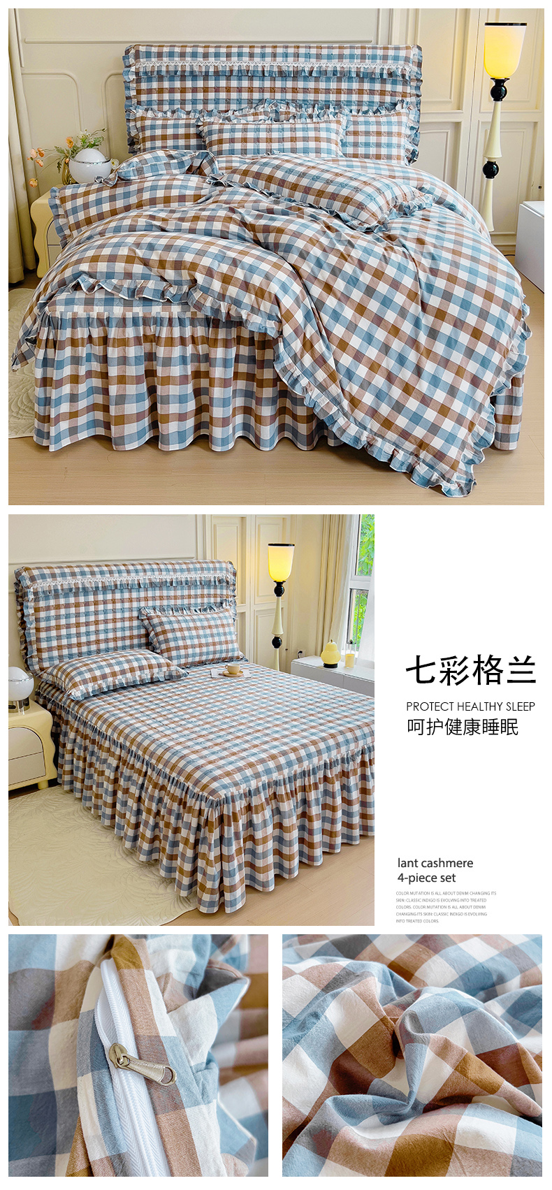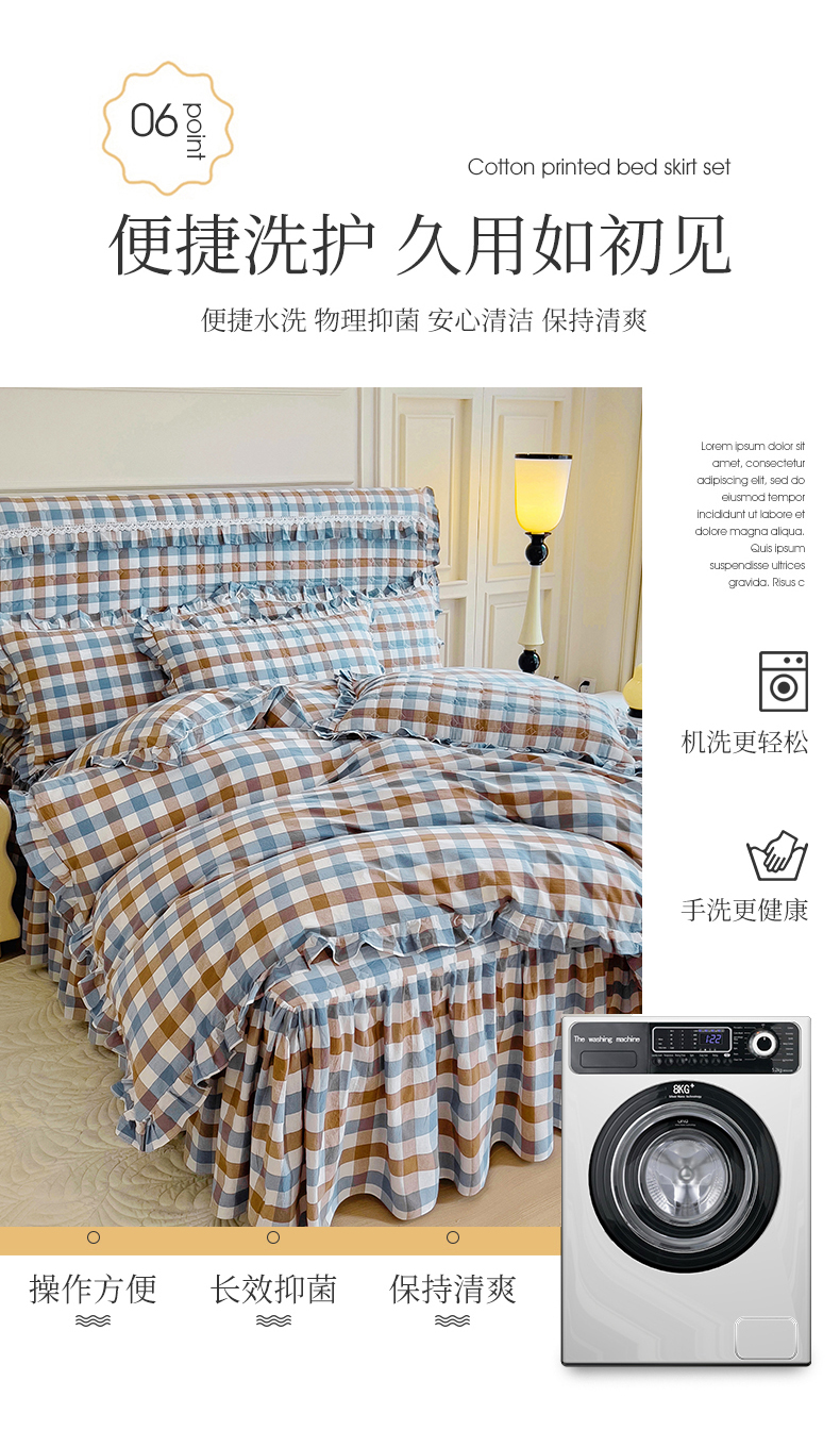 当前位置: 91家纺网 > 商品网购 > 床品套件 > 四件套 > 水洗棉四件套 > 十个点 2024新款色织水洗棉韵格系列床裙款四件套 七彩格兰