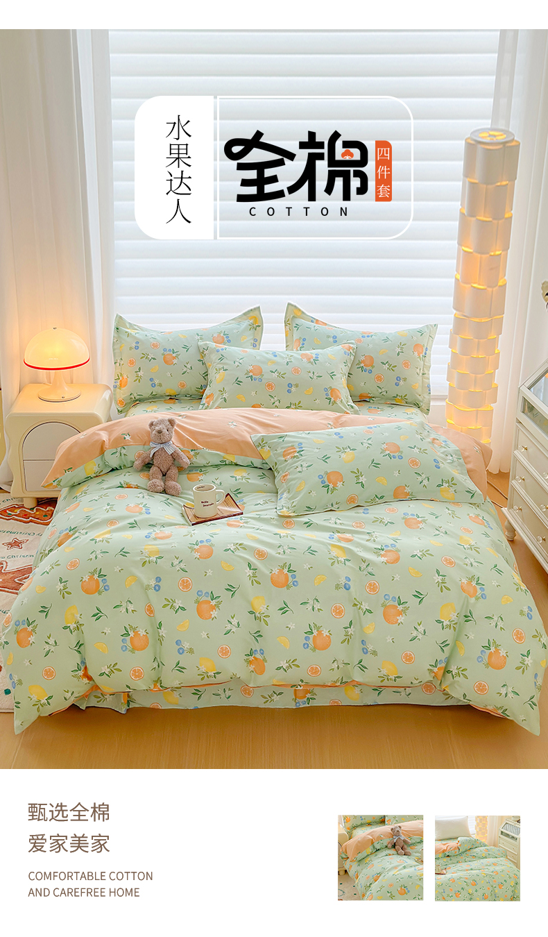 当前位置: 91家纺网 > 商品网购 > 床品套件 > 四件套 > 全棉普通四件套 > 元元被芯 2023新增13372全棉四件套 水果达人