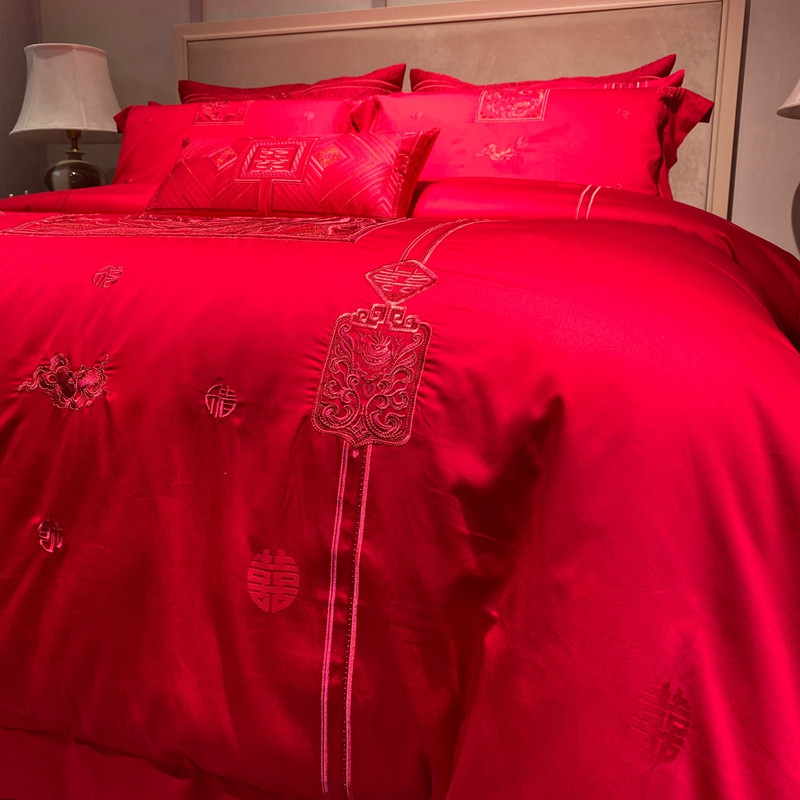 当前位置: 91家纺网 > 商品网购 > 床品套件 > 四件套 > 婚庆四件套 > 爱情故事 2025新款100支婚庆四件套实拍 福禄寿喜红