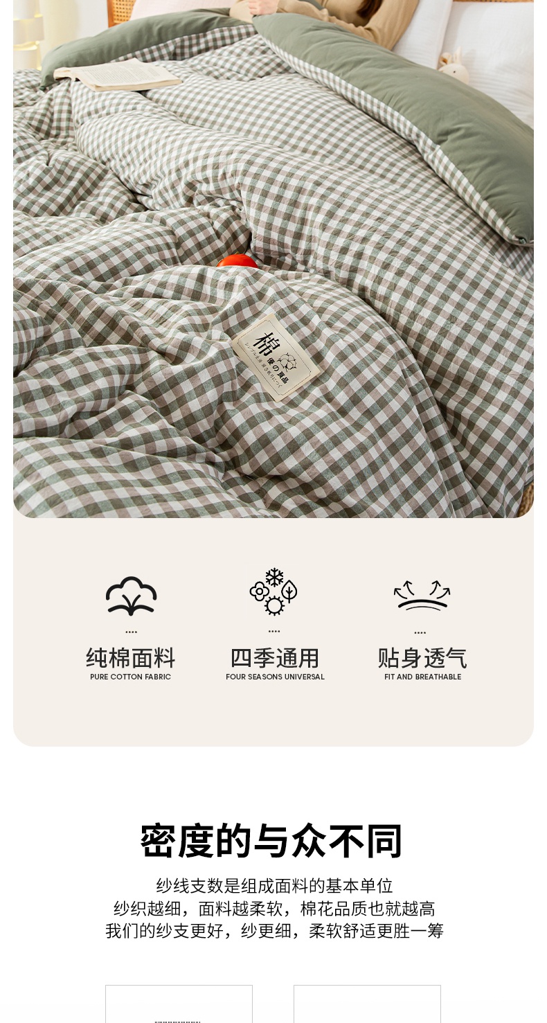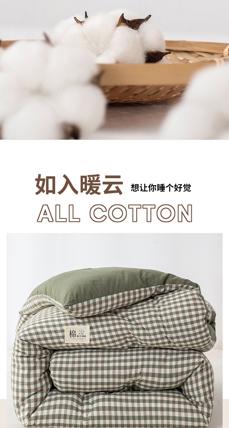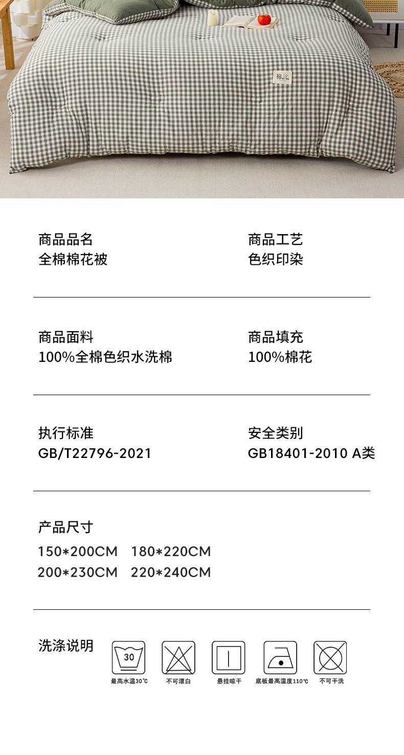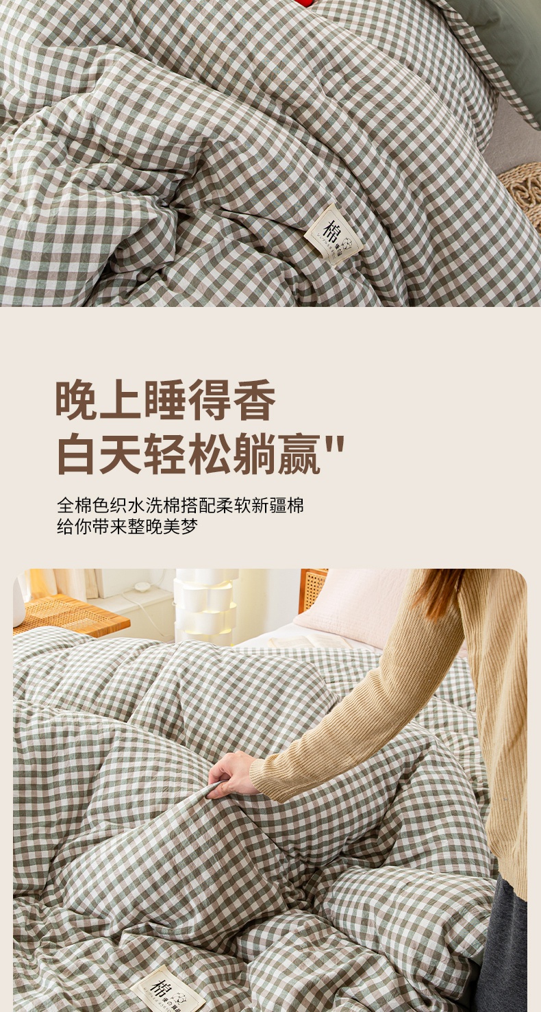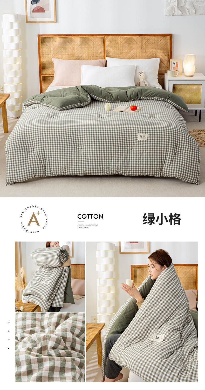 • 91家纺网 家纺一手货源 找家纺 鸣升家纺 新款无印风全棉色织水洗棉100%棉花被冬被被子被芯 绿小格