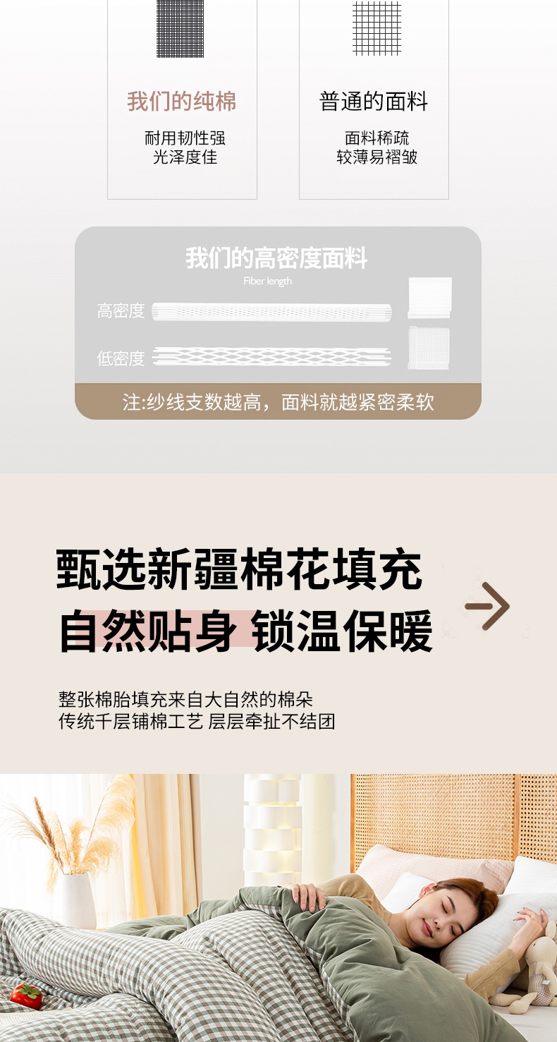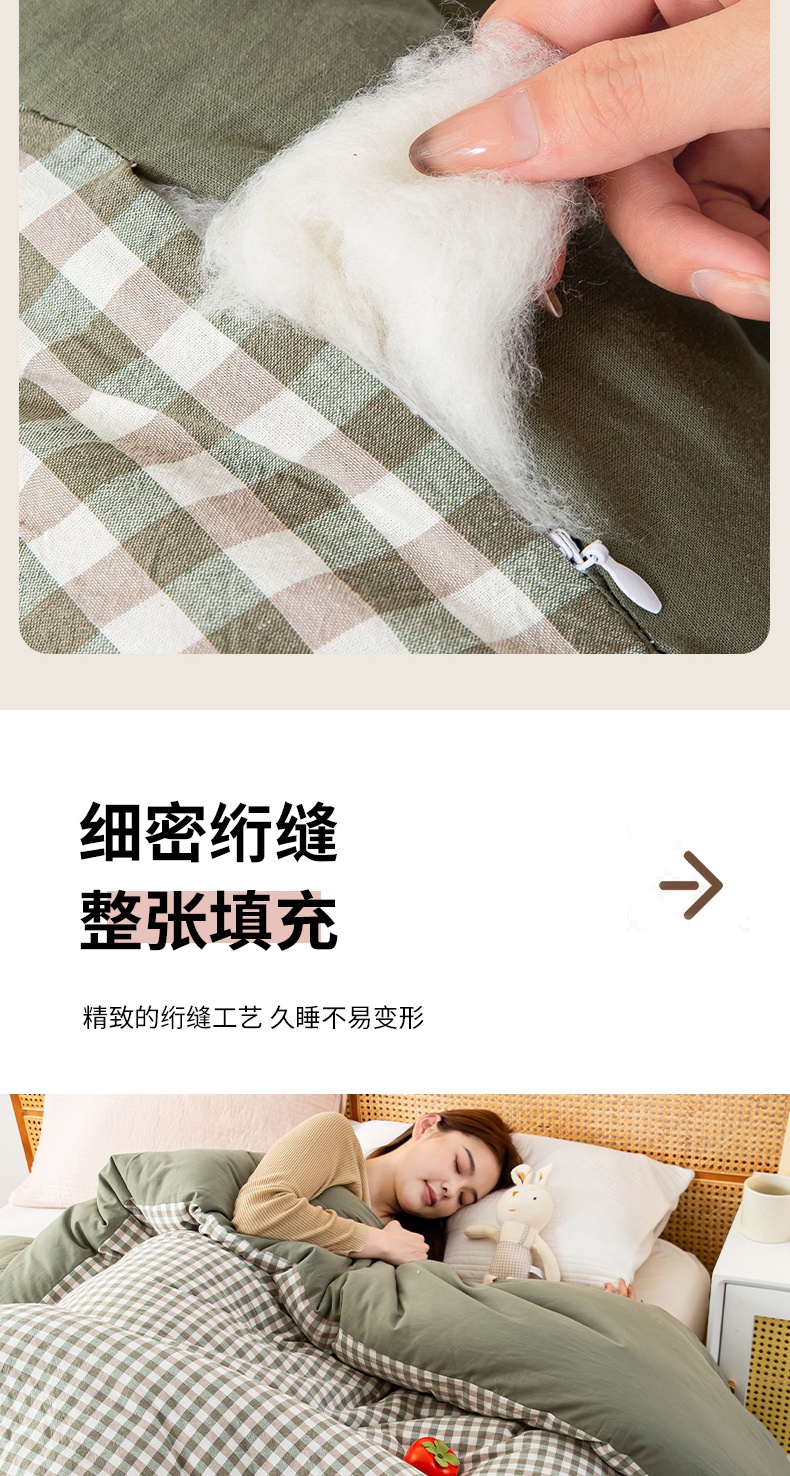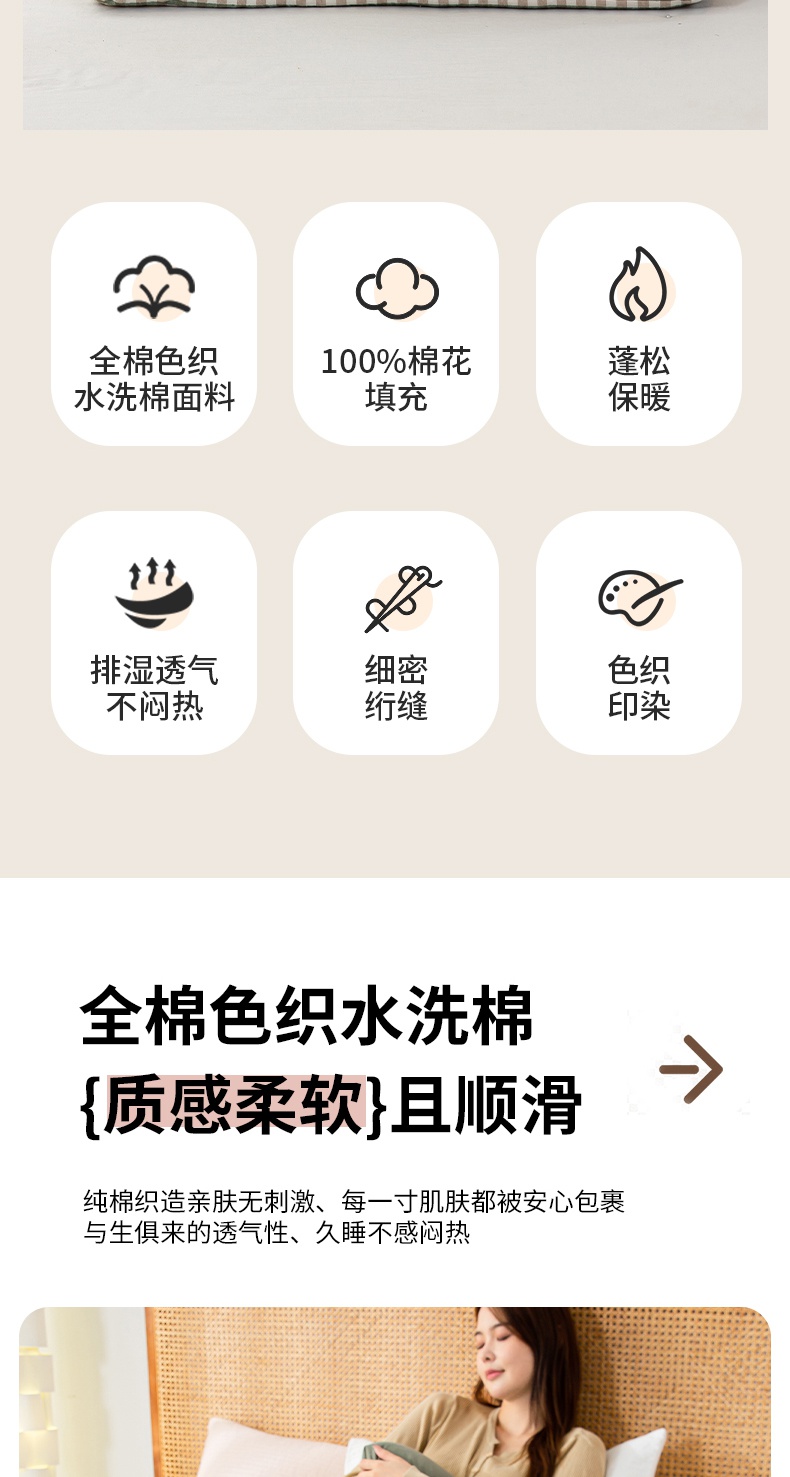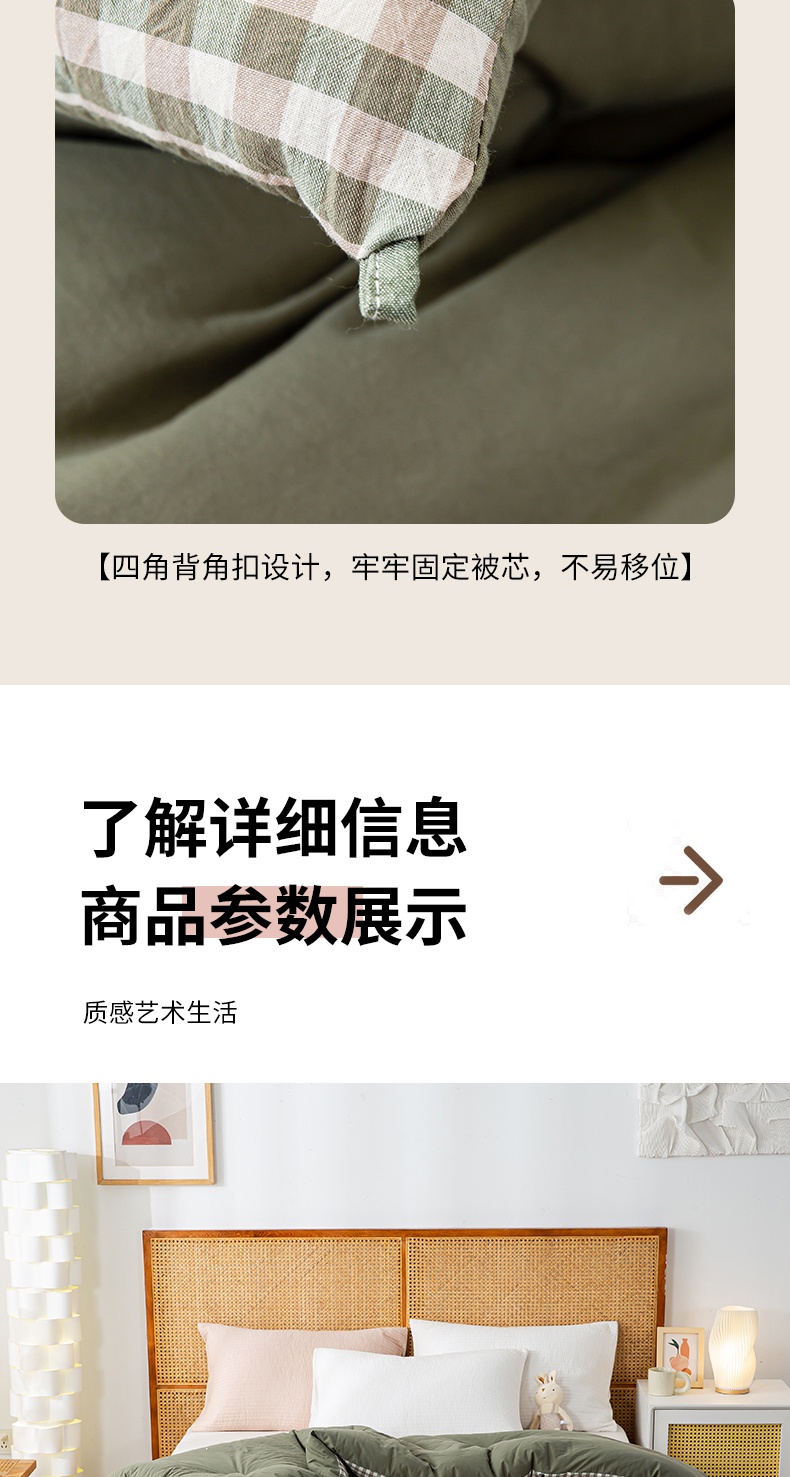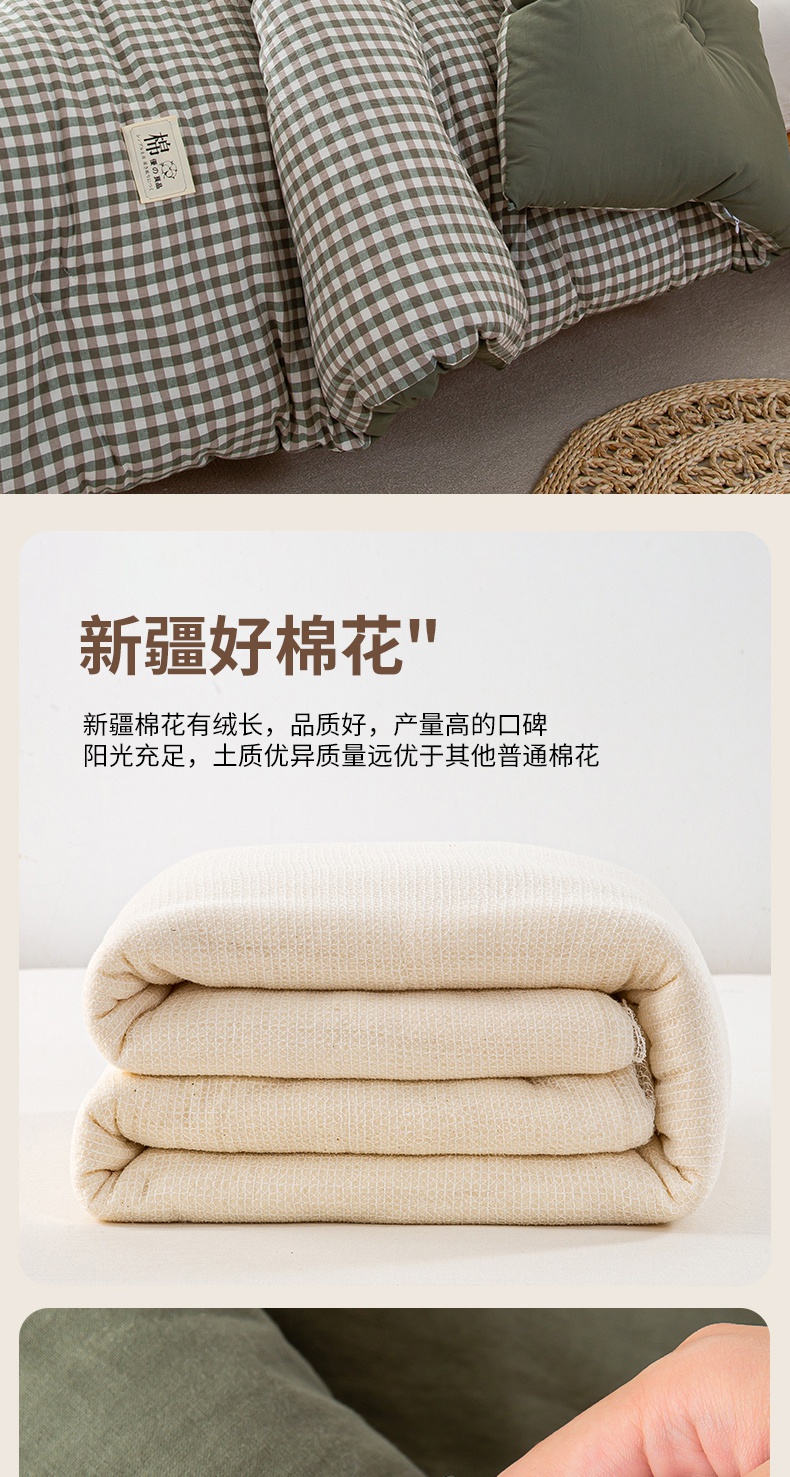 • 91家纺网 家纺一手货源 找家纺 鸣升家纺 新款无印风全棉色织水洗棉100%棉花被冬被被子被芯 绿小格