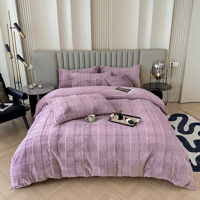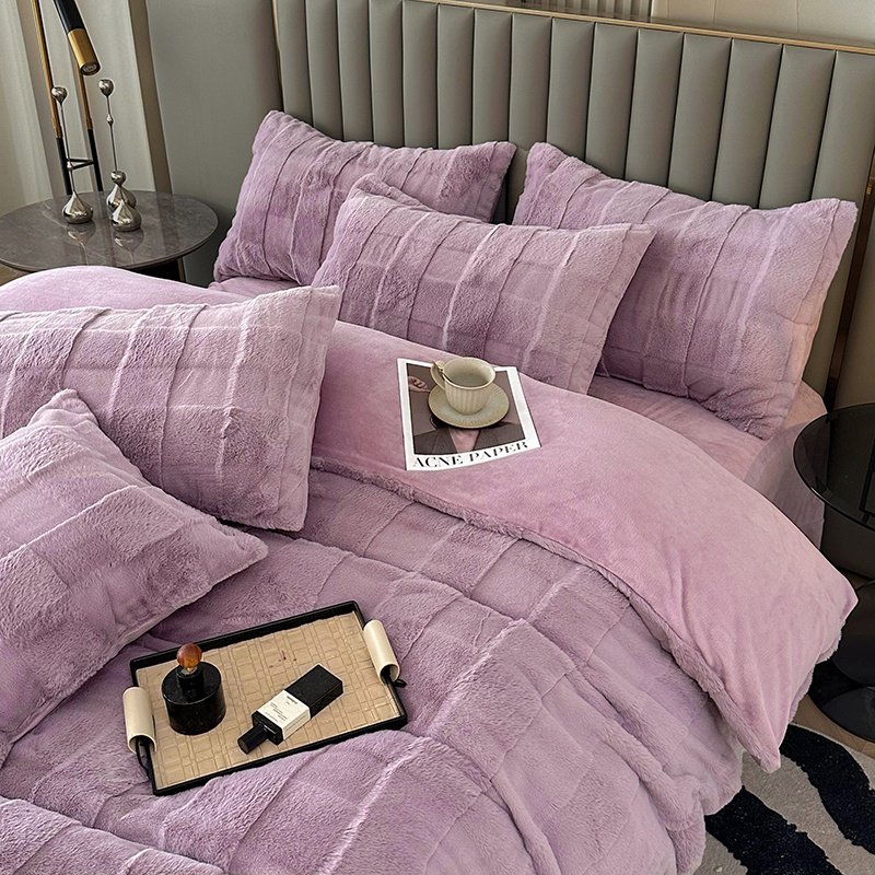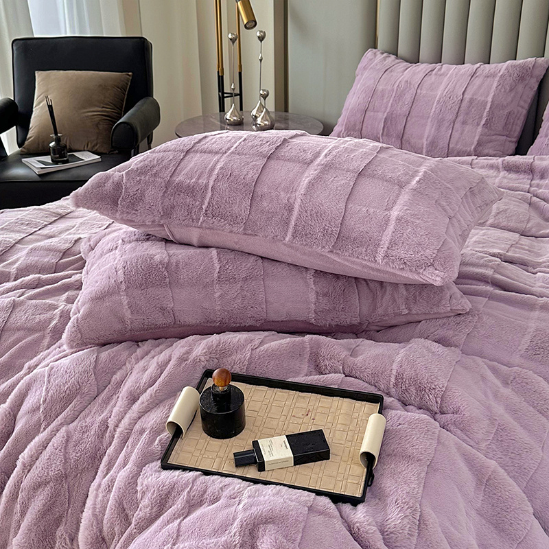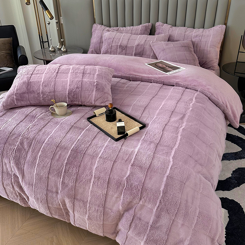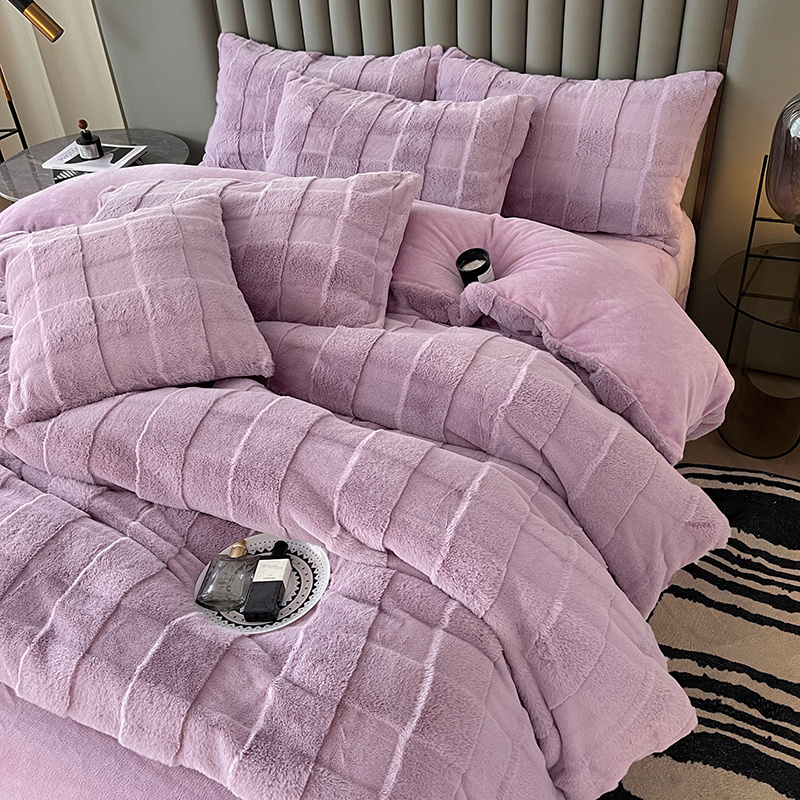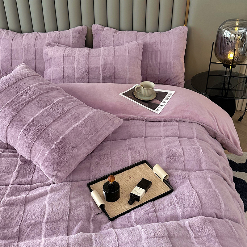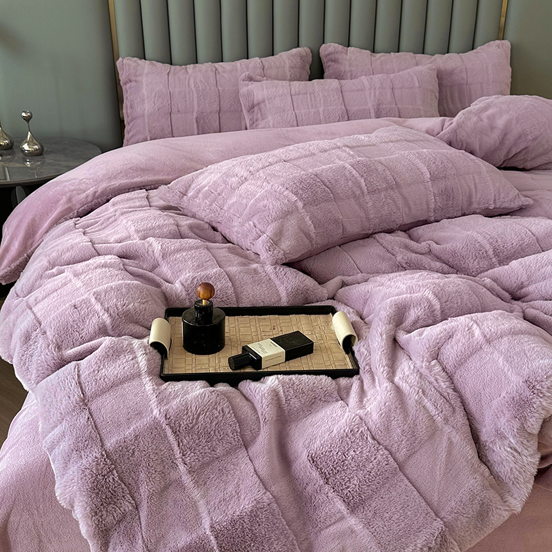 当前位置: 91家纺网 > 商品网购 > 床品套件 > 四件套 > 牛奶绒四件套 > 铠畅家纺 2023爆款9斤獭兔毛绒兔兔绒剪花牛奶绒四件套-大格子系列 大格子豆沙紫