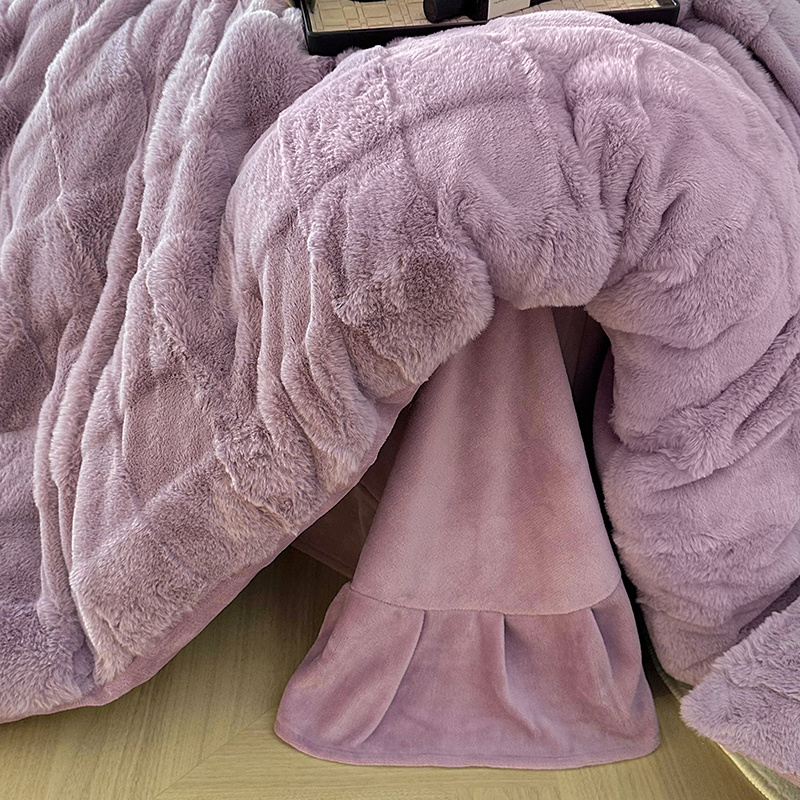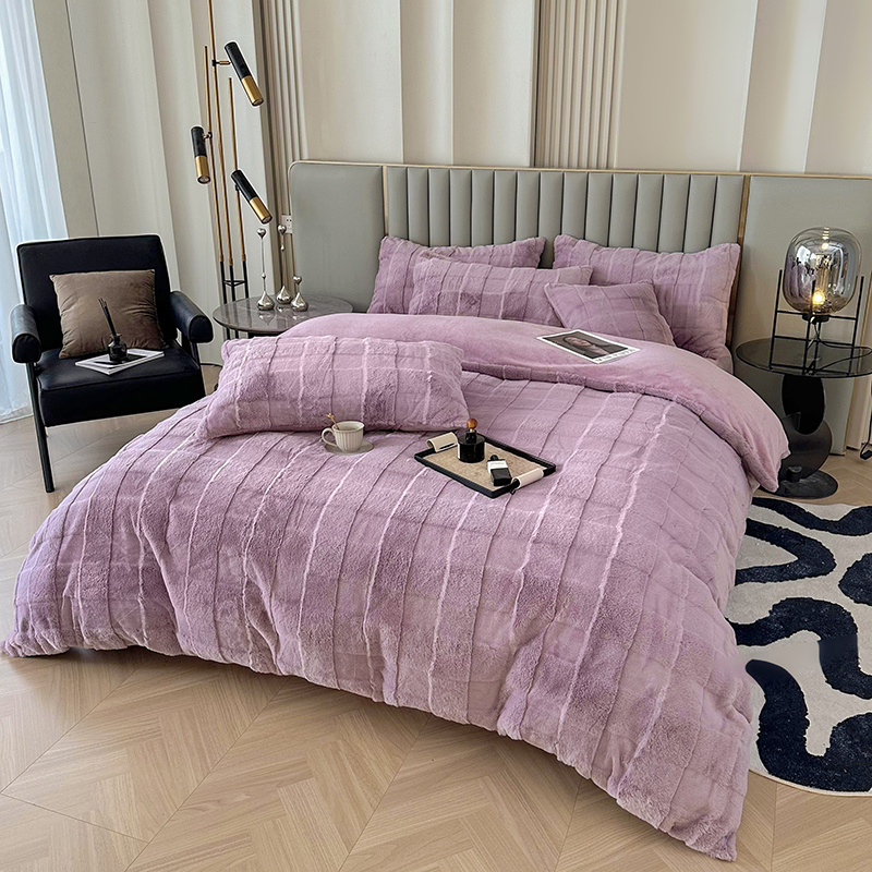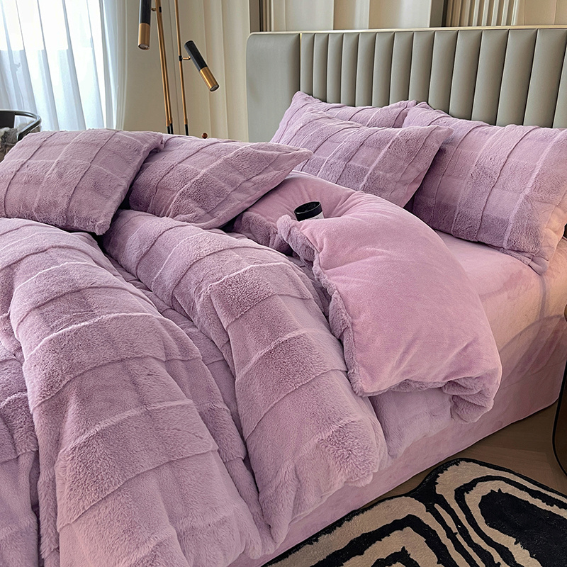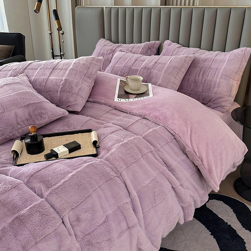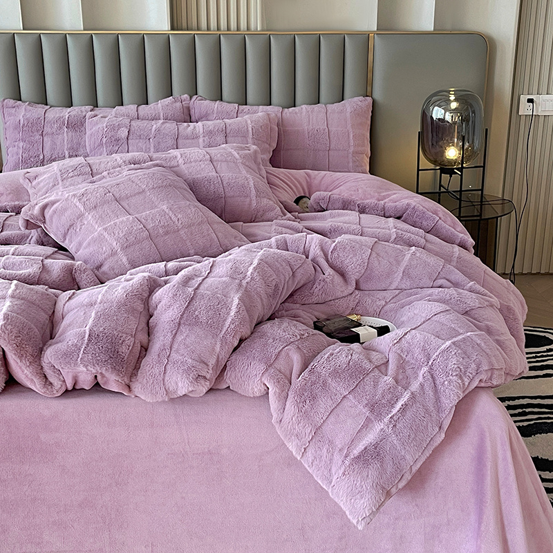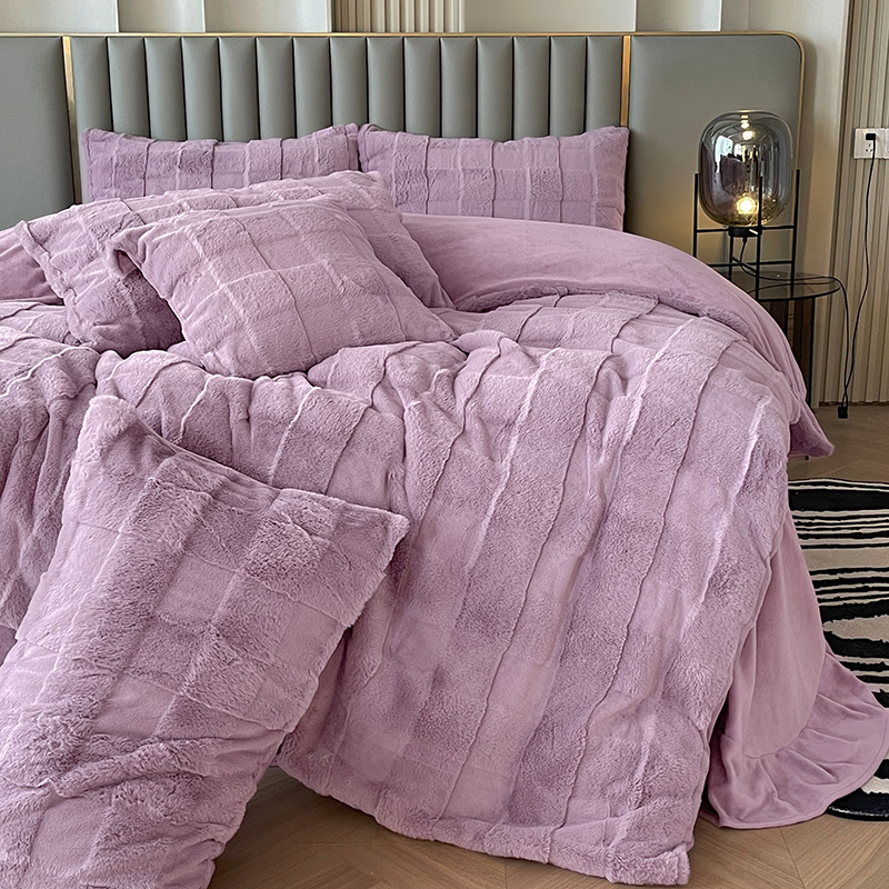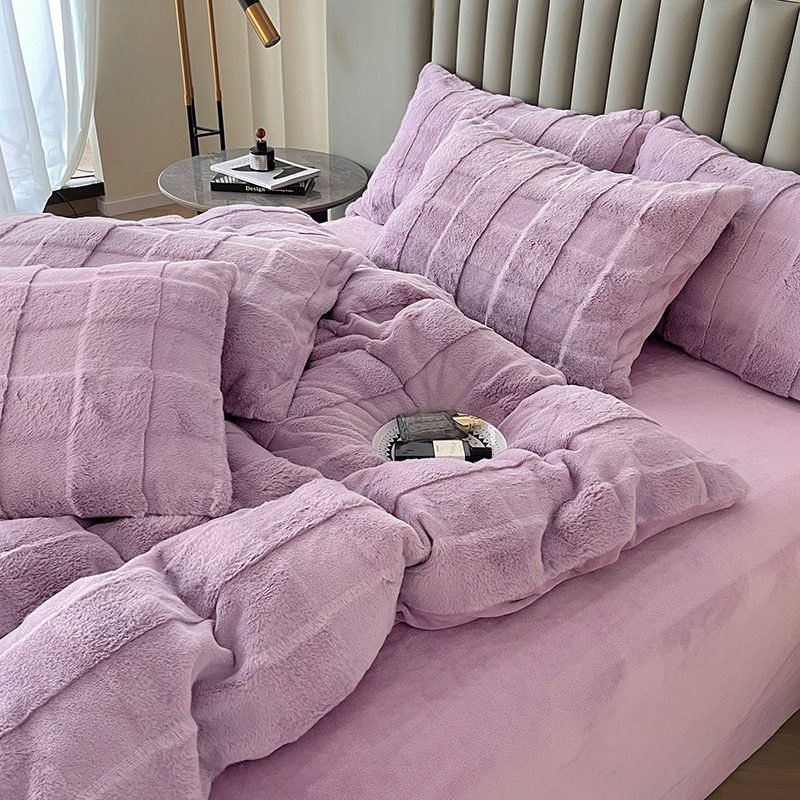 当前位置: 91家纺网 > 商品网购 > 床品套件 > 四件套 > 牛奶绒四件套 > 铠畅家纺 2023爆款9斤獭兔毛绒兔兔绒剪花牛奶绒四件套-大格子系列 大格子豆沙紫