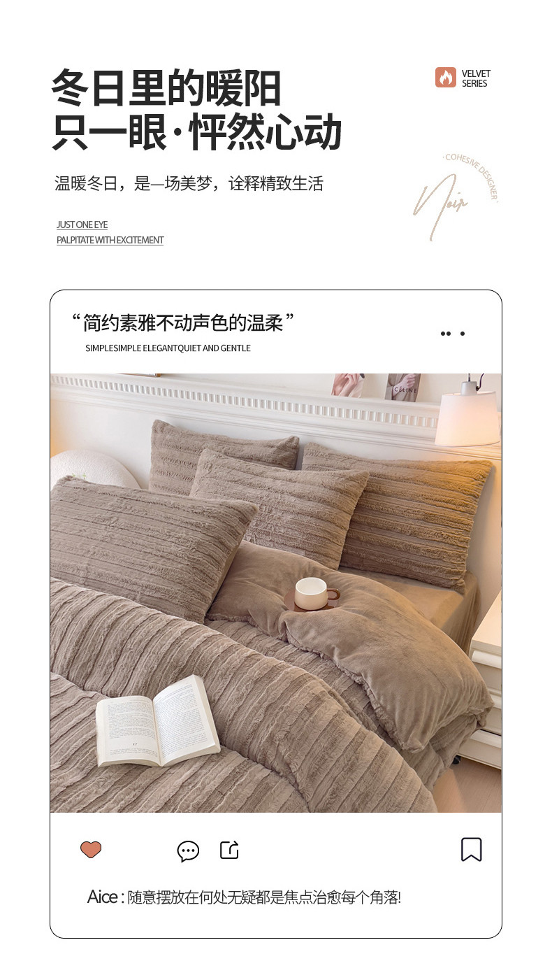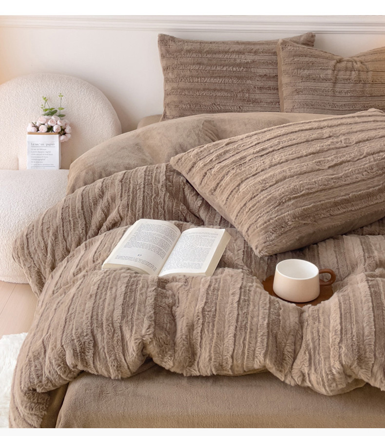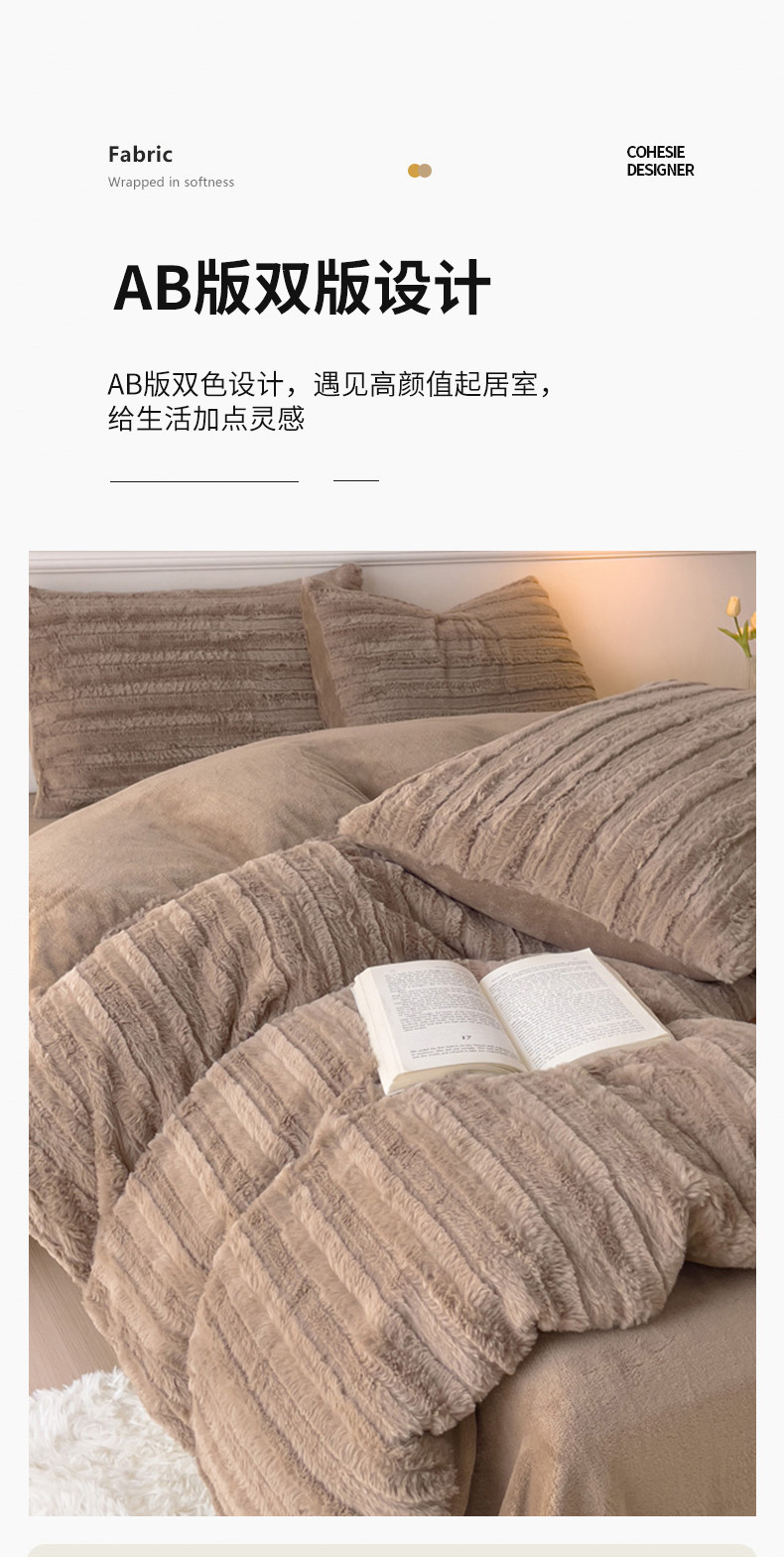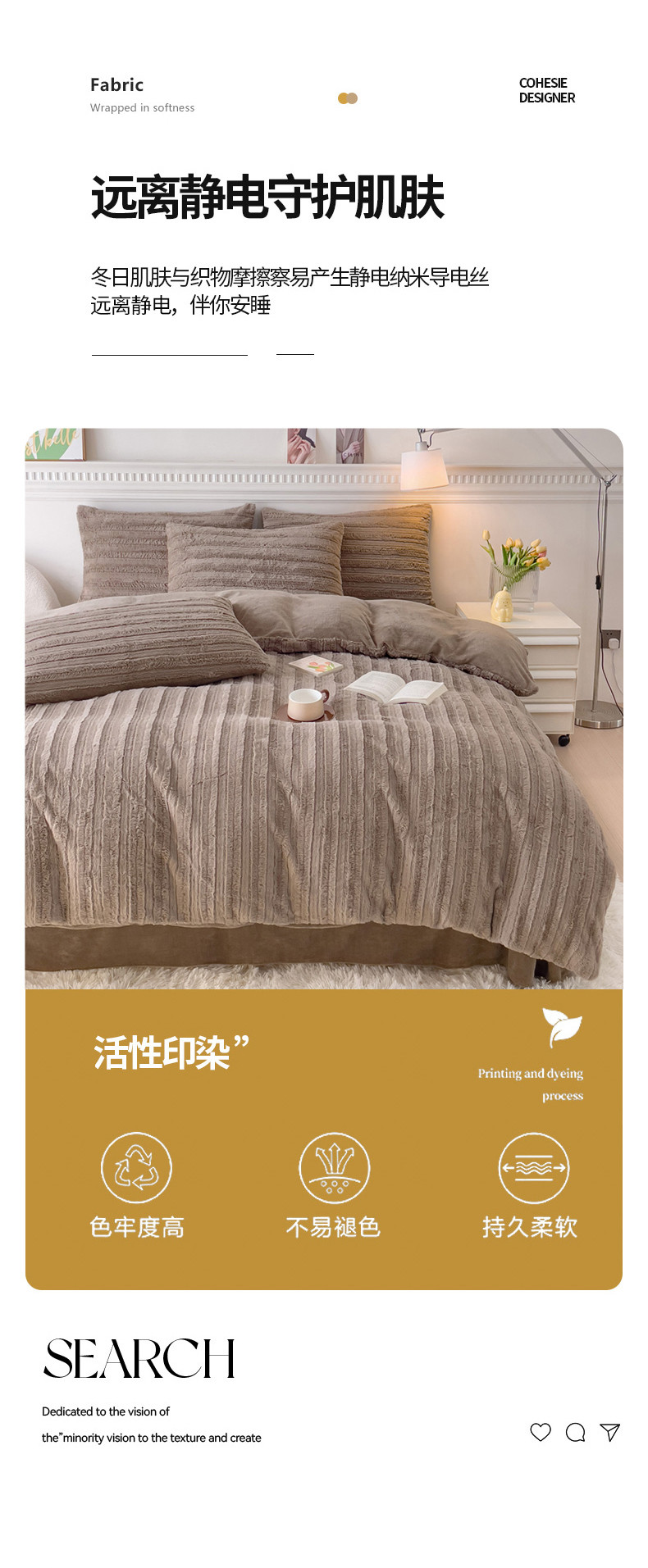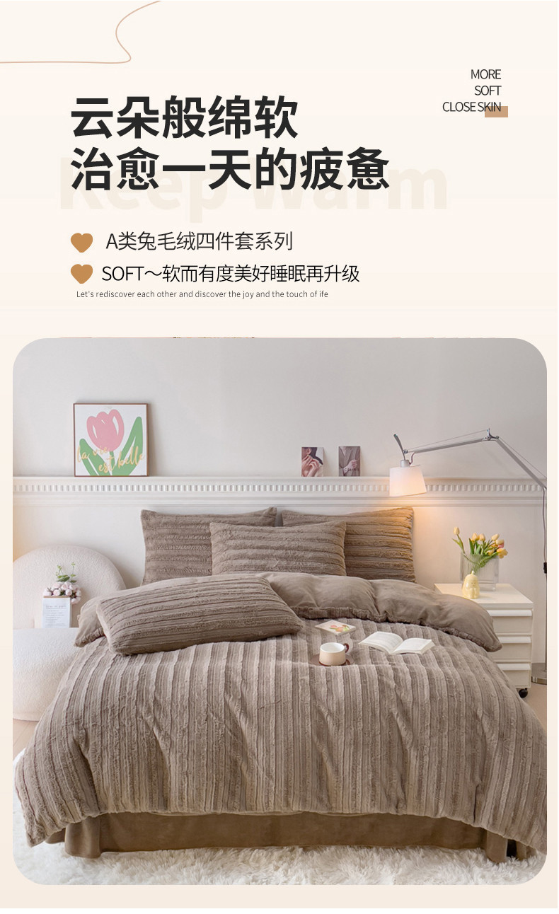 (总)晚爱家纺 A类獭兔毛绒四件套立体剪花牛奶绒仿皮草兔兔绒