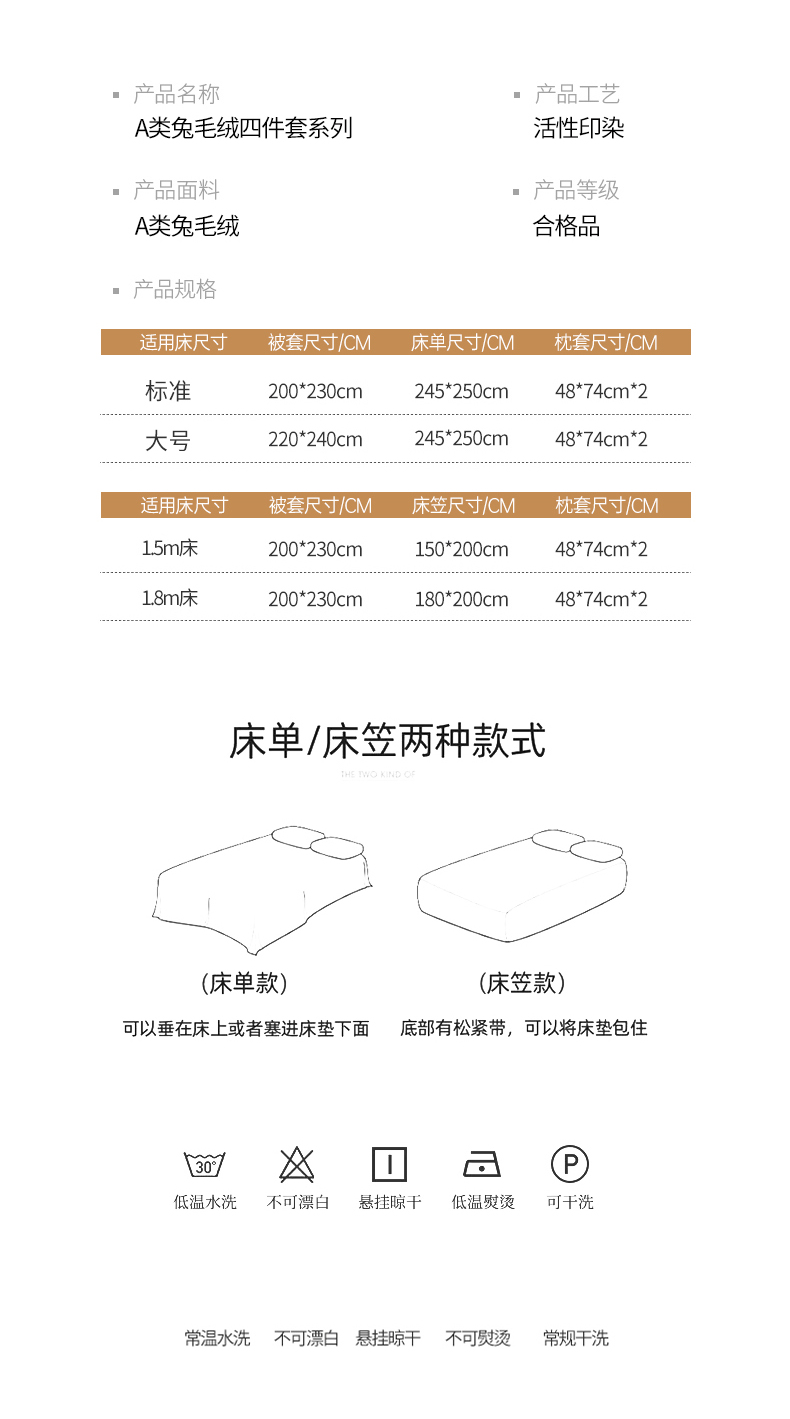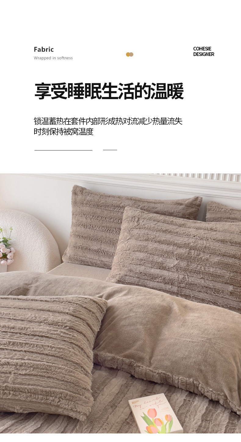 商品名称:(总)晚爱家纺 A类獭兔毛绒四件套立体剪花牛奶绒仿皮草兔兔绒