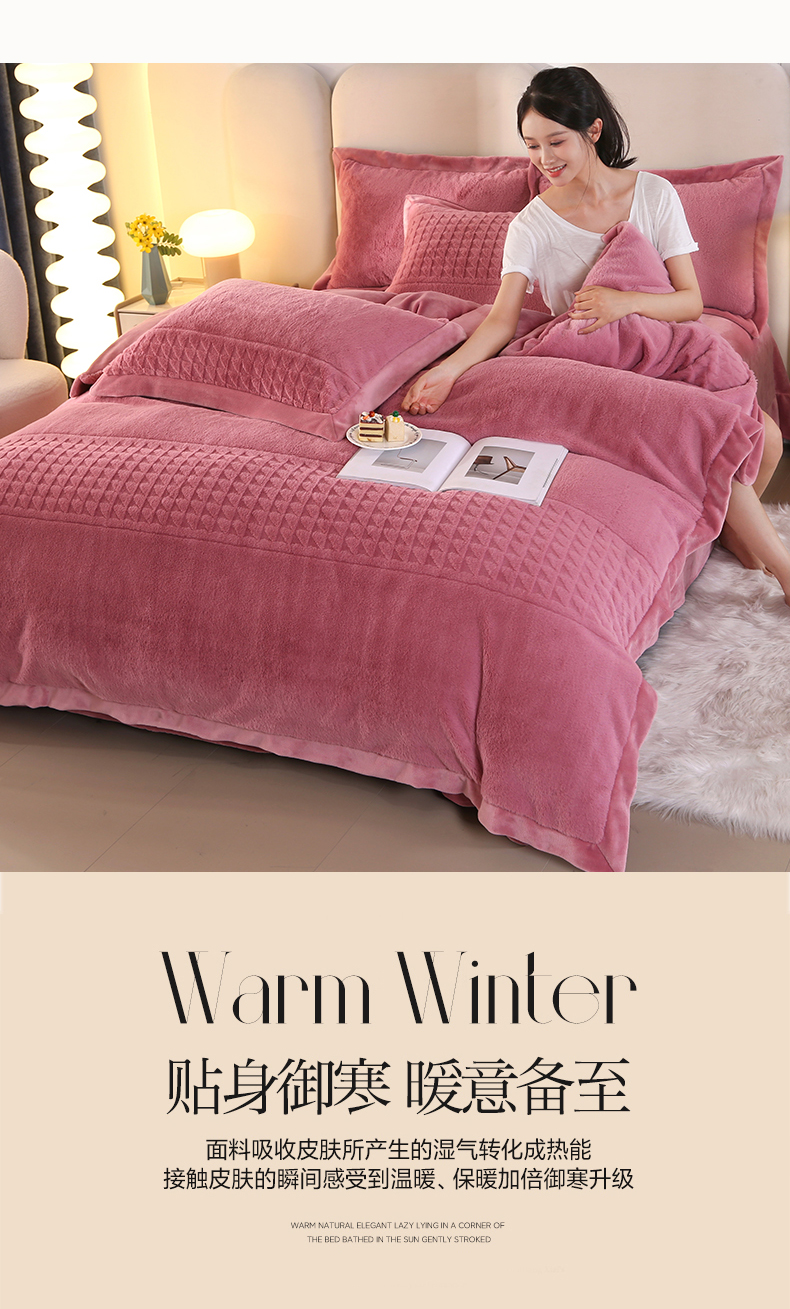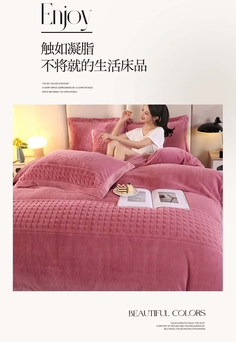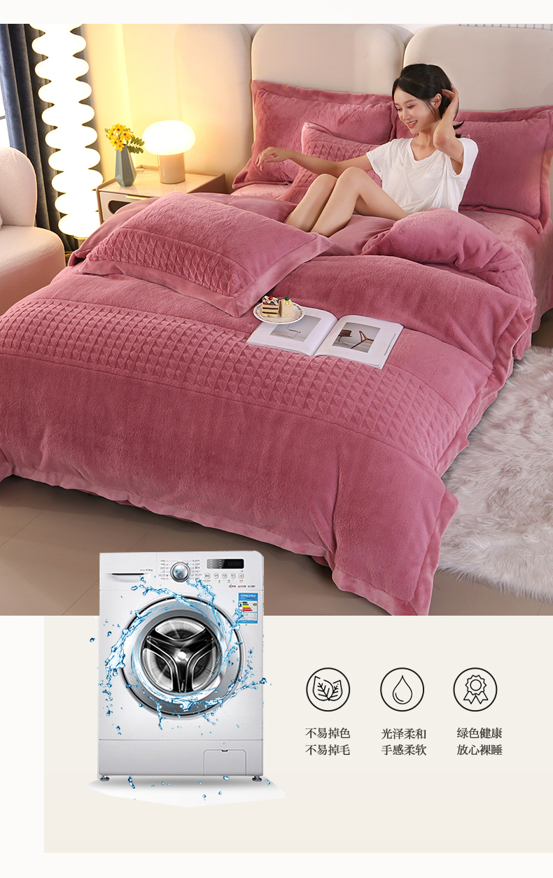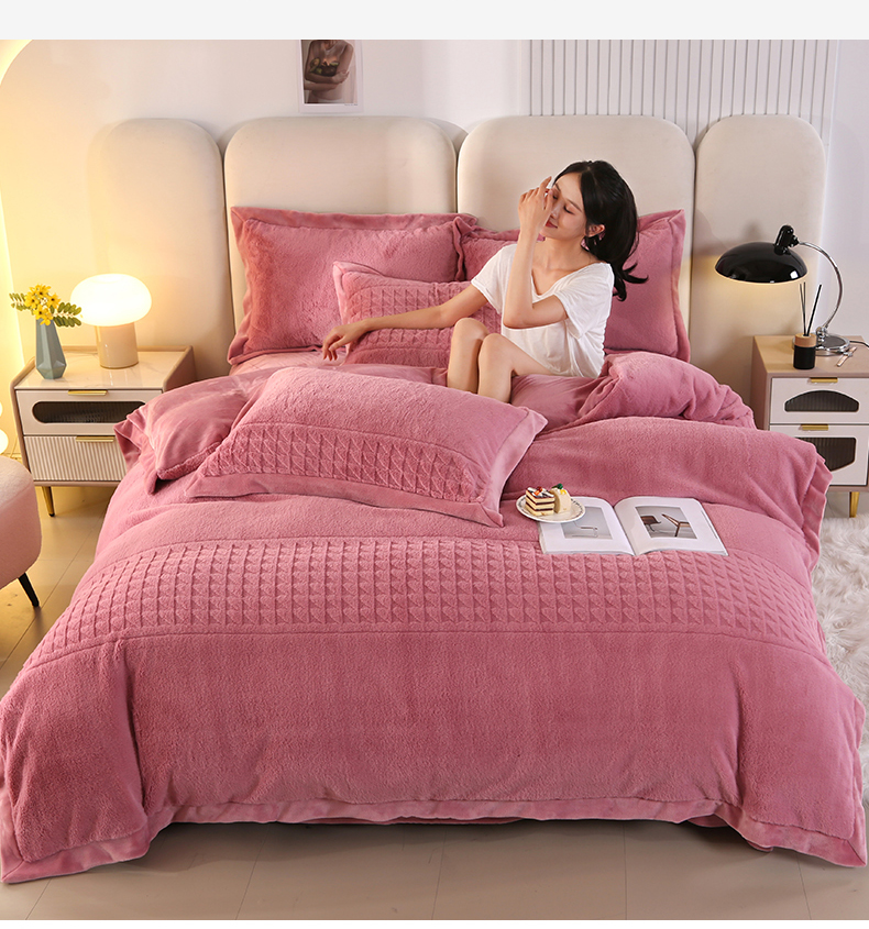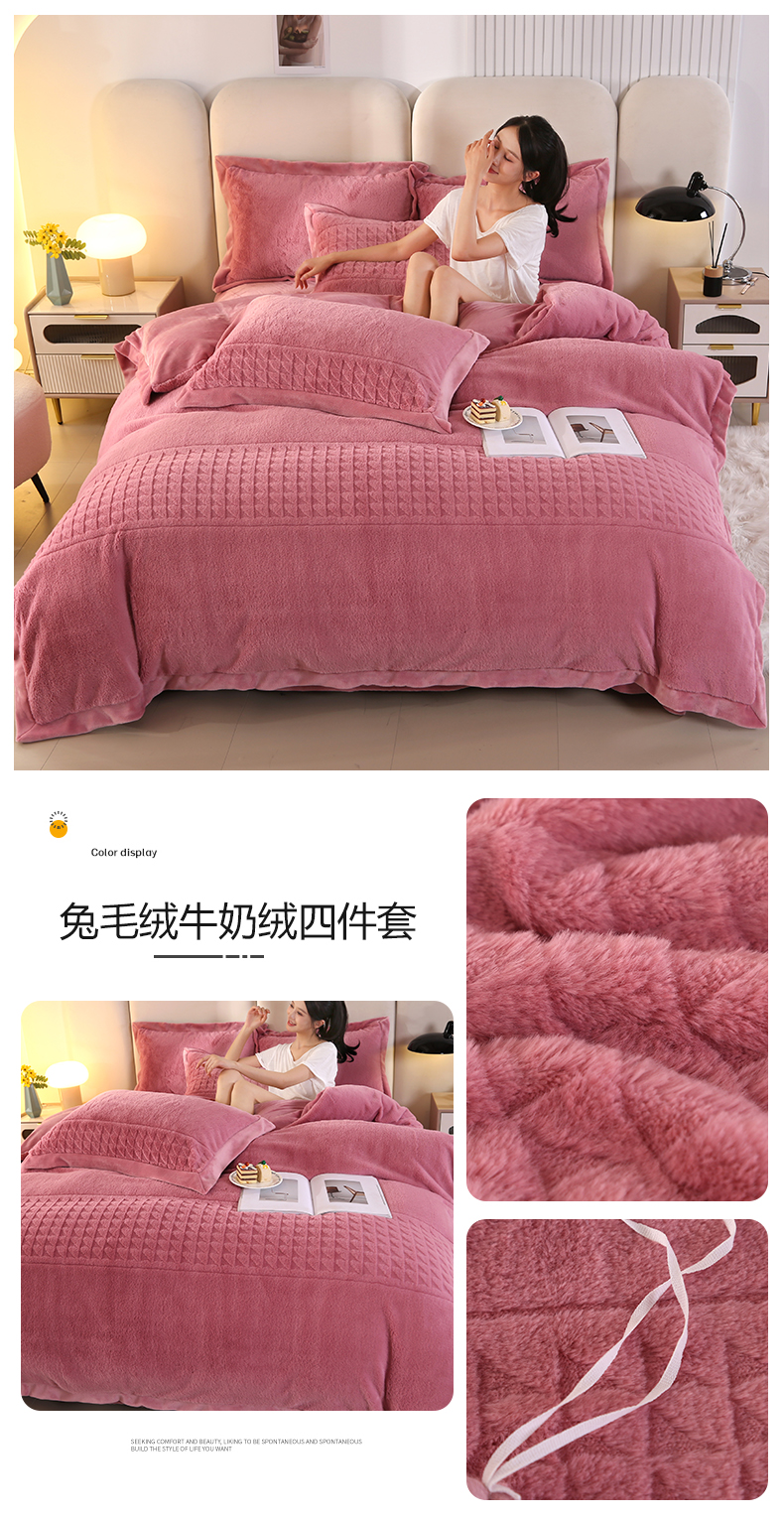 (总)代芙家纺 2025新款宝宝绒夹棉床盖款四件套,甜心-粉豆沙,甜心-海蓝,甜心-火山红,甜心-魔力紫,甜心-优雅灰