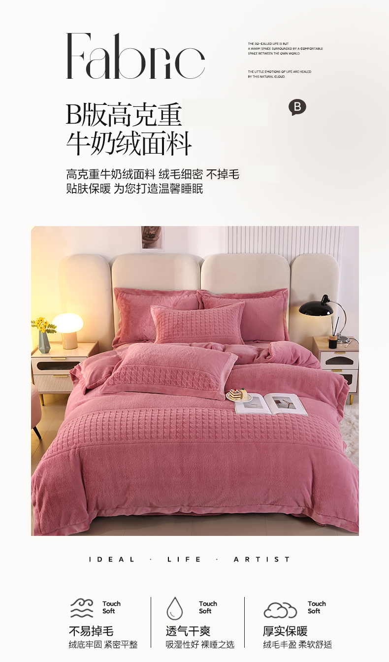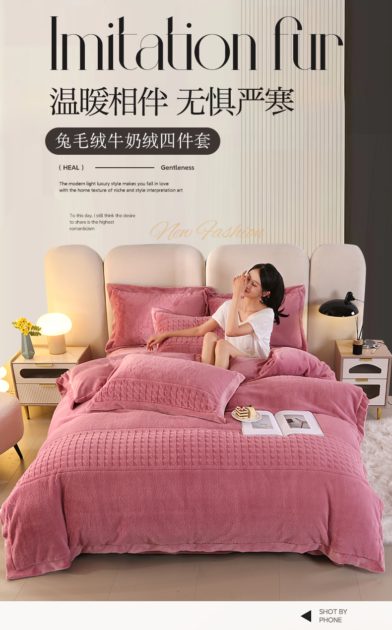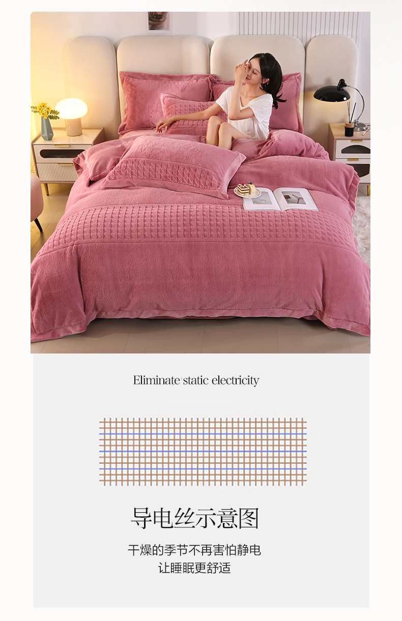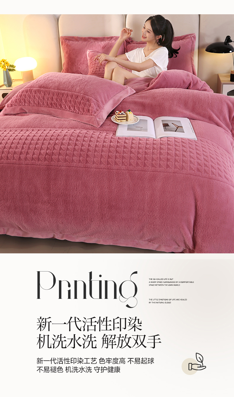 (总)代芙家纺 2025新款宝宝绒夹棉床盖款四件套,甜心-粉豆沙,甜心-海蓝,甜心-火山红,甜心-魔力紫,甜心-优雅灰