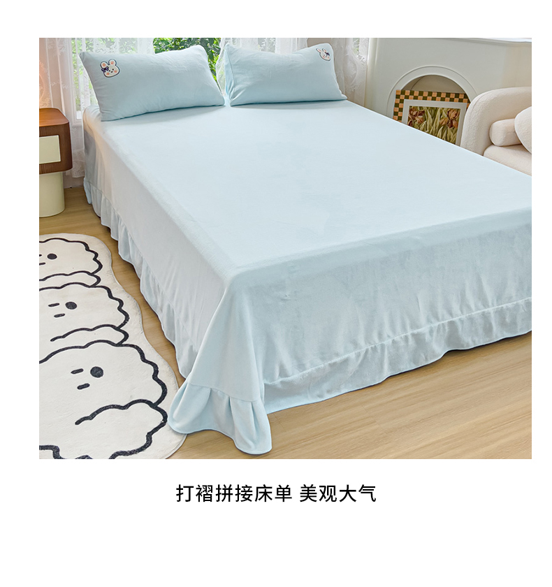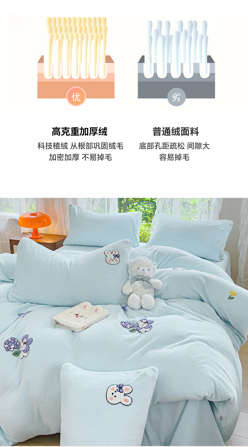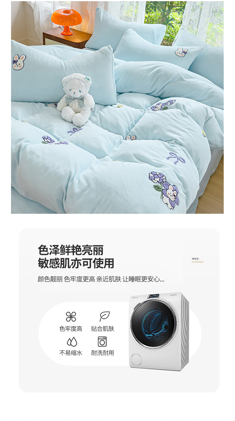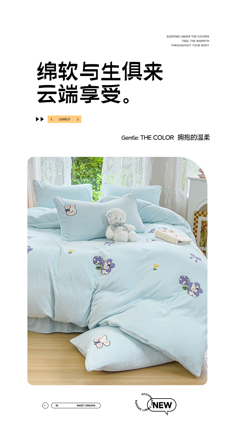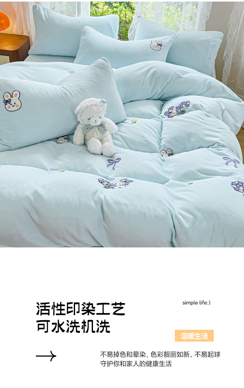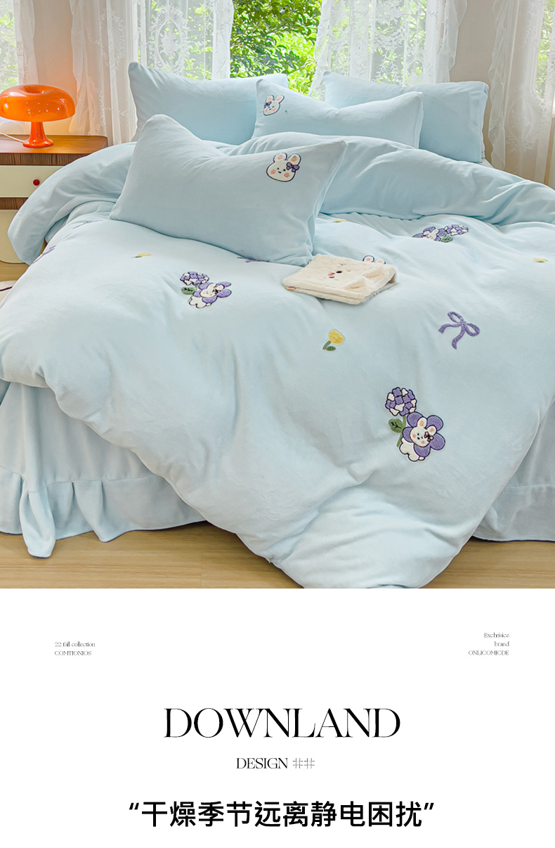 商品名称:米瑞娜 2024新款纯色毛巾绣牛奶绒四件套 安妮宝贝-蓝
