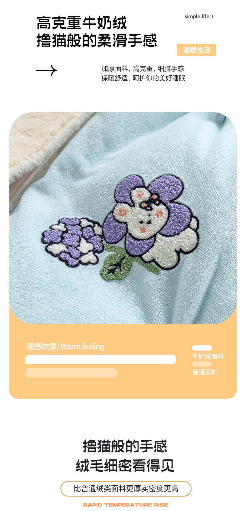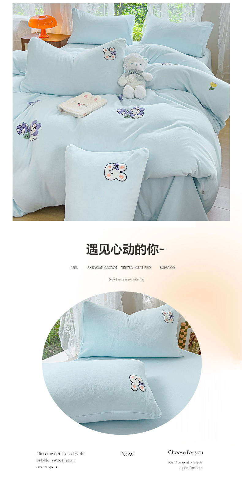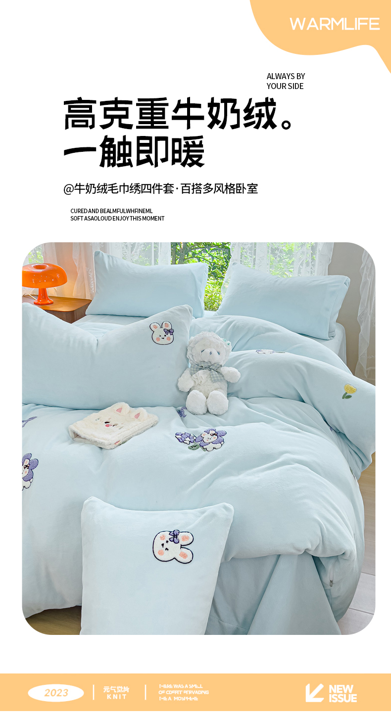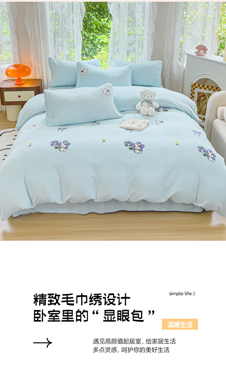 米瑞娜 2024新款纯色毛巾绣牛奶绒四件套 安妮宝贝-蓝