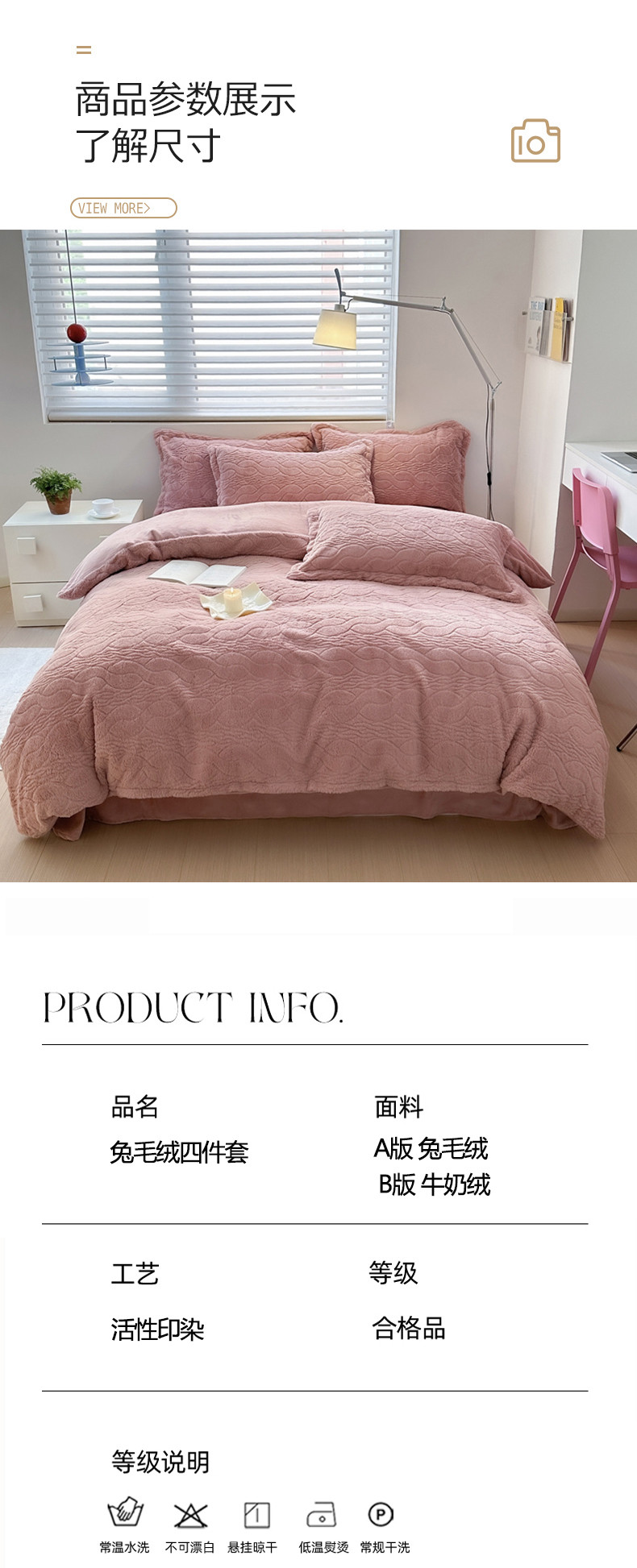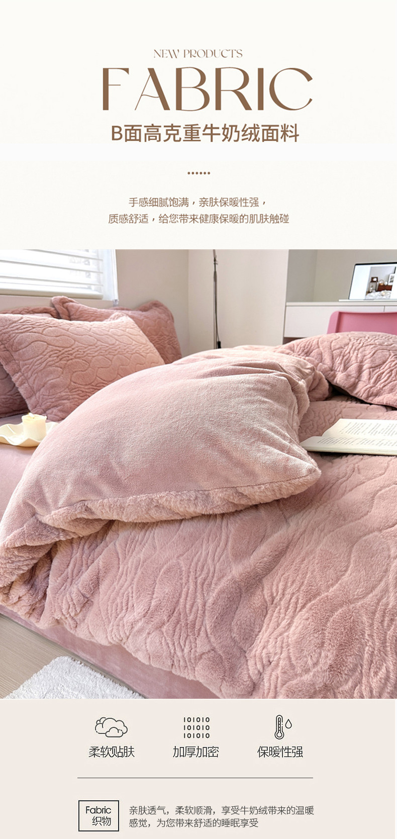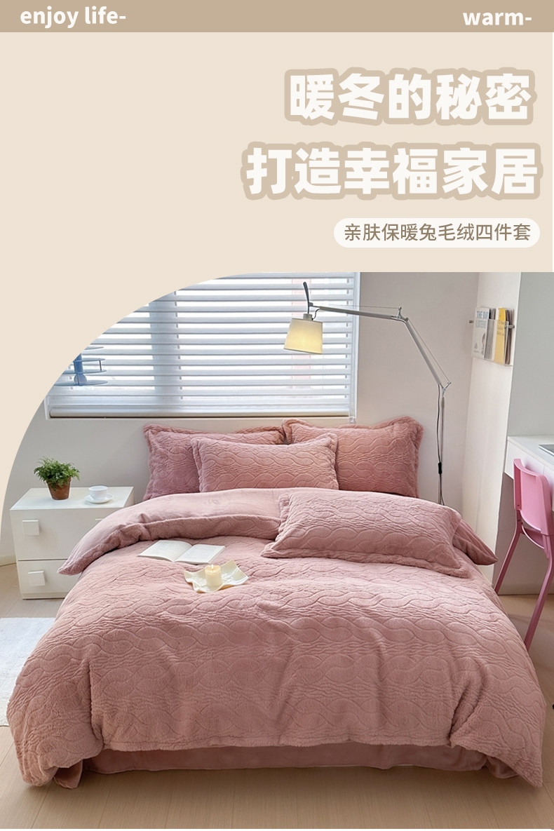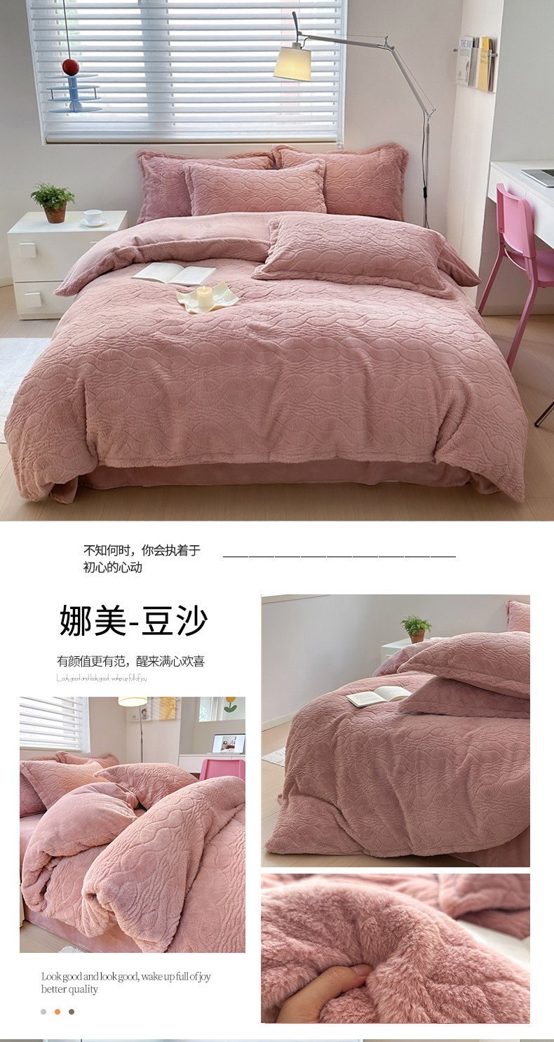 商品名称:N先生 2024秋冬新款320克9斤重兔毛四件套-娜美系列 娜美-豆沙