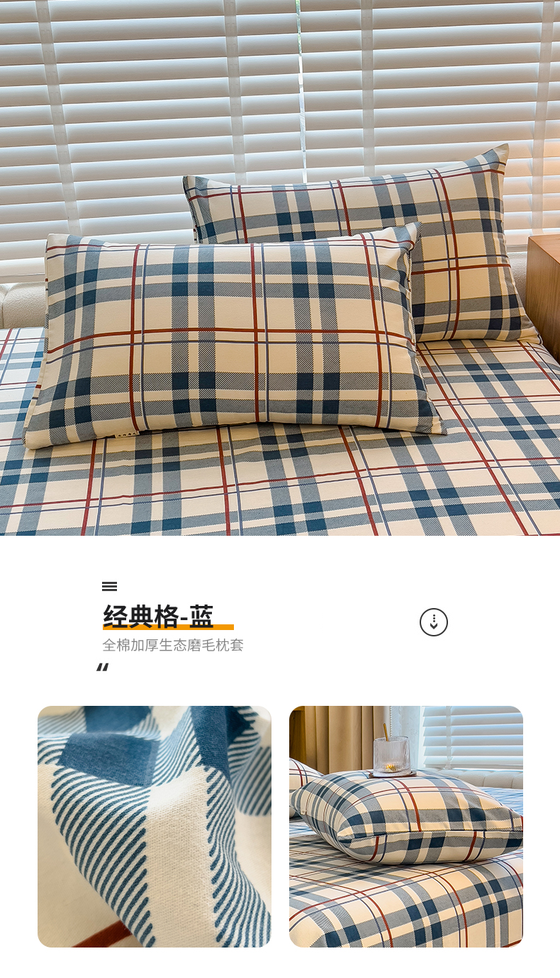 商品名称:芃成家纺 2023新款磨毛系列磨毛枕套 经典格-蓝
