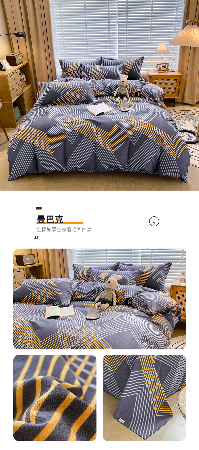 芃成家纺 2023新款磨毛四件套 曼巴克