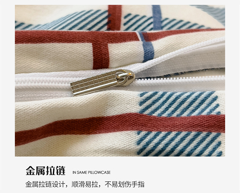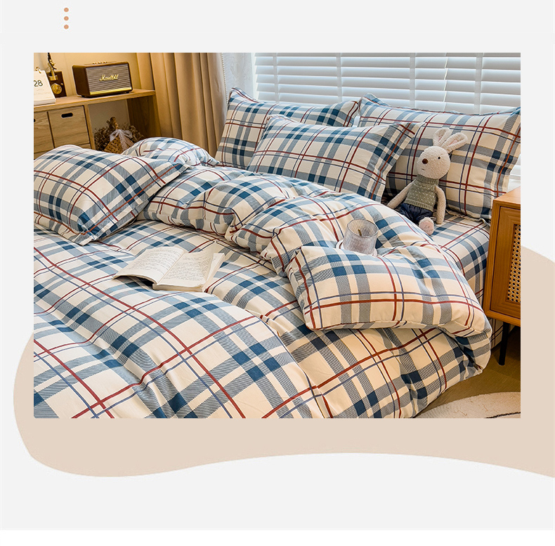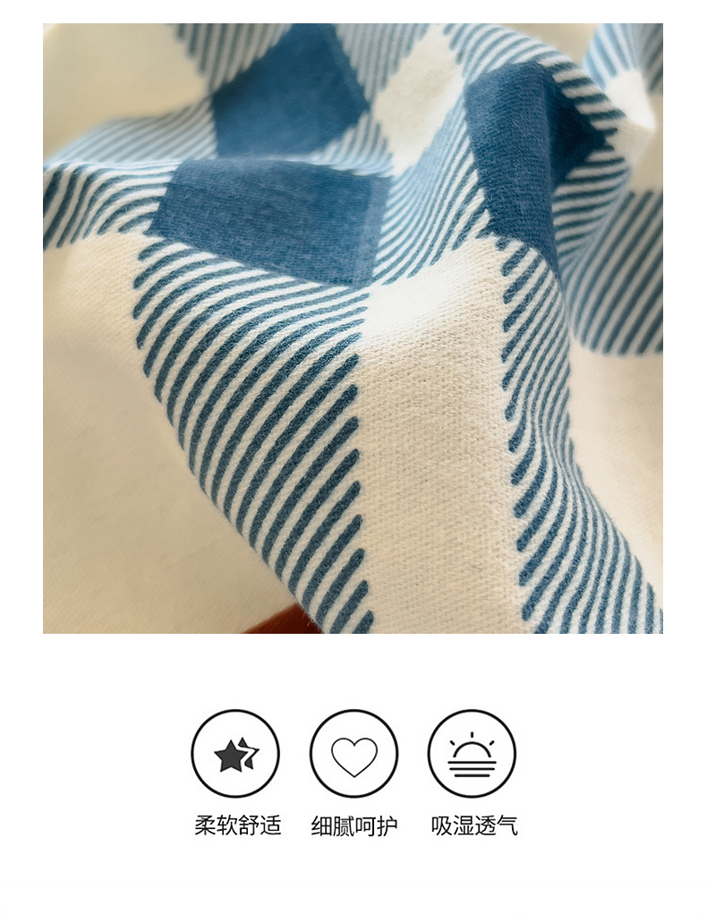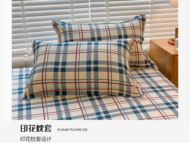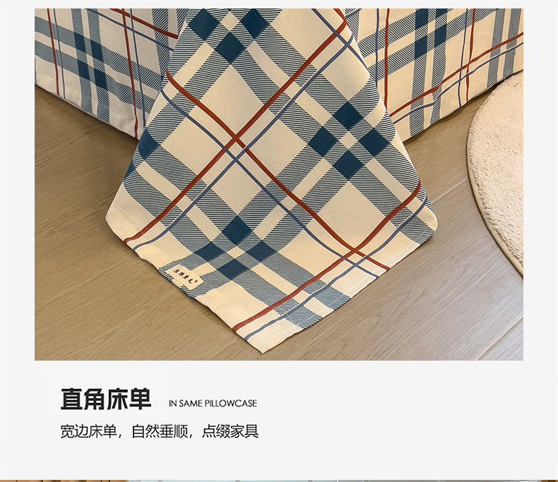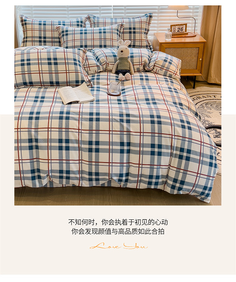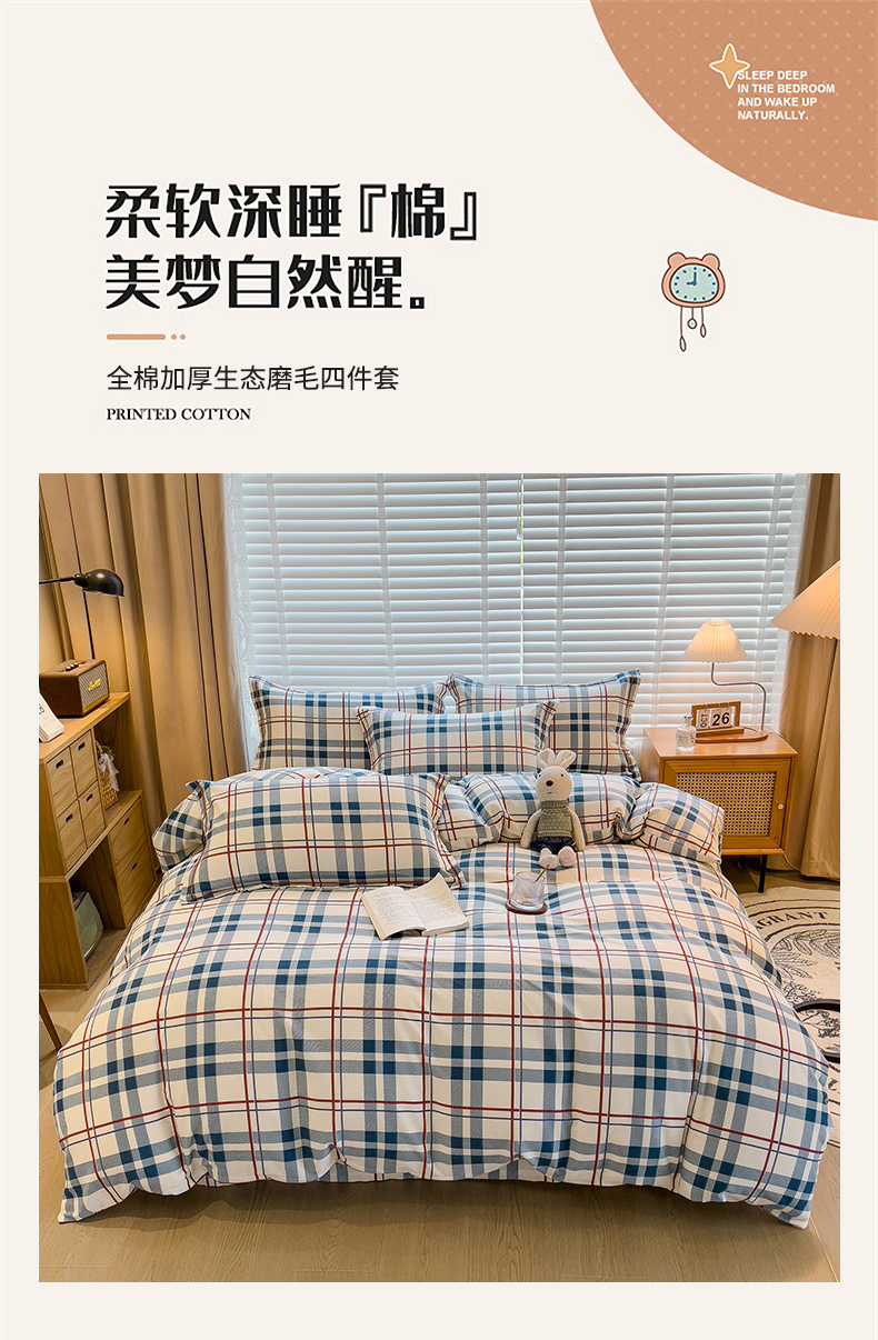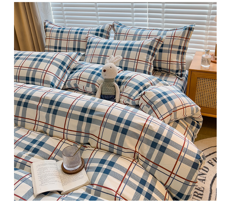商品名称:芃成家纺 2023新款磨毛四件套 经典格-蓝