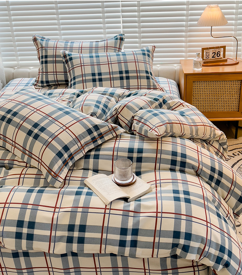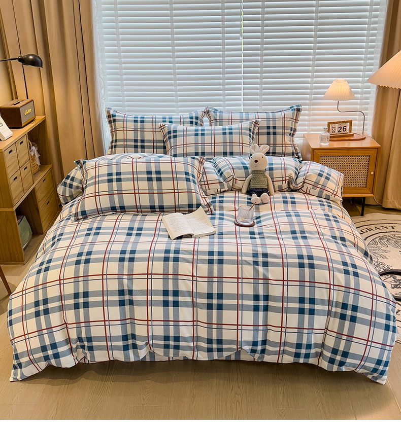 芃成家纺 2023新款磨毛四件套 经典格-蓝