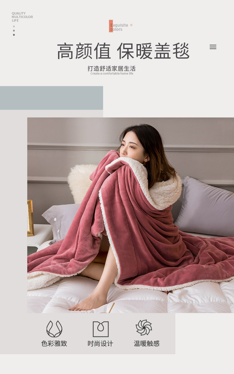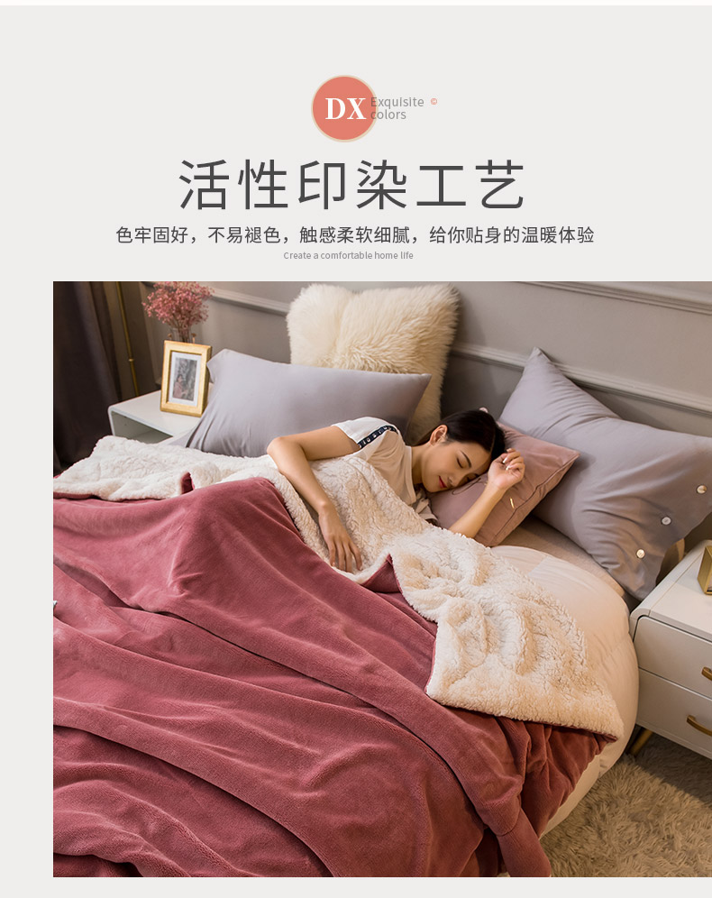 商品名称:欧邦 新款爆款纯色羊羔绒双层毛毯 豆沙白