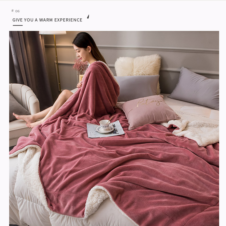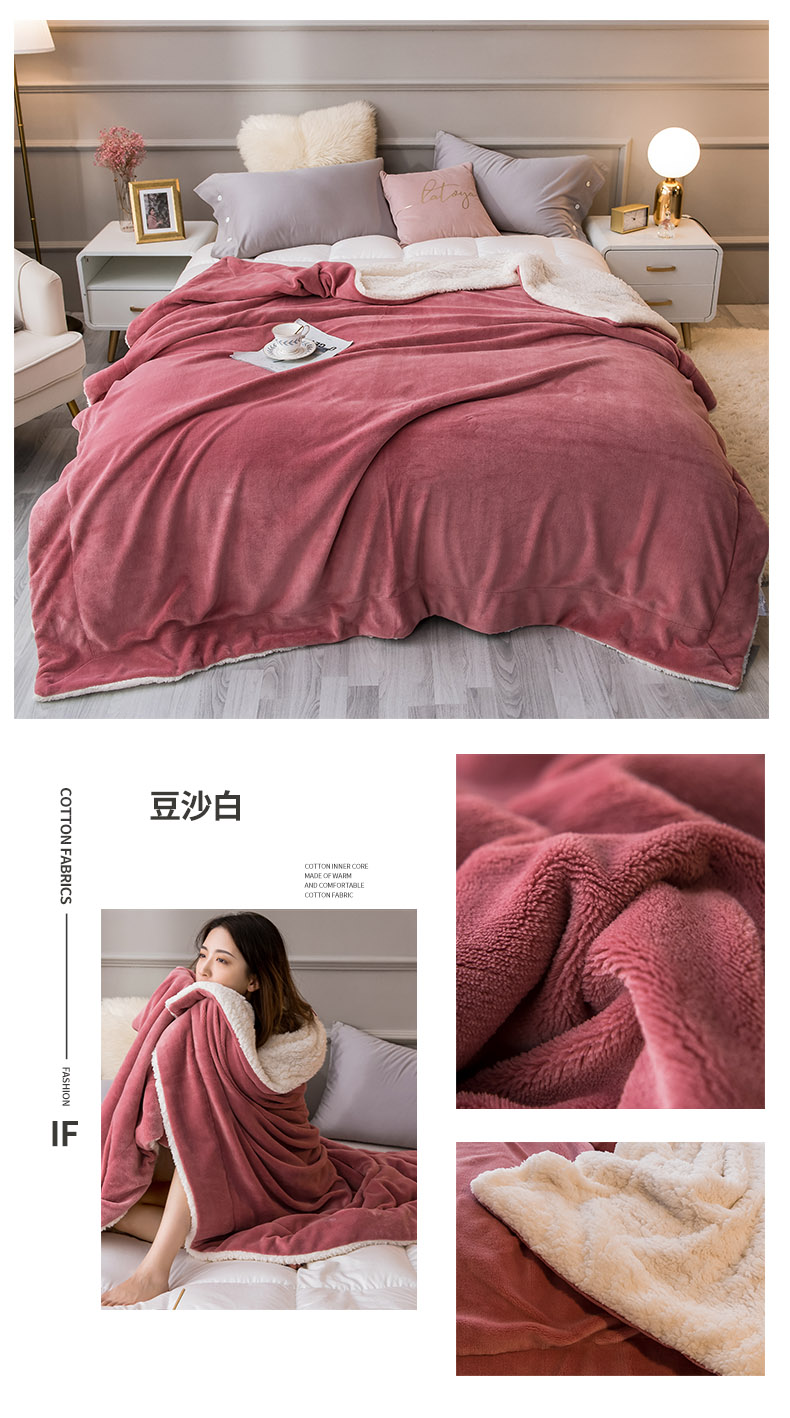 欧邦 新款爆款纯色羊羔绒双层毛毯 豆沙白