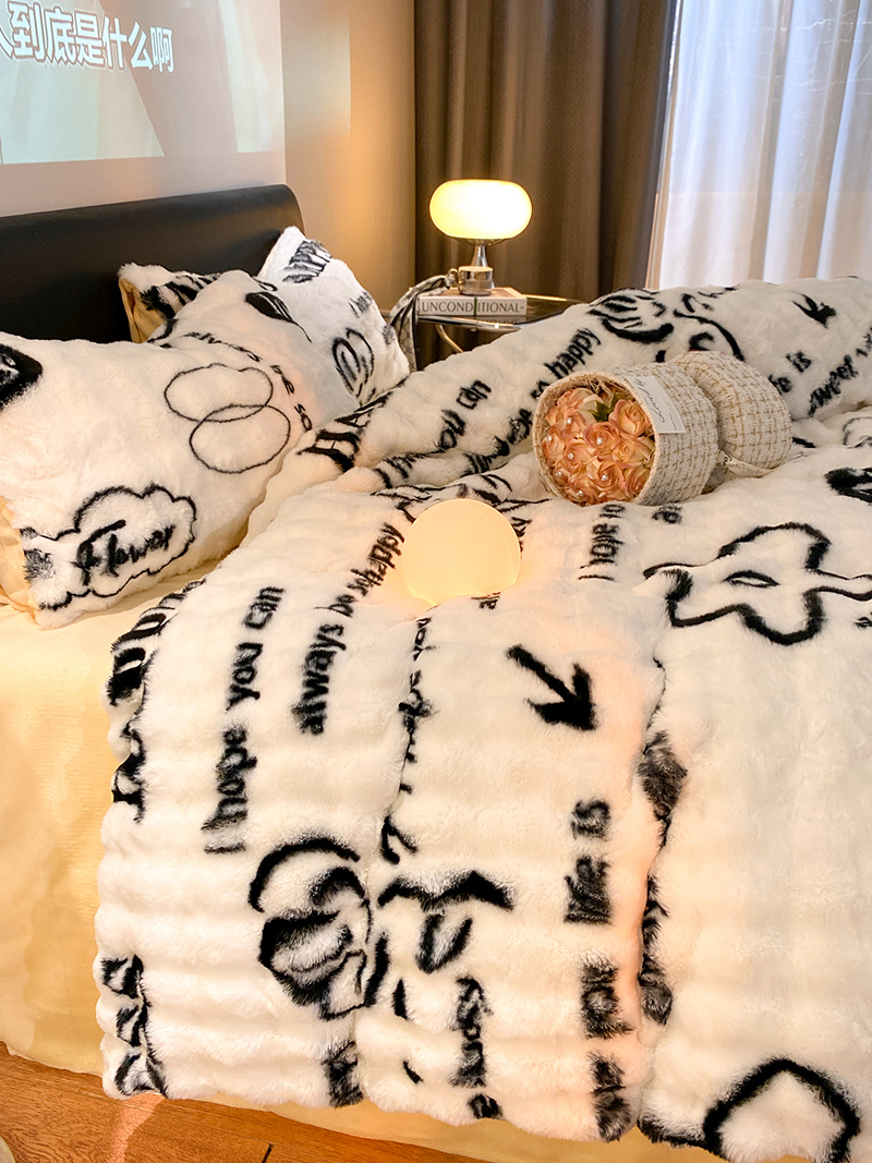 澳梵家居 2023舒芙蕾印花兔兔绒牛奶绒四件套 浪漫畅想