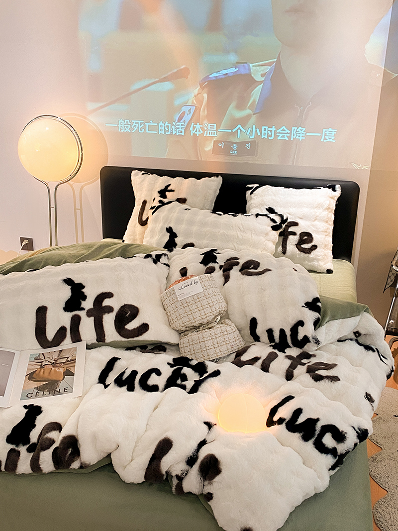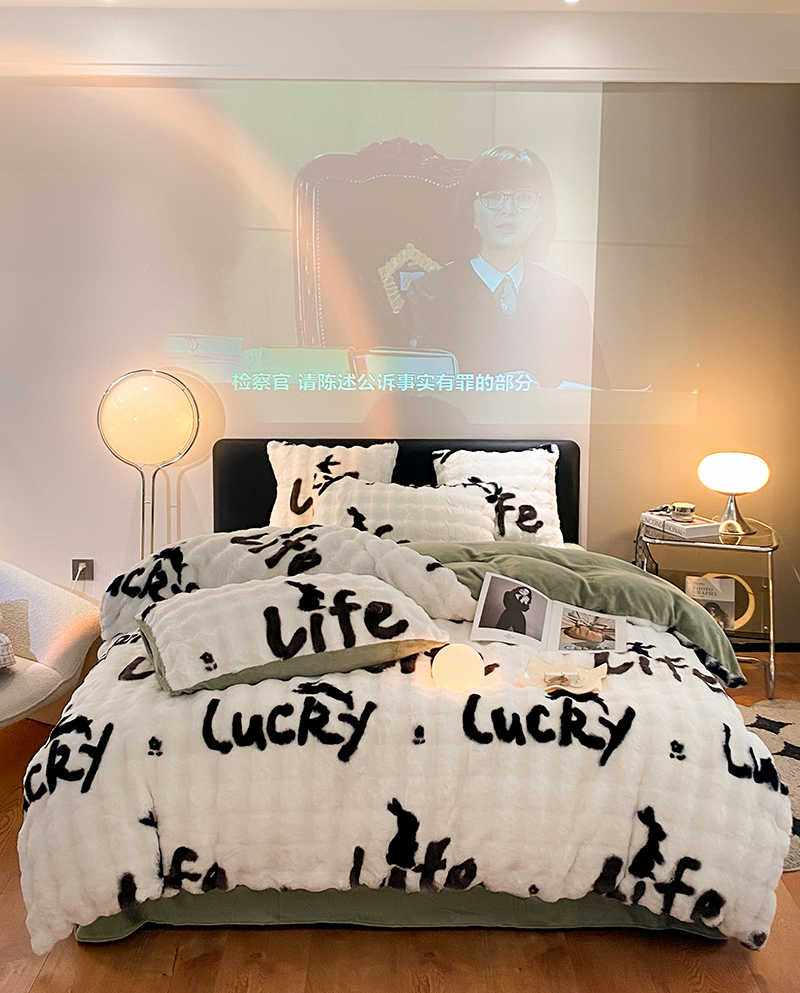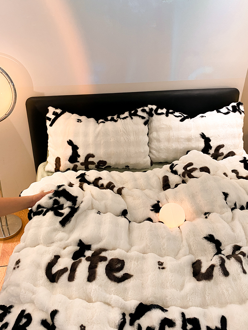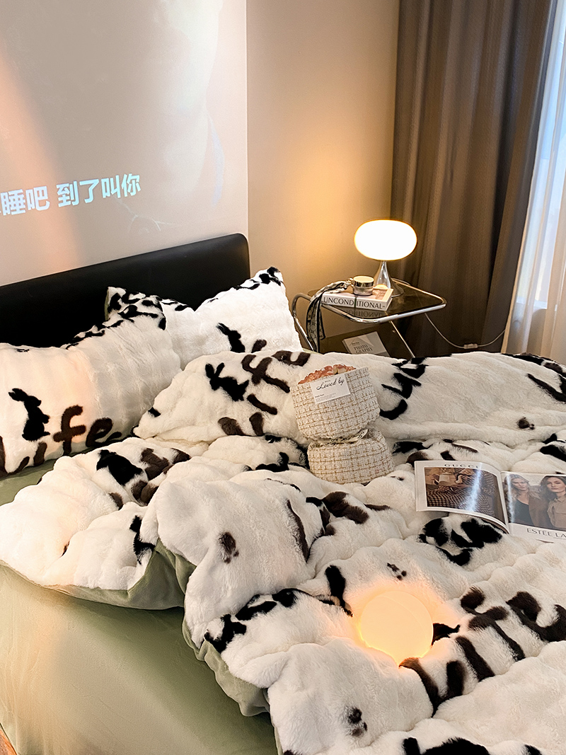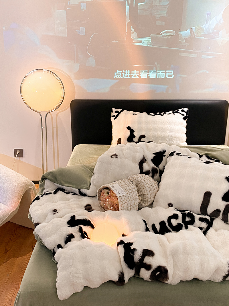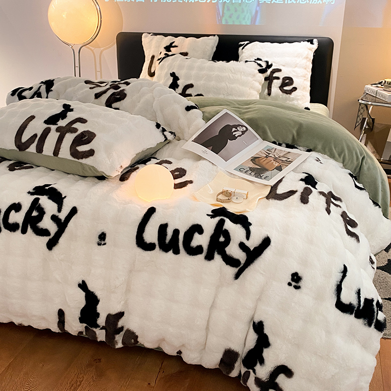 澳梵家居 2023舒芙蕾印花兔兔绒牛奶绒四件套 幸运兔