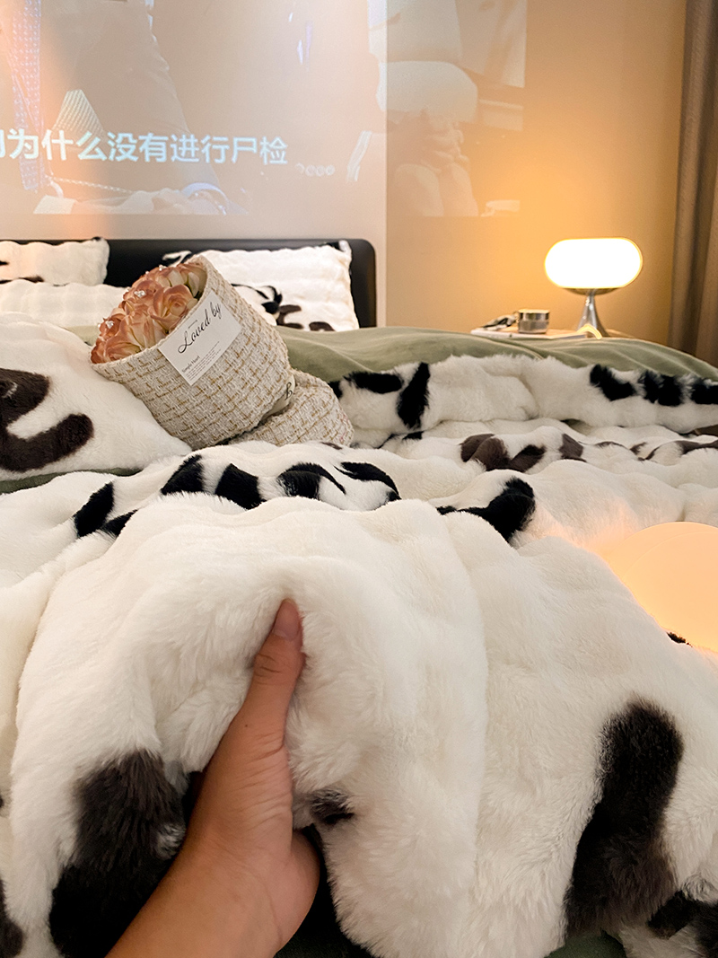 商品名称:澳梵家居 2023舒芙蕾印花兔兔绒牛奶绒四件套 幸运兔