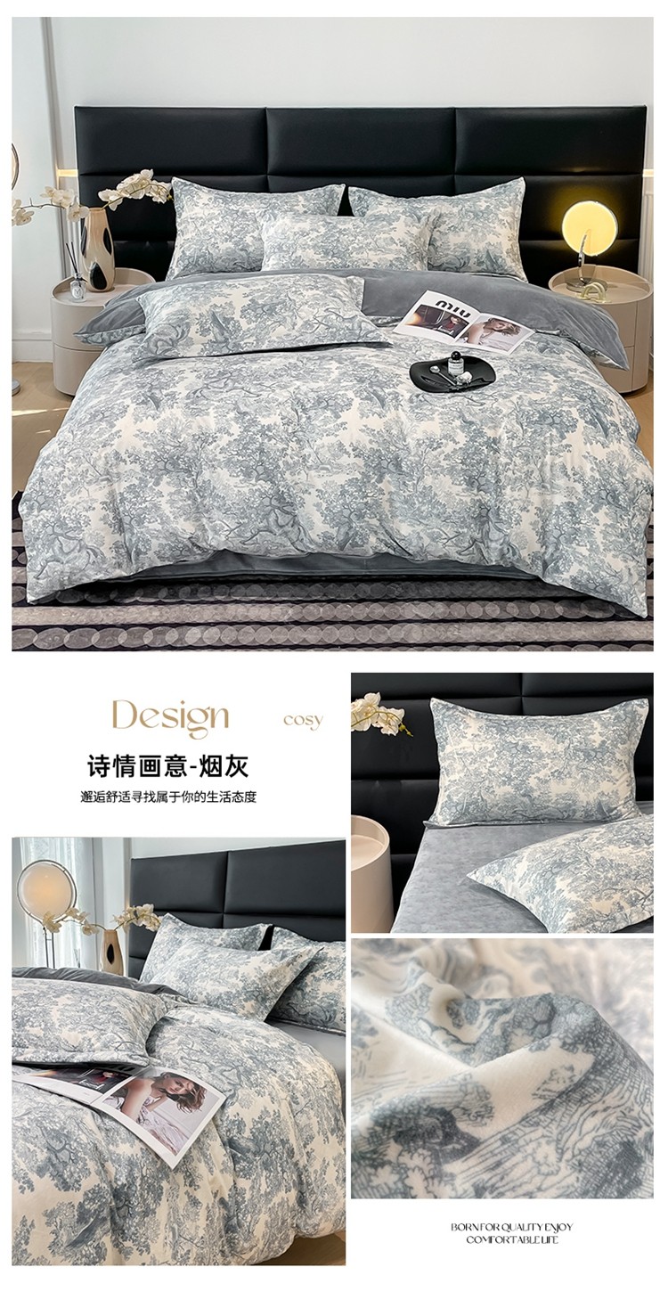 商品名称:慕希2024新款数码印花牛奶绒婴儿绒保暖绒四件套 诗情画意-烟灰