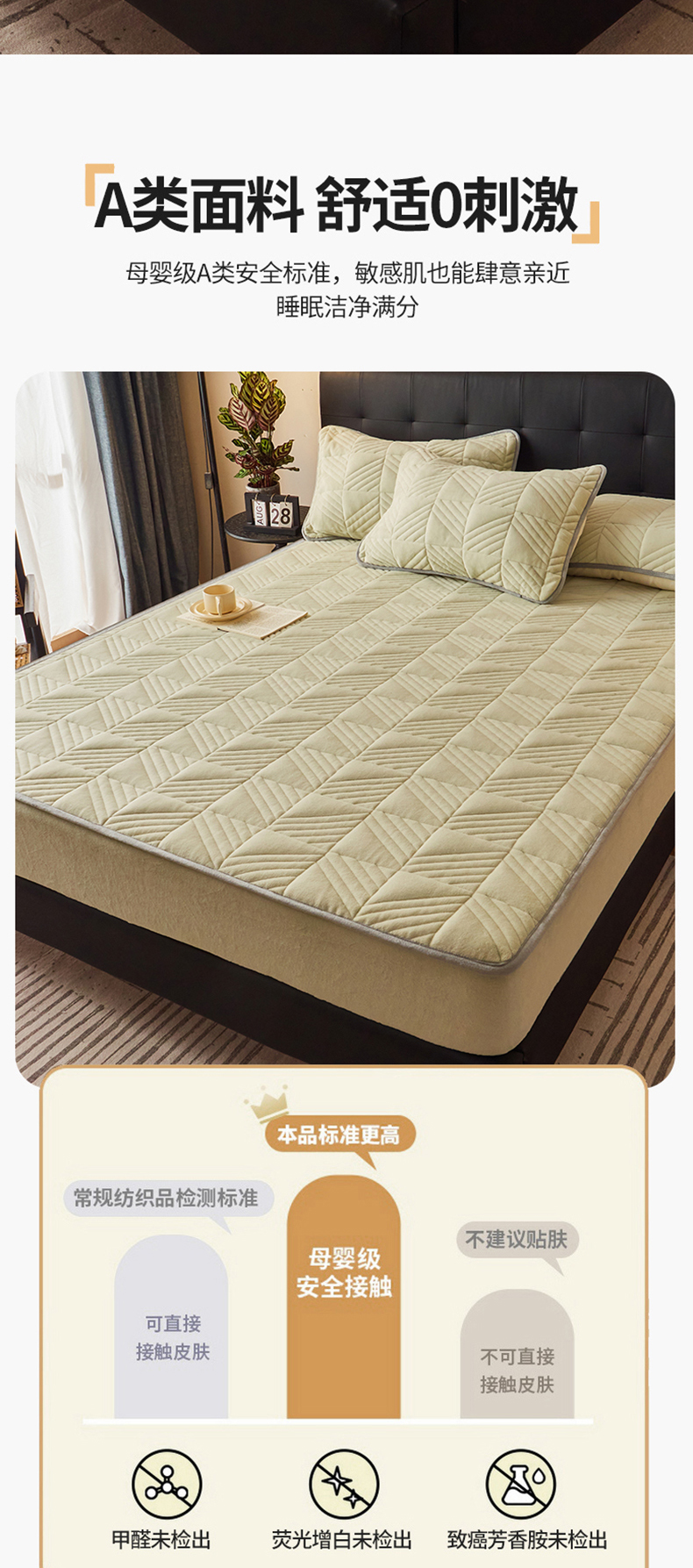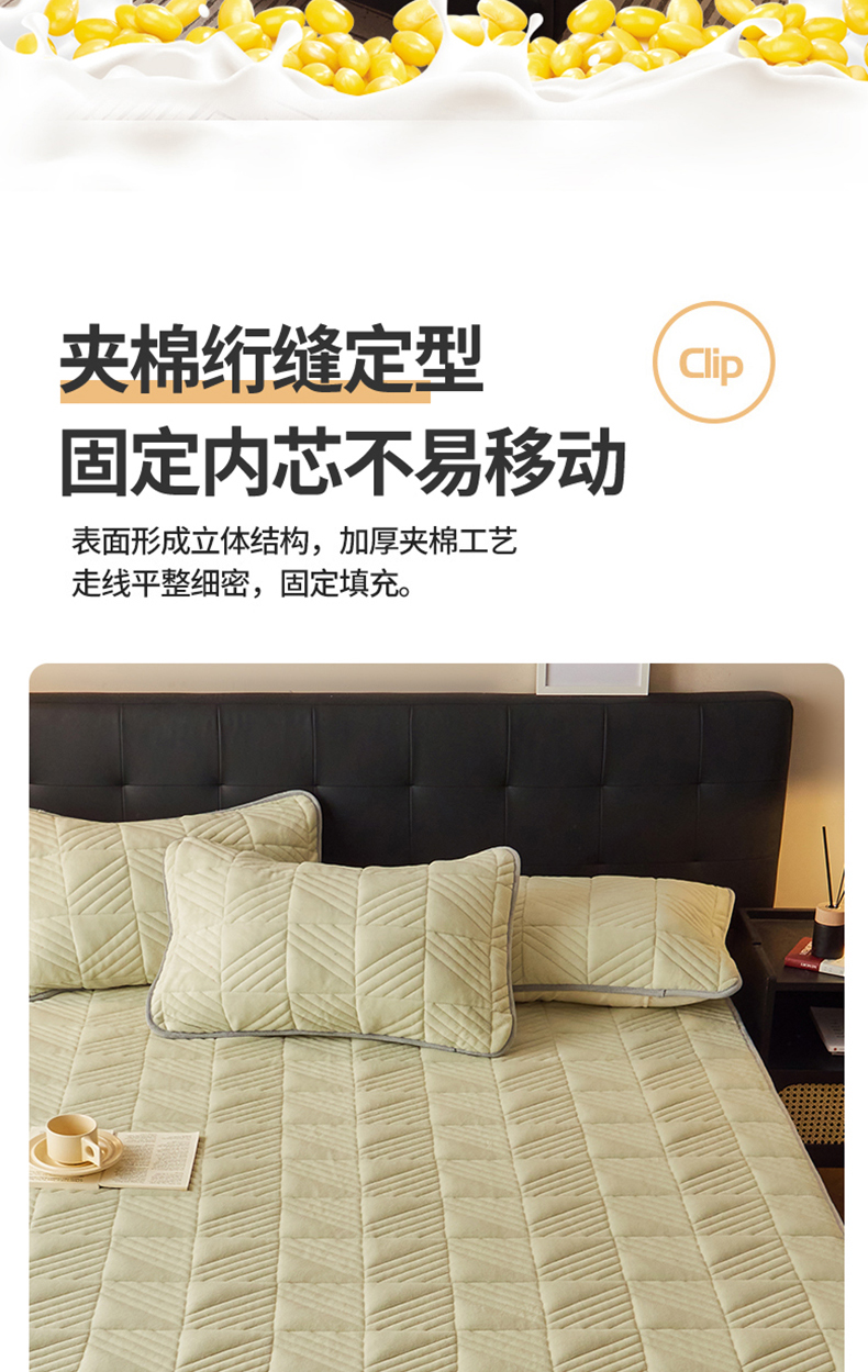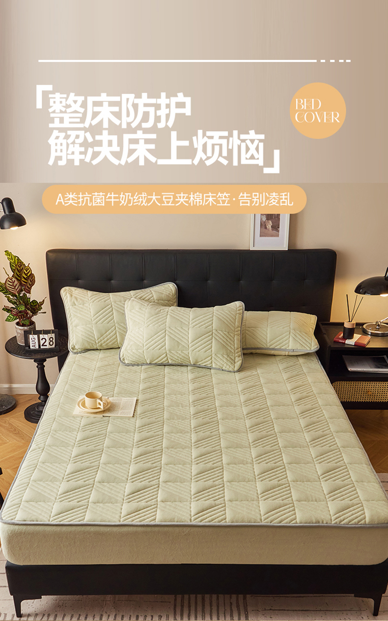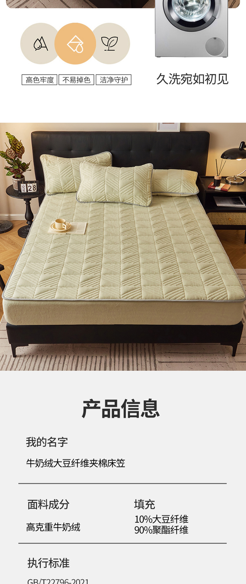 商品名称:全季家居2023新款A类大豆纤维抗静电牛奶绒夹棉床笠-纯色 果绿