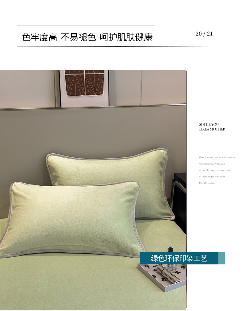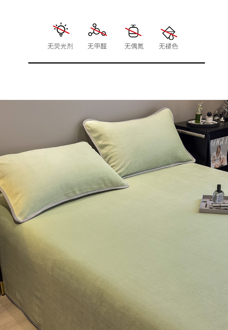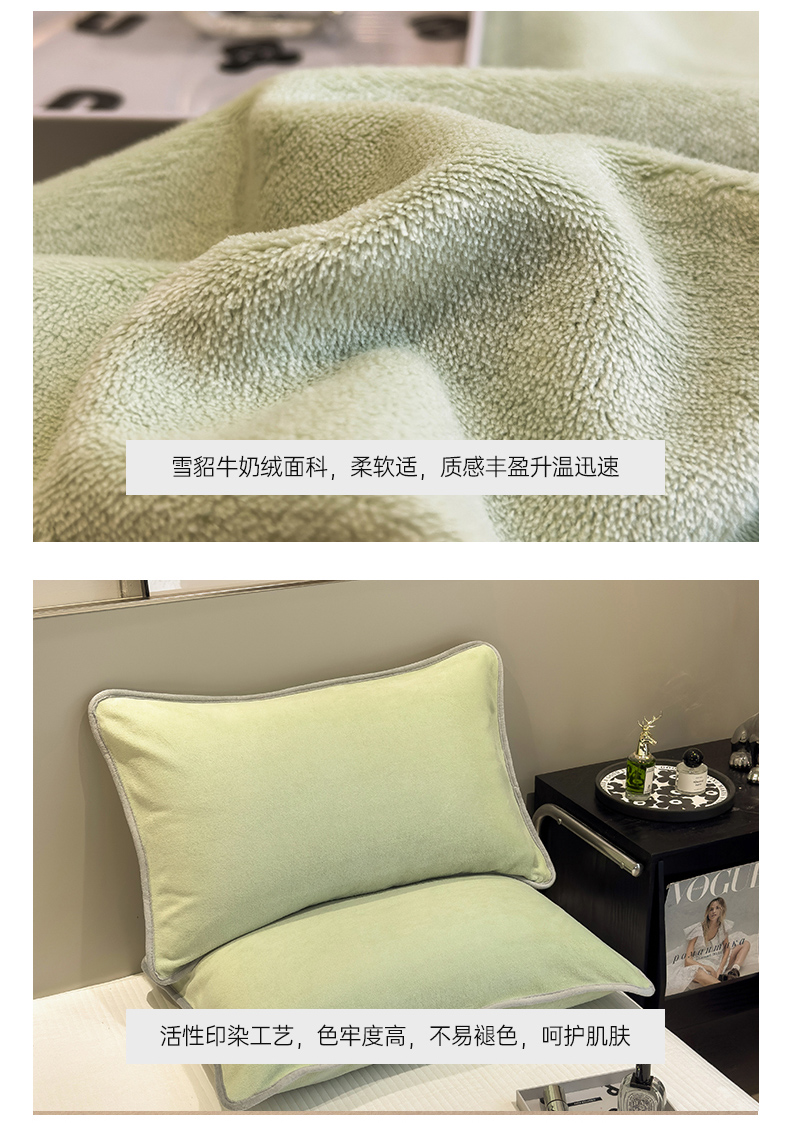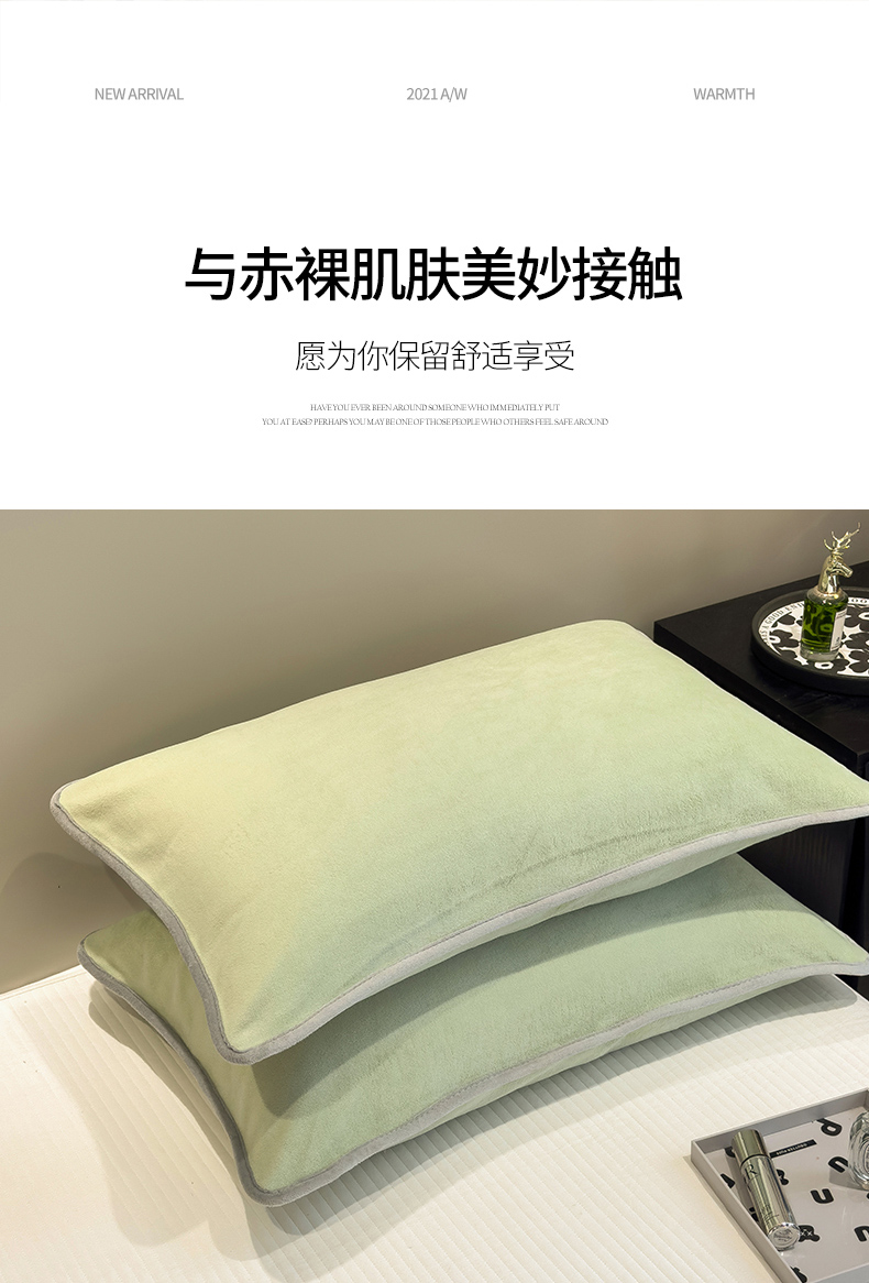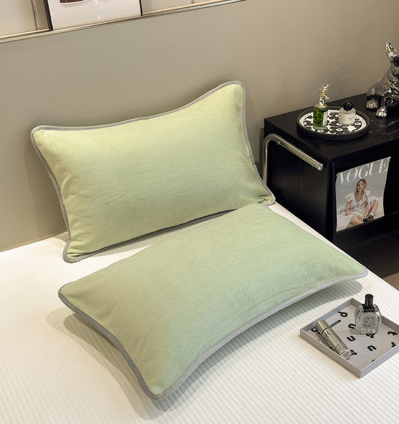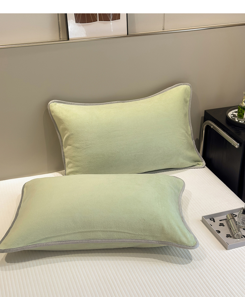 商品名称:全季家居2023新款纯色印花高克重抗静电包边牛奶绒枕套-纯色 果绿