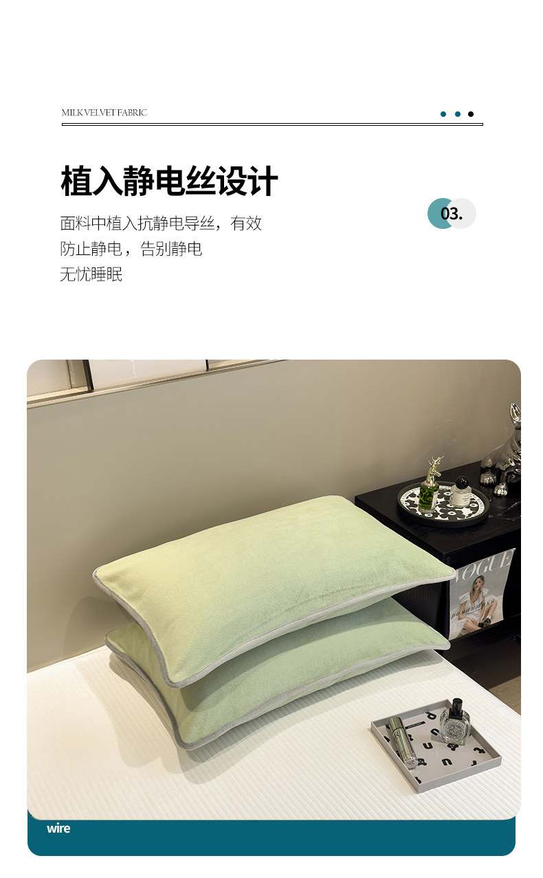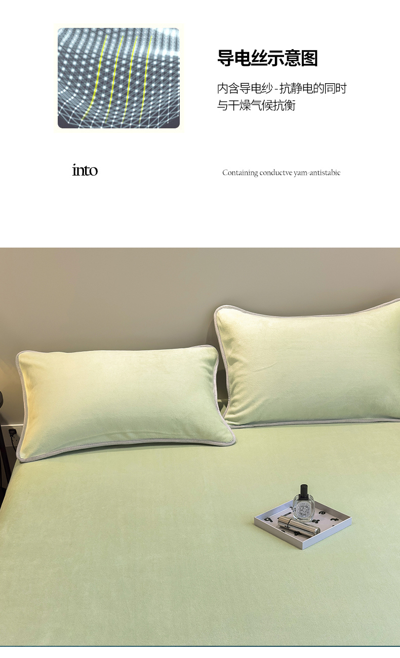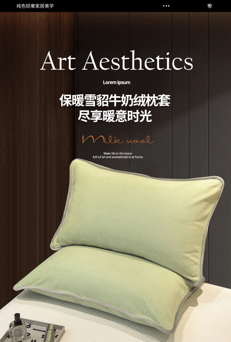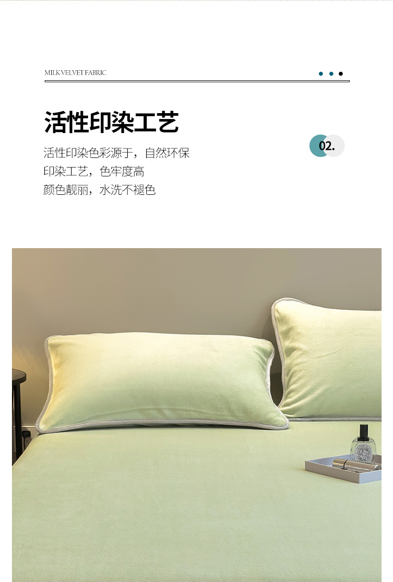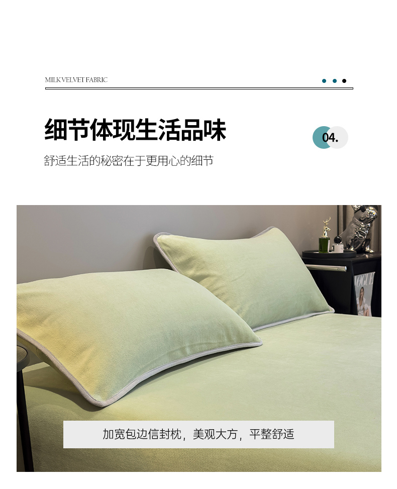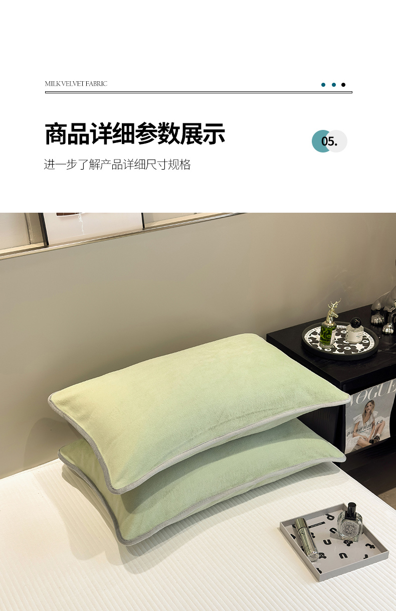 商品名称:全季家居2023新款纯色印花高克重抗静电包边牛奶绒枕套-纯色 果绿