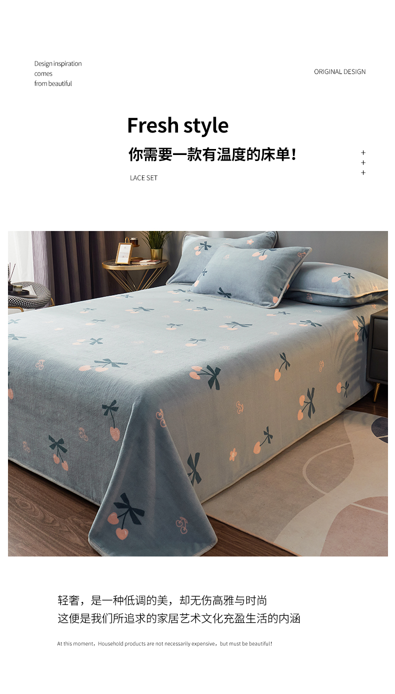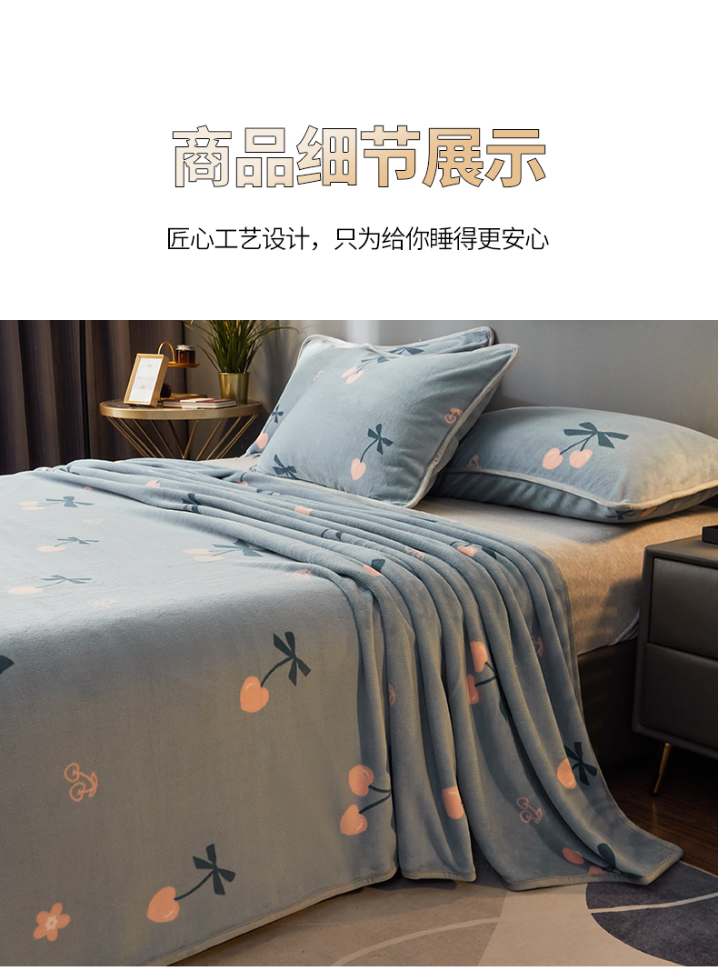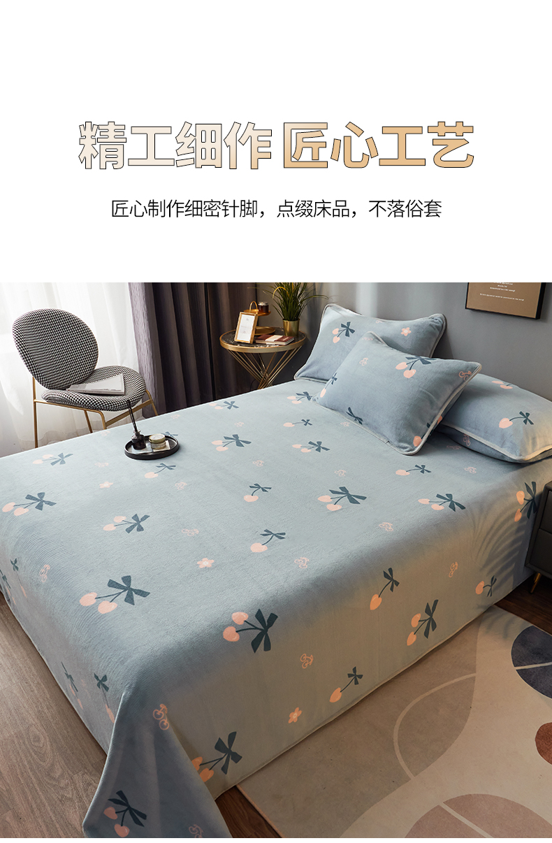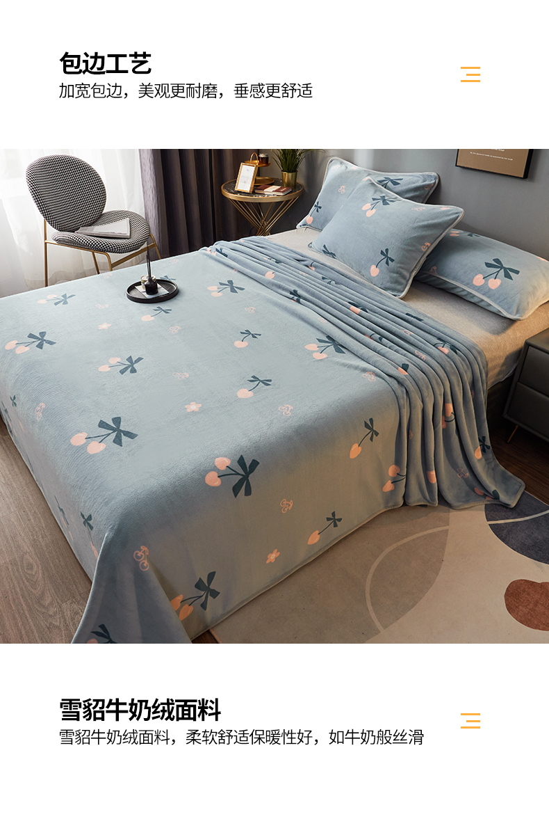 商品名称:全季家居 2023新款纯色印花高克重抗静电包边牛奶绒床单-印花 小樱桃