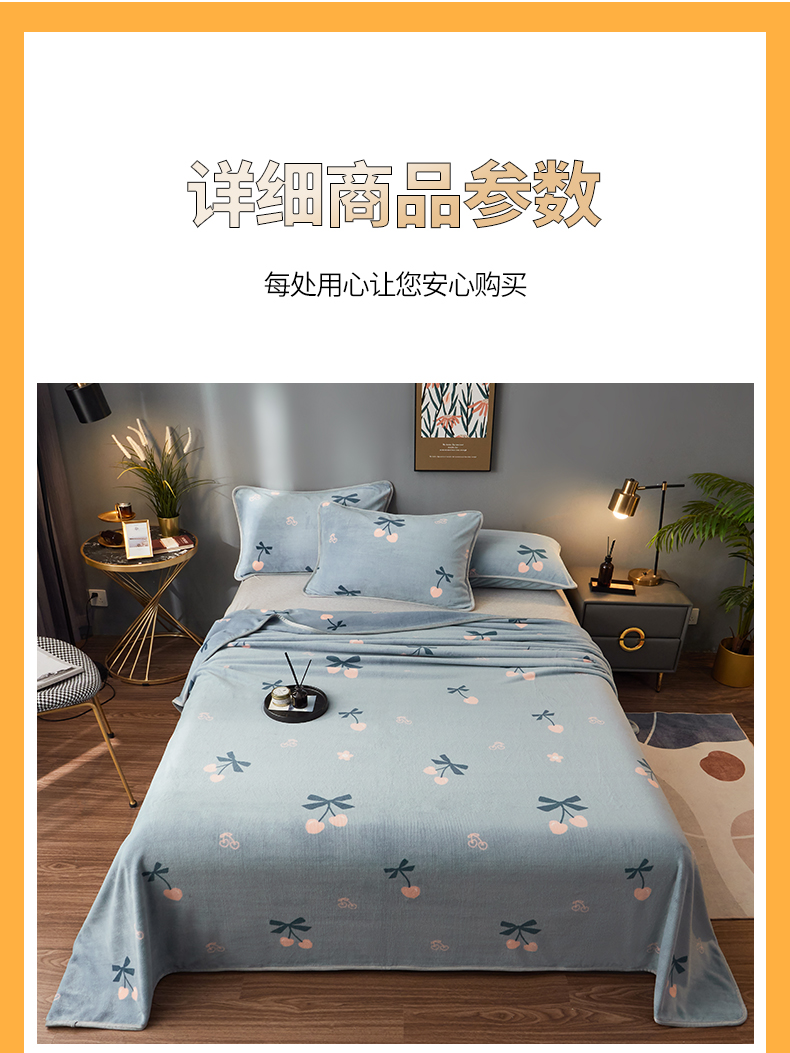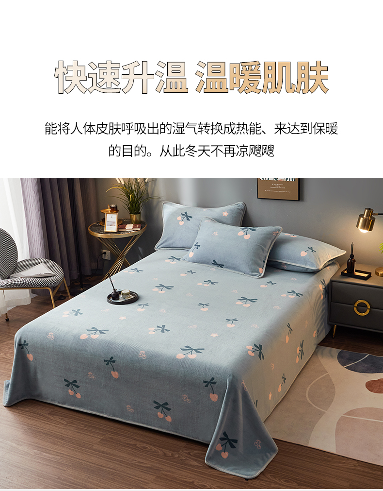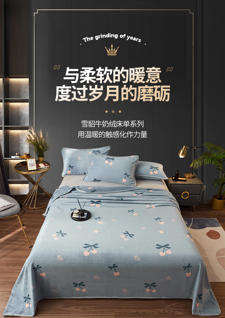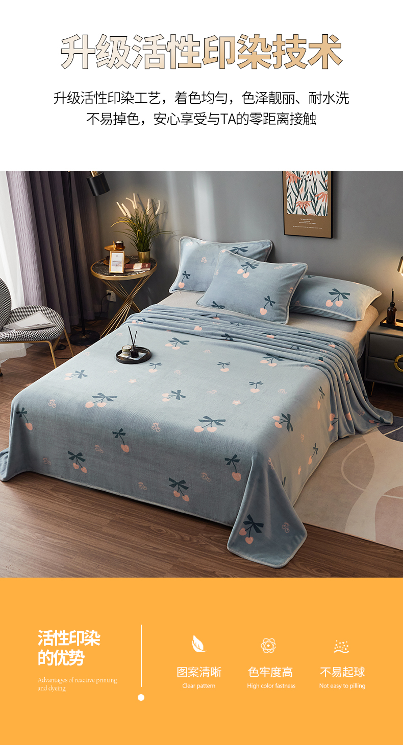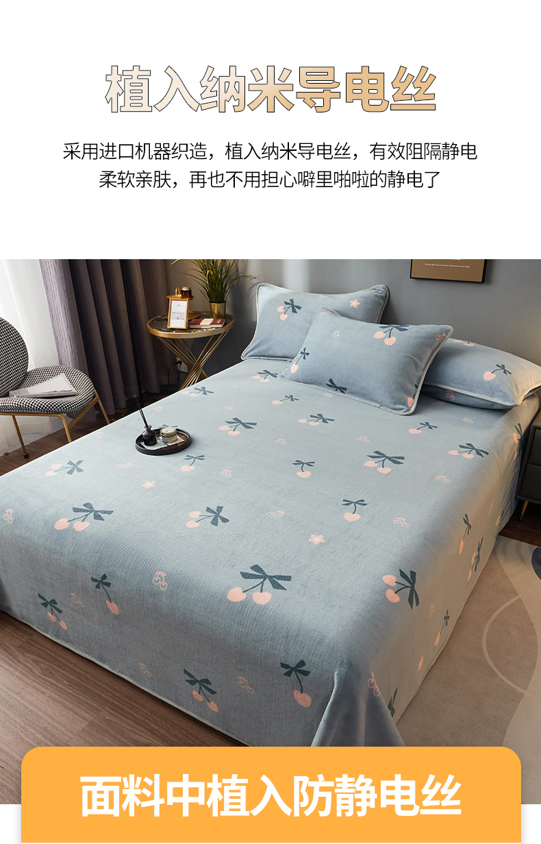 商品名称:全季家居 2023新款纯色印花高克重抗静电包边牛奶绒床单-印花 小樱桃