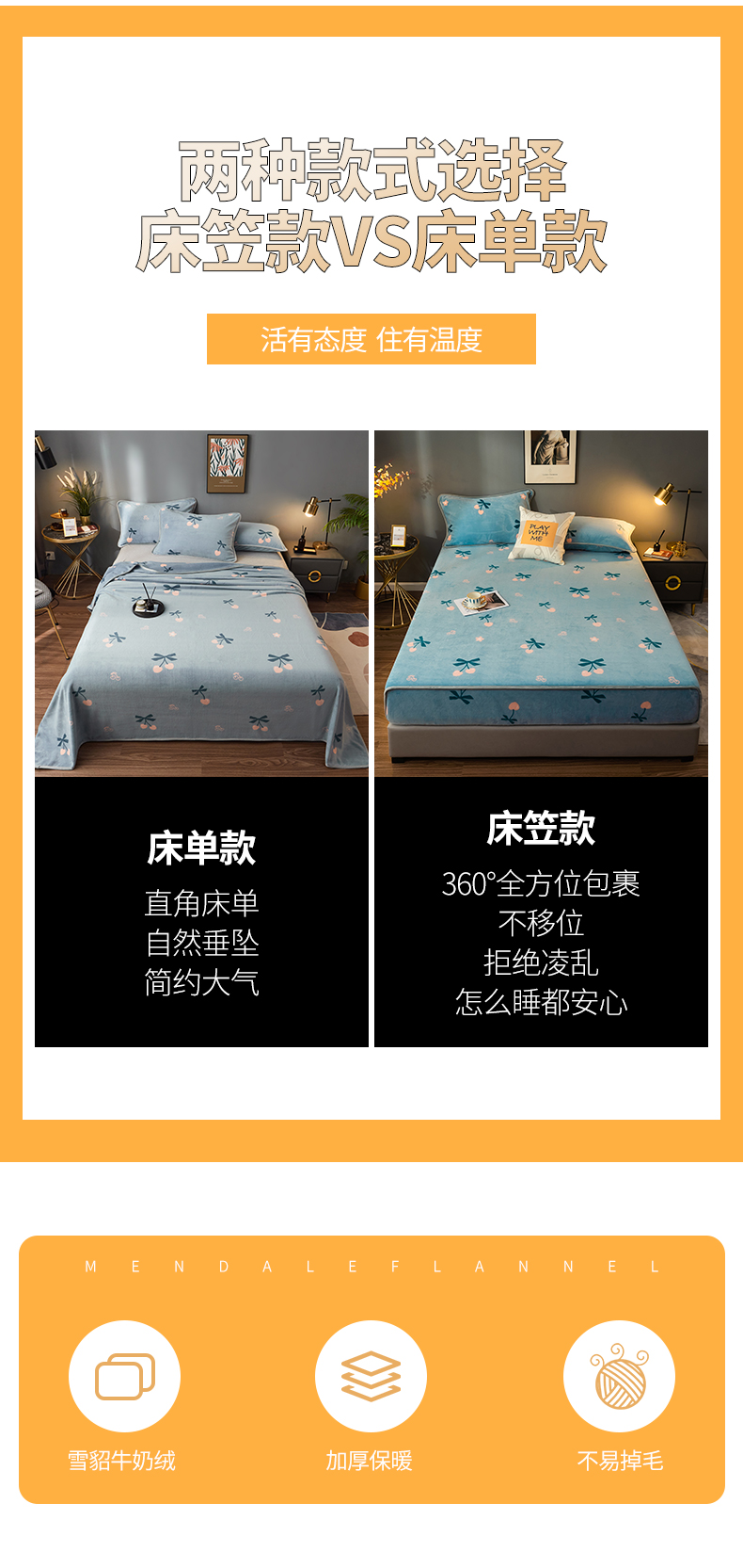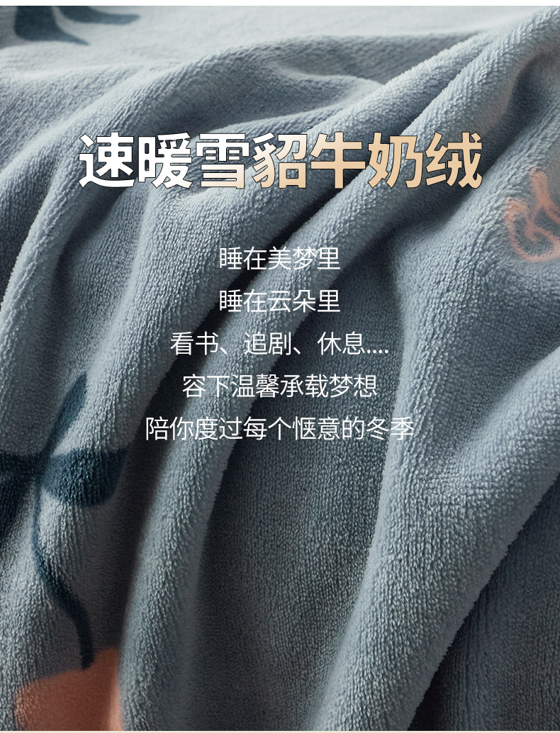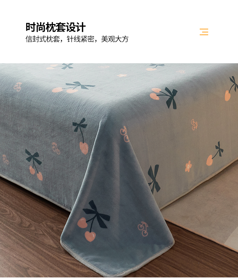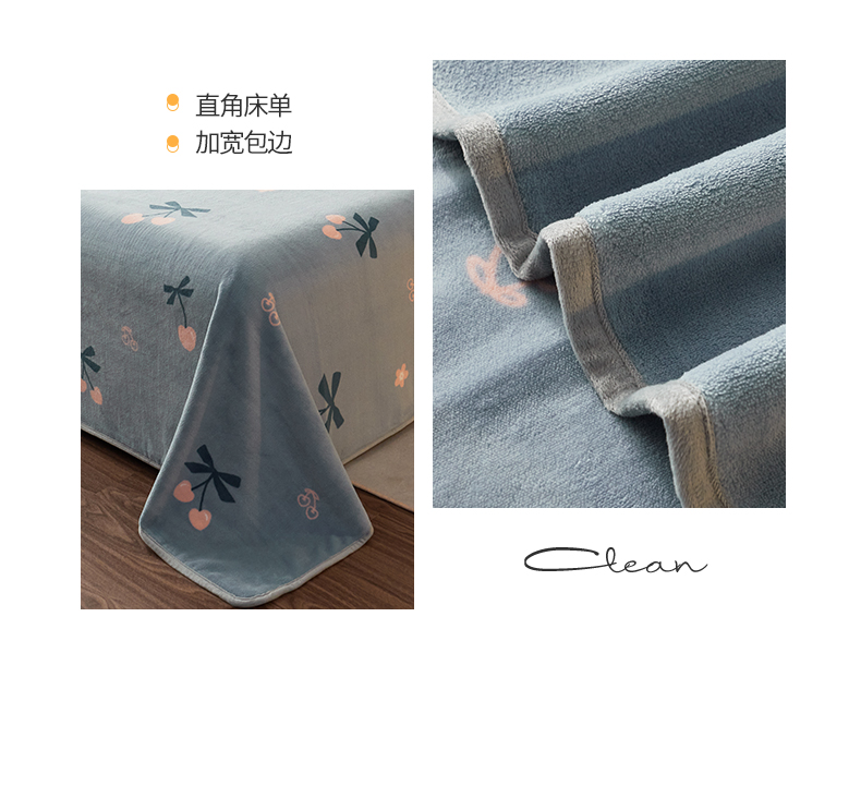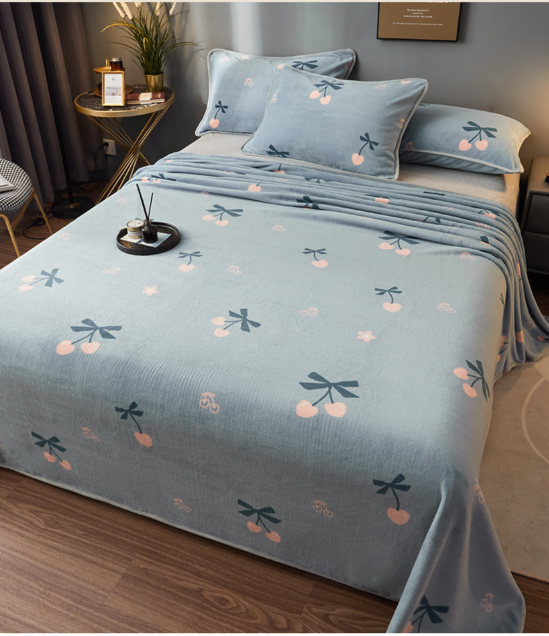 全季家居 2023新款纯色印花高克重抗静电包边牛奶绒床单-印花 小樱桃