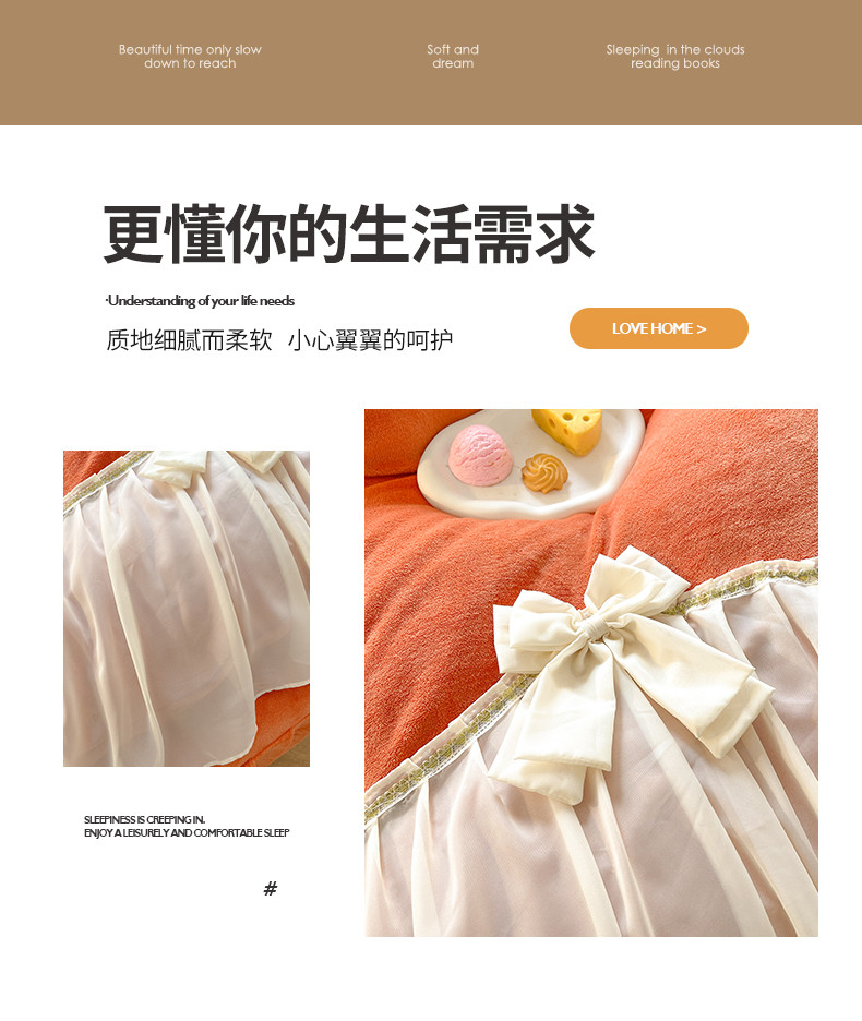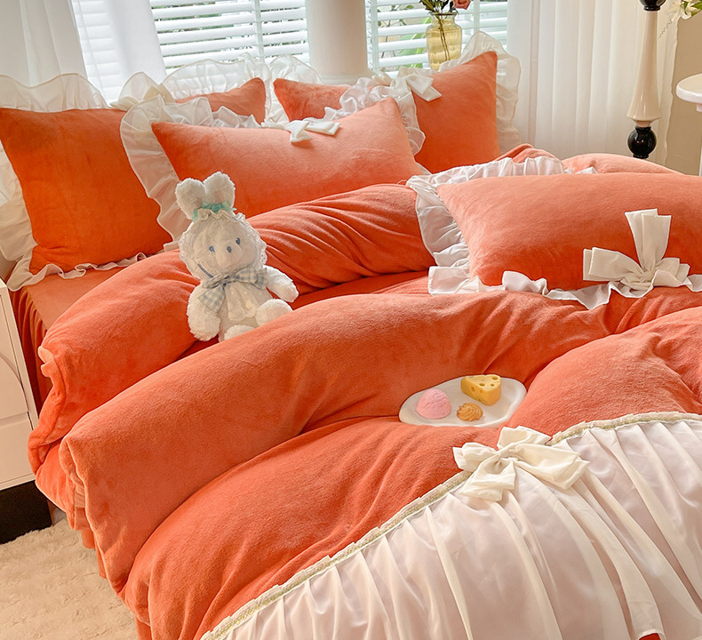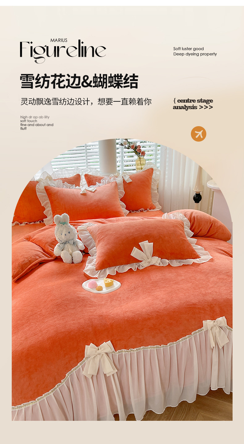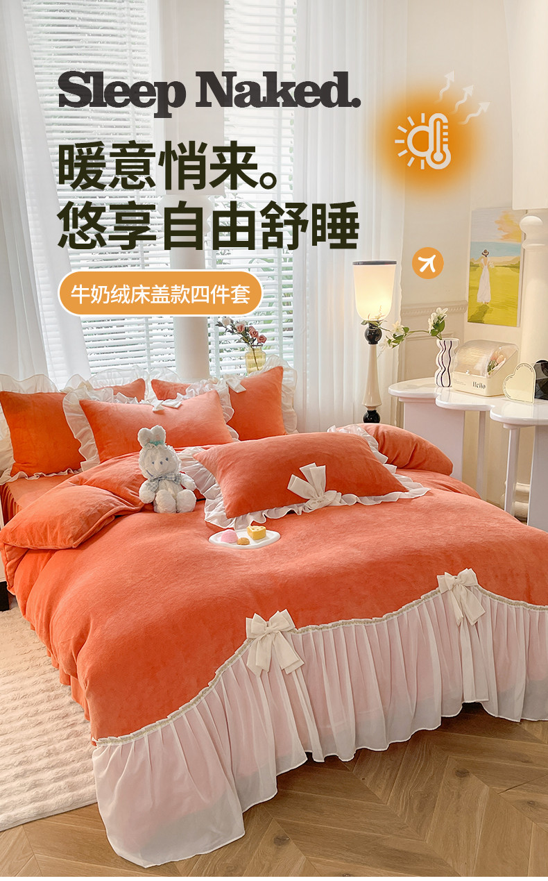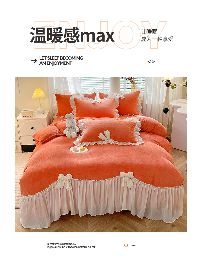 当前位置: 91家纺网 > 商品网购 > 床品套件 > 四件套 > 牛奶绒四件套 > 芭比蔓 2023新款牛奶绒雪纺边床单床裙床盖款四件套-一帘幽梦 一帘幽梦-橙色
