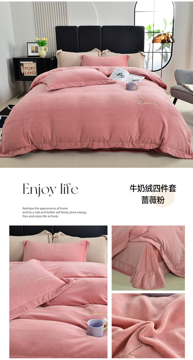 商品名称:席之家 2024新款A类纯色加厚牛奶绒四件套 蔷薇粉