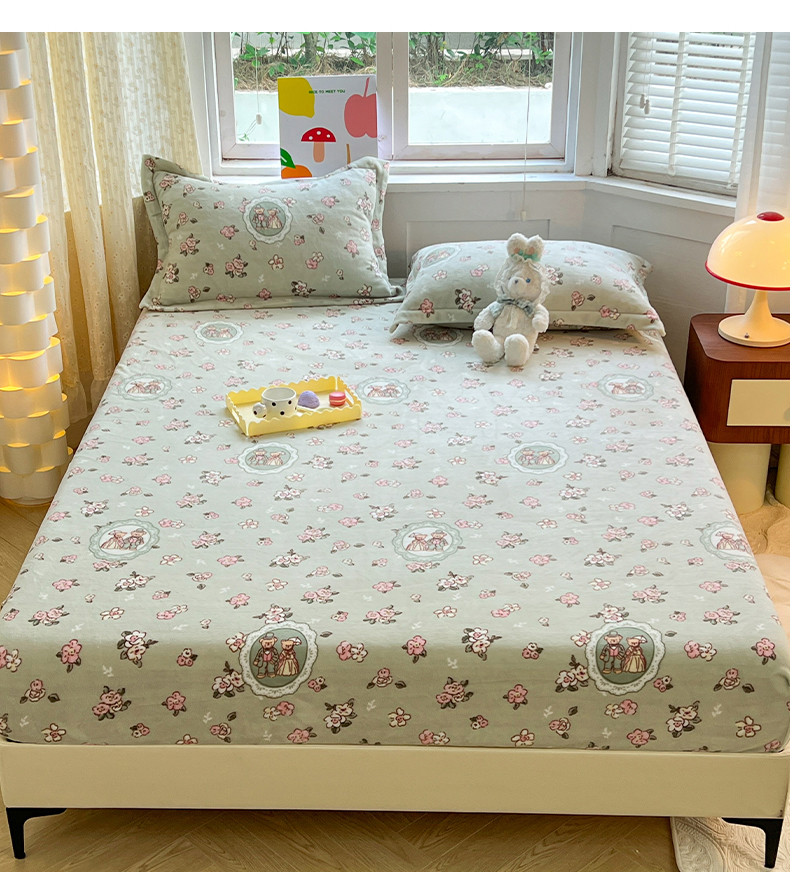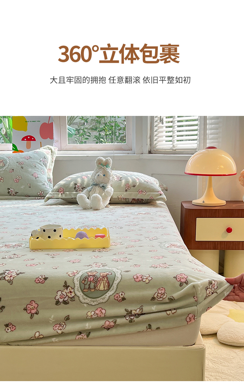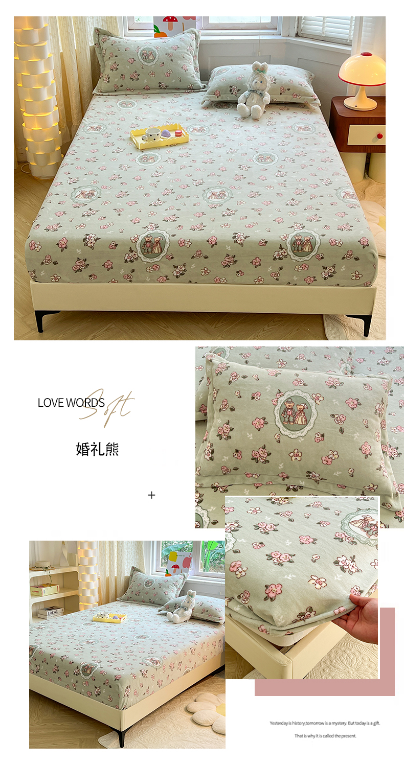 妖妖家纺 2023新款牛奶绒单床笠 婚礼熊