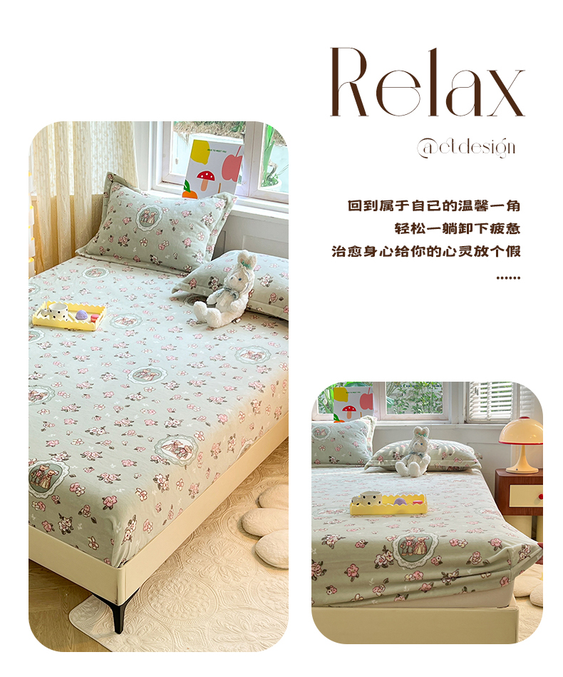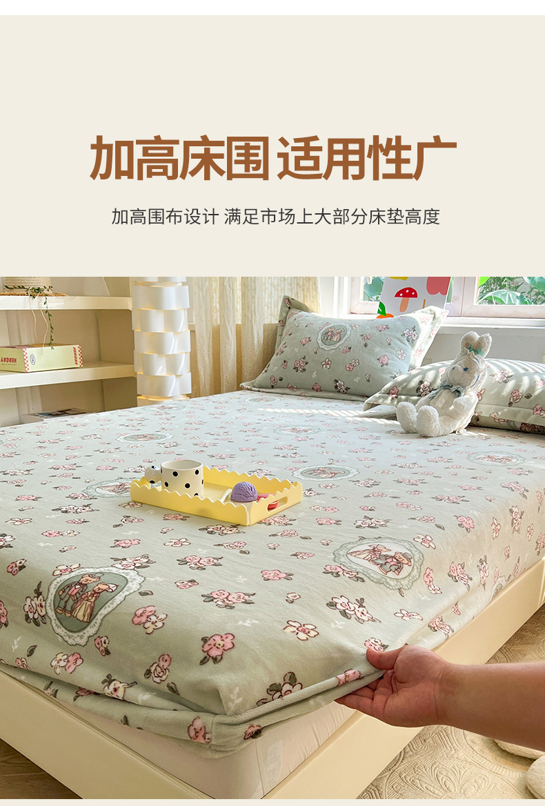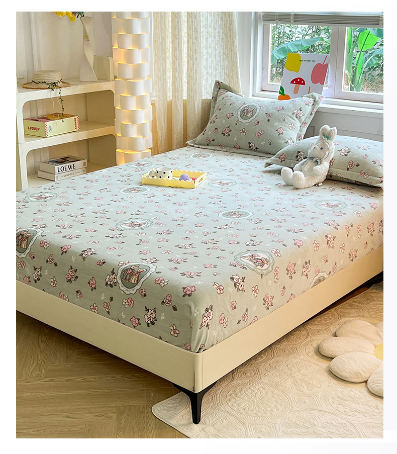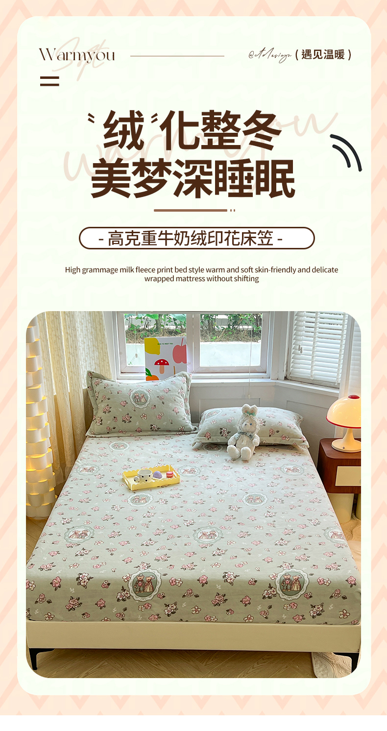 妖妖家纺 2023新款牛奶绒单床笠 婚礼熊