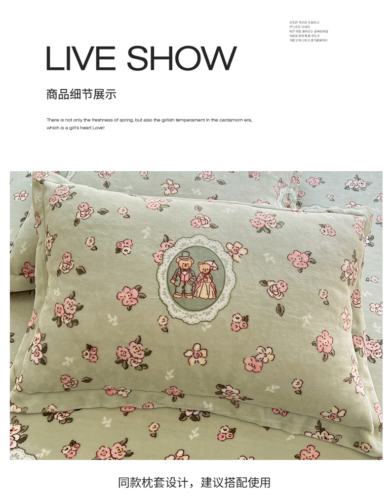 商品名称:妖妖家纺 2023新款牛奶绒单床笠 婚礼熊
