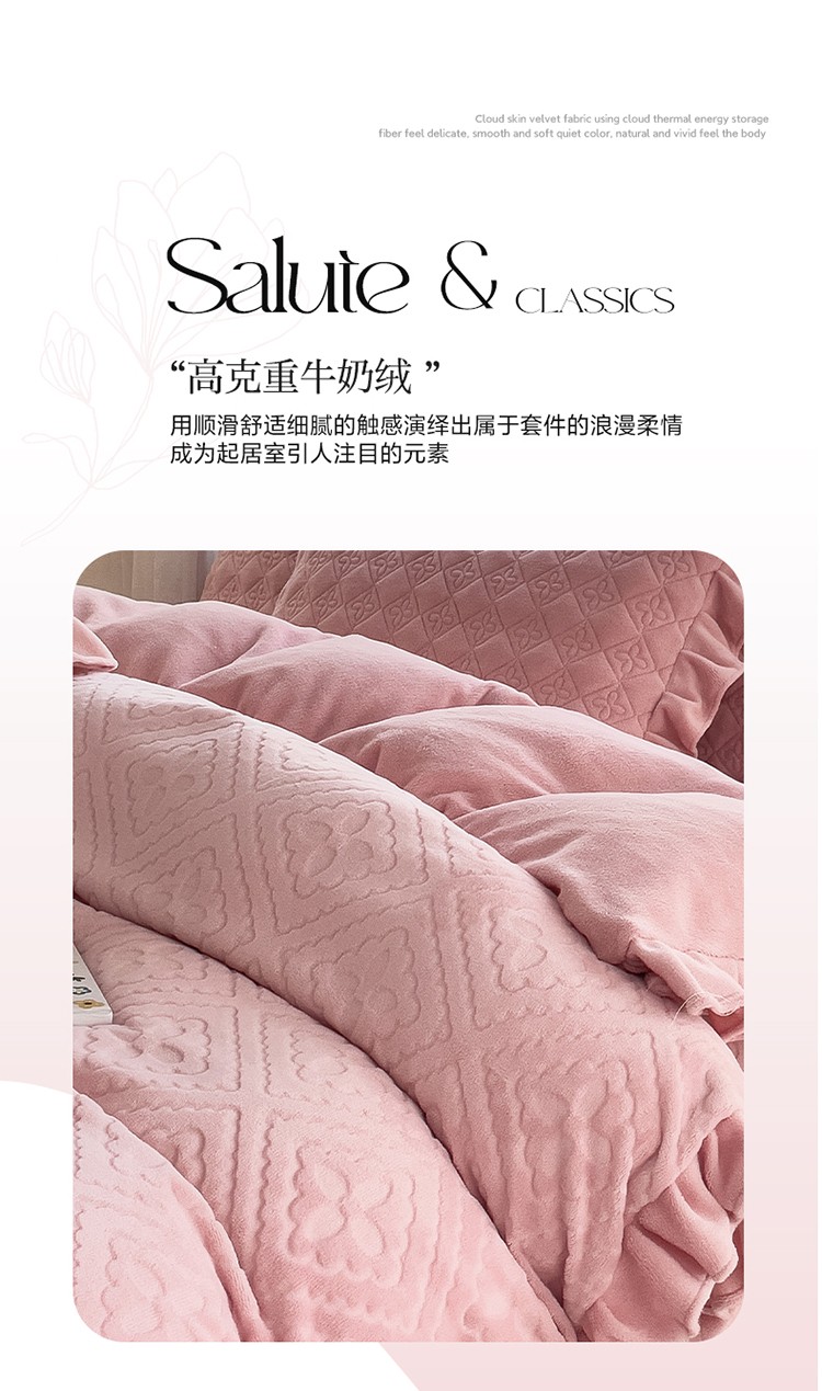 (总)佰诗特 230克全消光牛奶绒法式夹棉床盖四件套 立体浮雕雕花绒兔毛绒毛球加棉加厚保暖三四件套,唯爱-蓝,唯爱-白,唯爱-粉,唯爱-绿