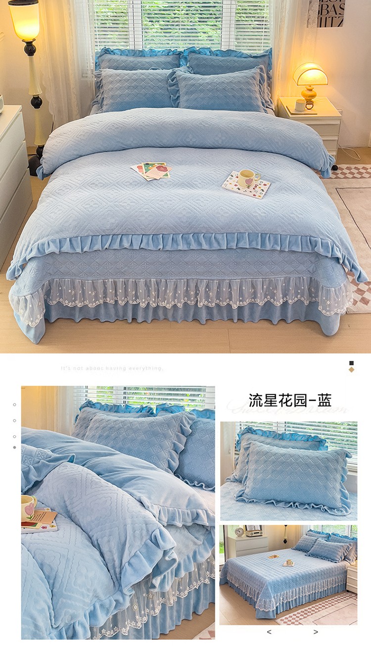 佰诗特 牛奶绒纯色床盖夹棉三件套立体烂花雕花绒被套蕾丝单床盖加棉四件套 流星花园-蓝,流星花园-粉,流星花园-蓝,流星花园-黄,流星花园-紫,流星花园-绿,流星花园-灰