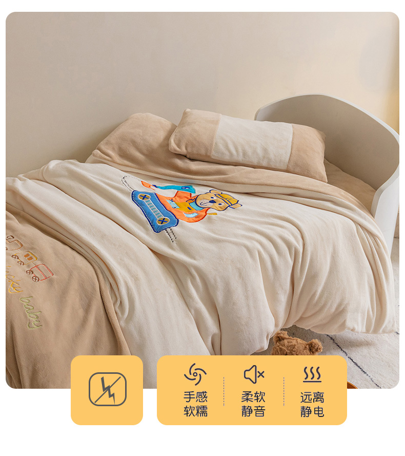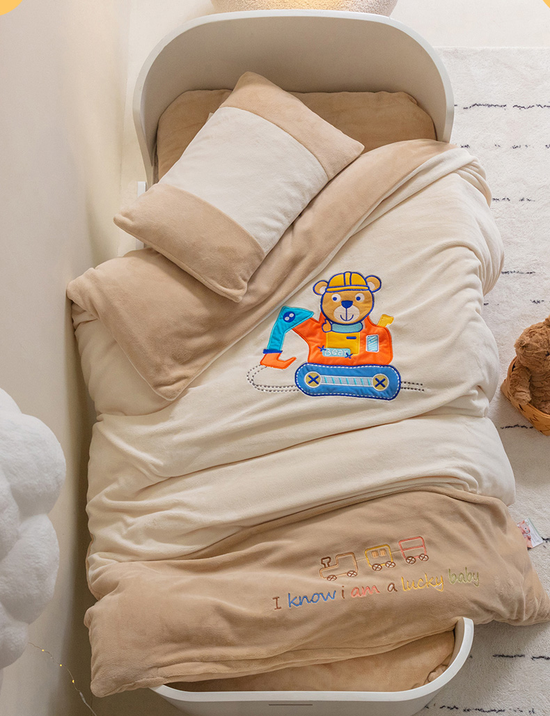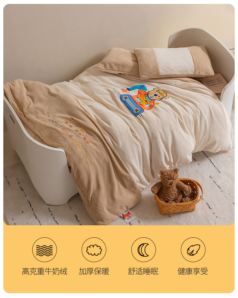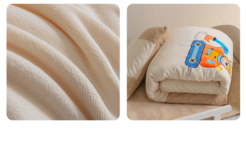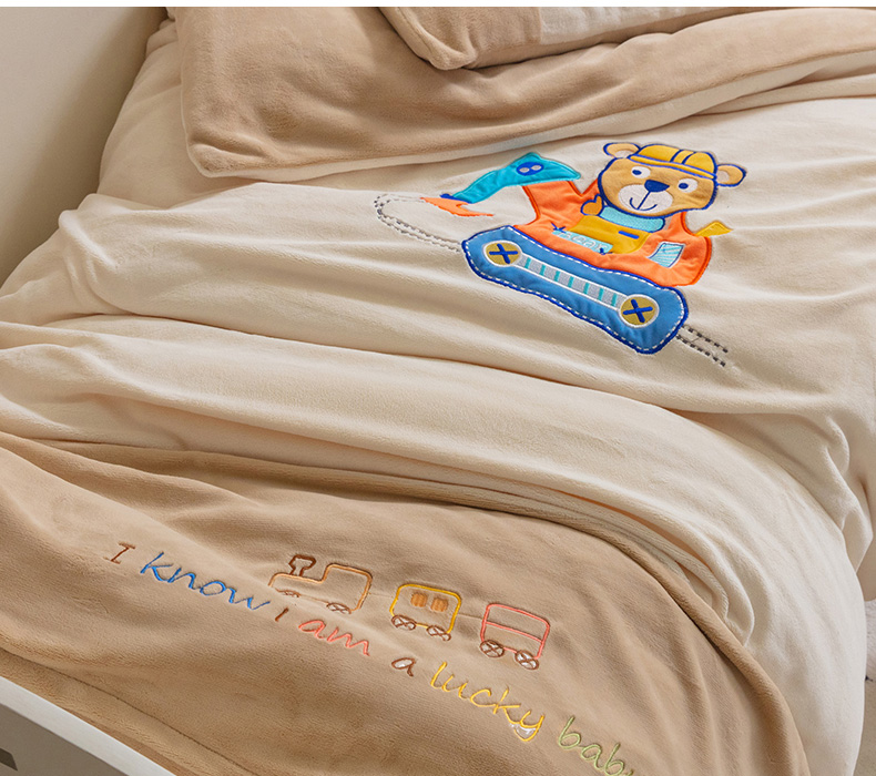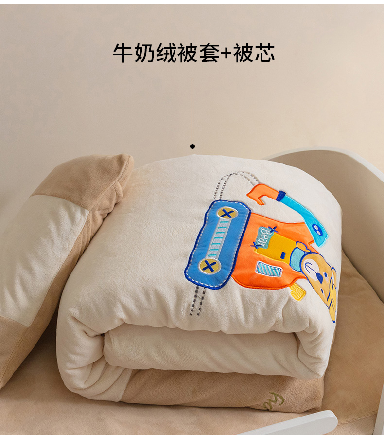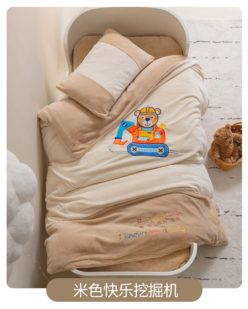 • 91家纺网 家纺一手货源 找家纺 喜多兔儿童家纺 2023喜多兔牛奶绒活套被 小伙伴系列—米色快乐挖掘机