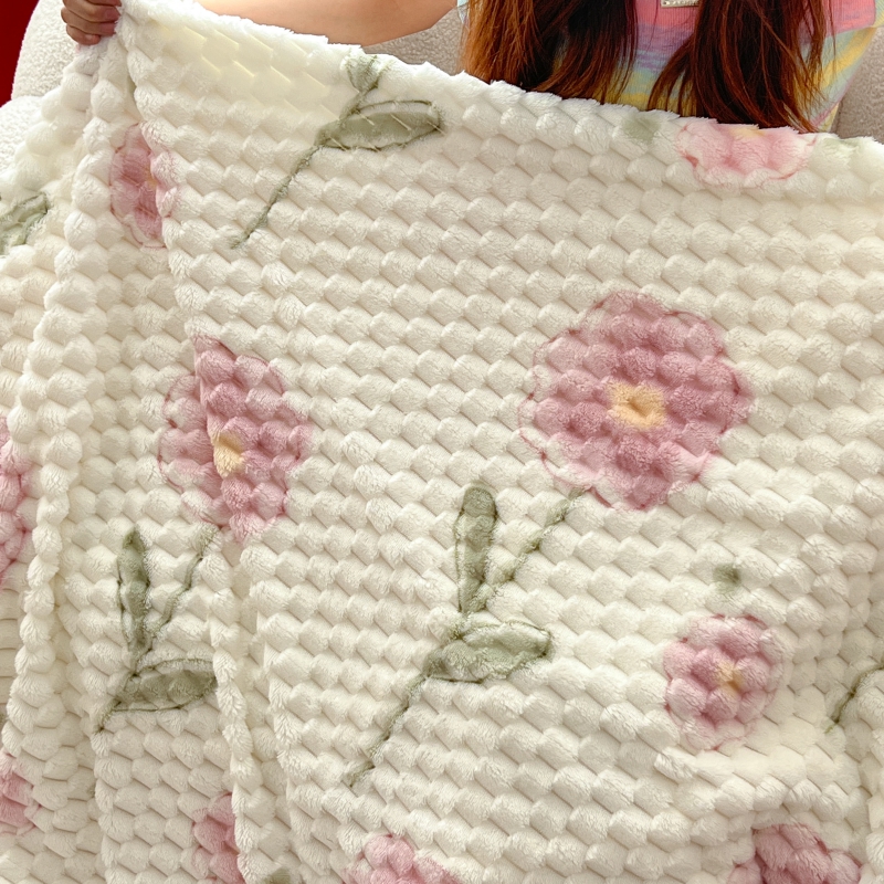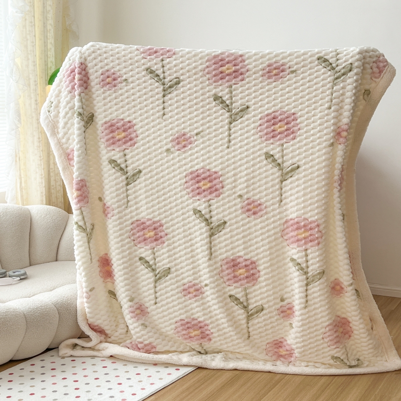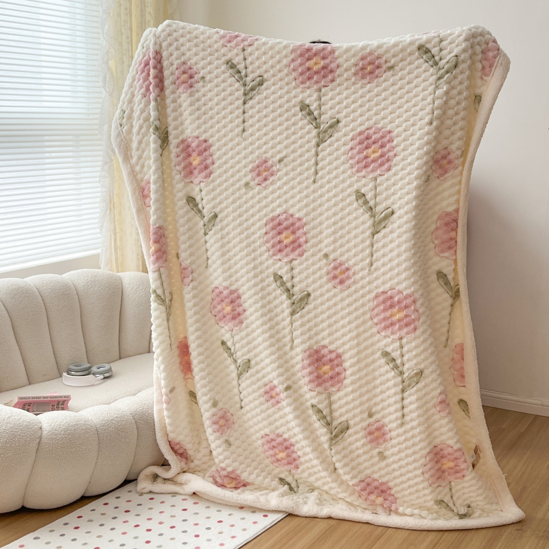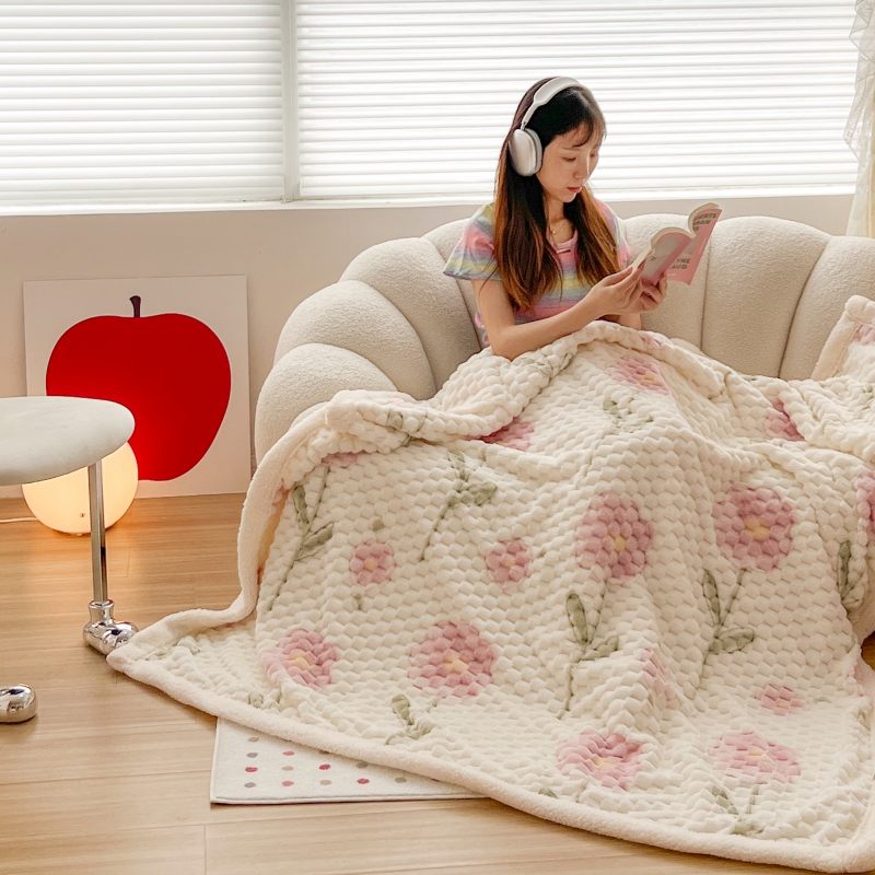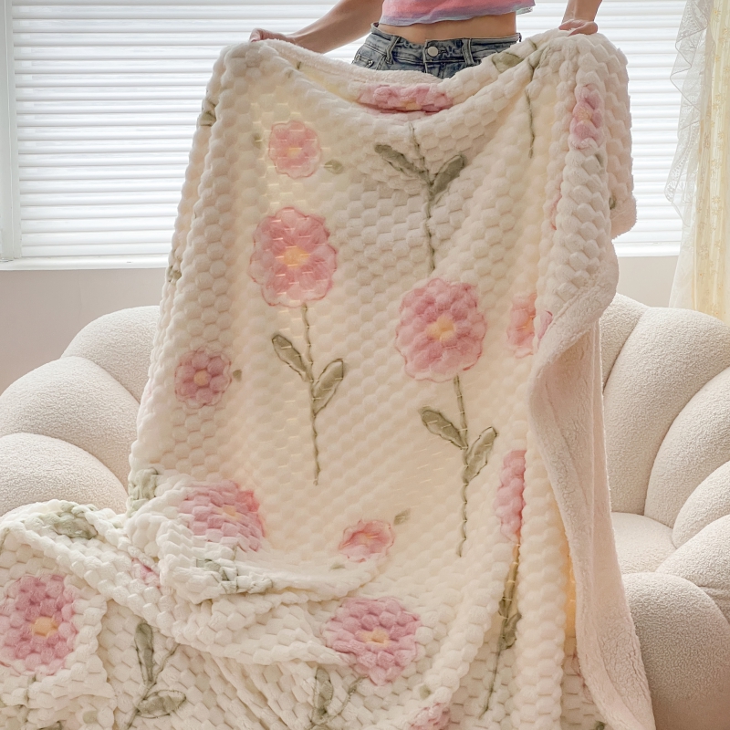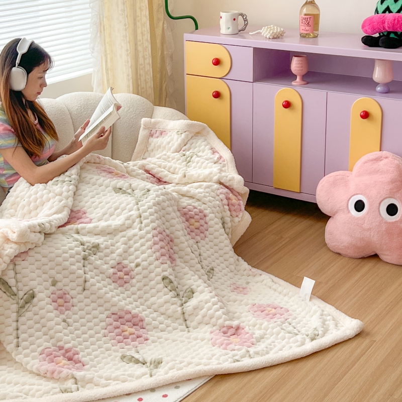 商品名称:顾里家纺 2023新款ins韩风∙豆豆绒奶油色羊羔毯 粉花