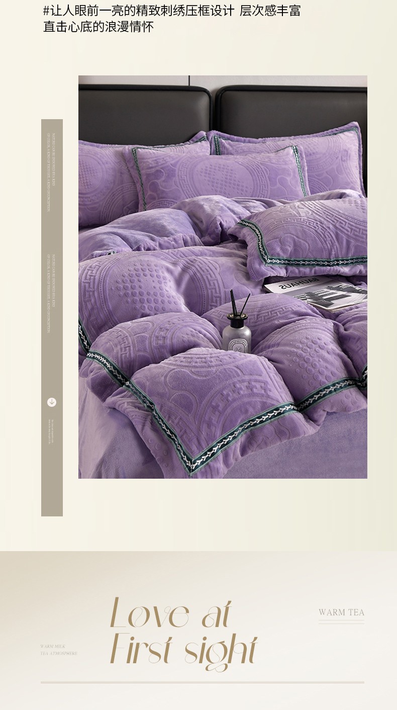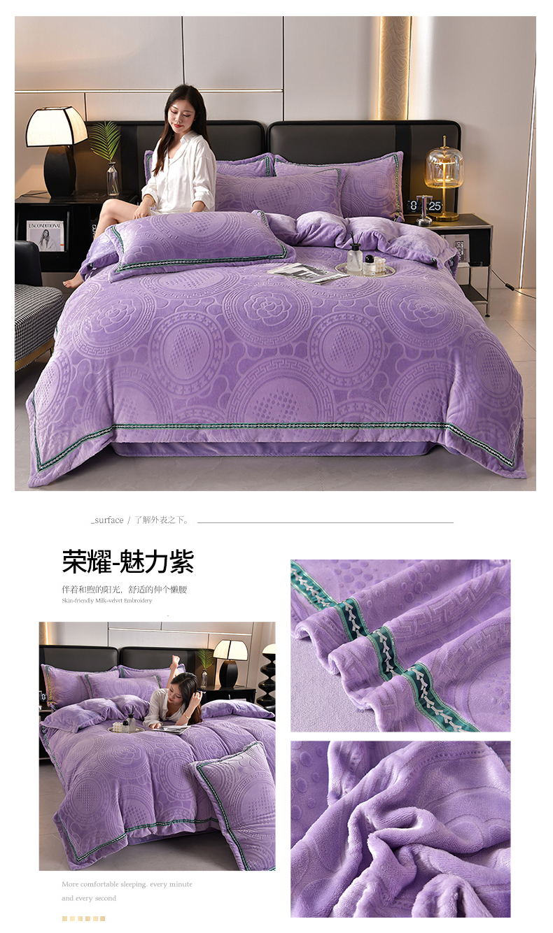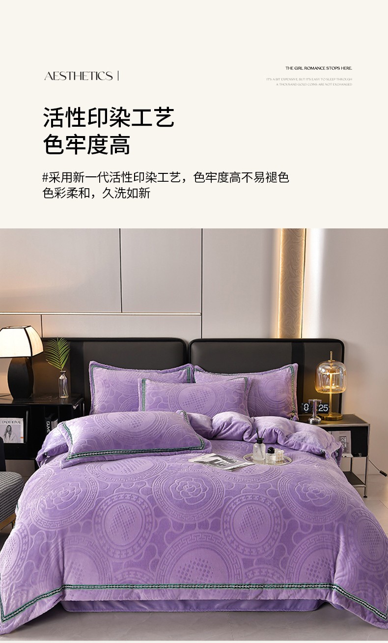 商品名称:绒耀 2025新款高克重雕花绒四件套 荣耀-魅力紫