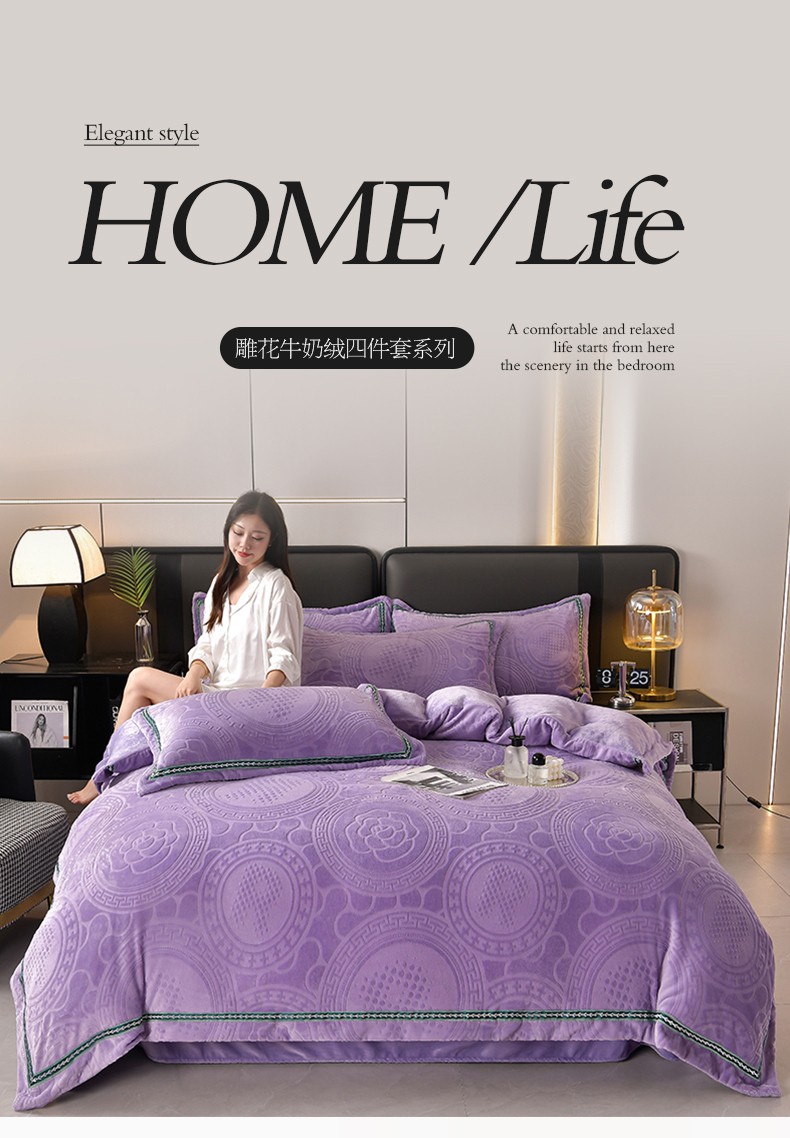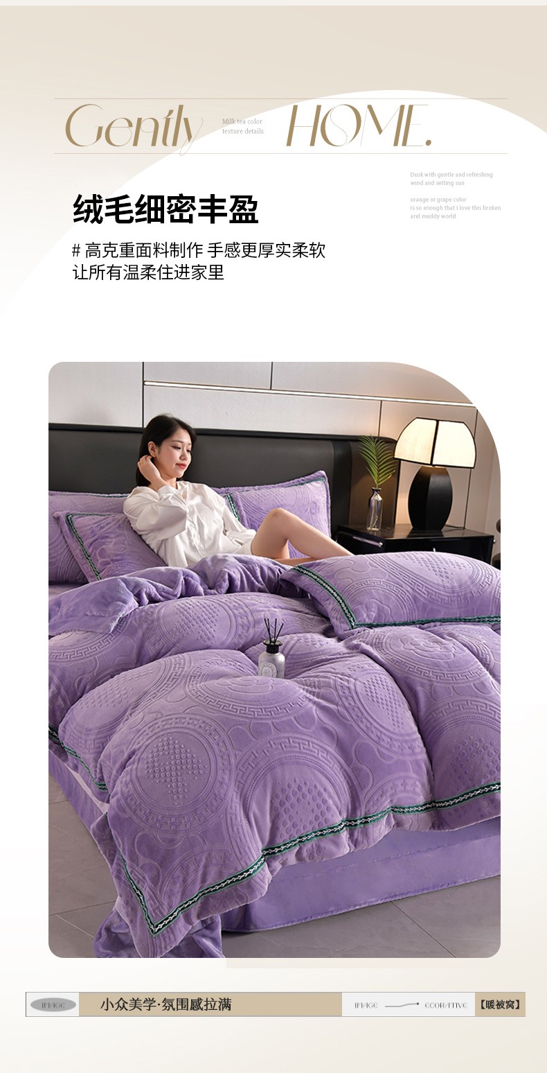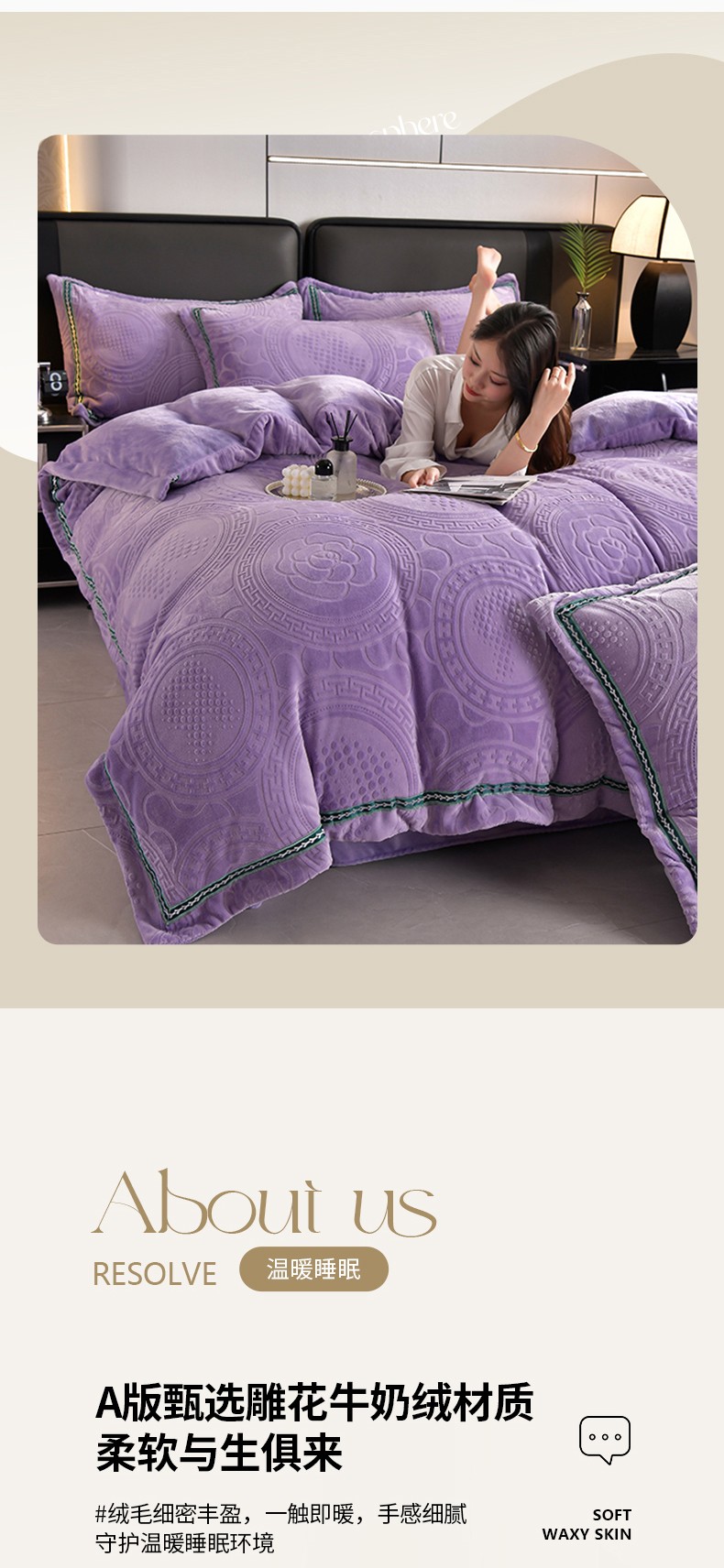 绒耀 2025新款高克重雕花绒四件套 荣耀-魅力紫